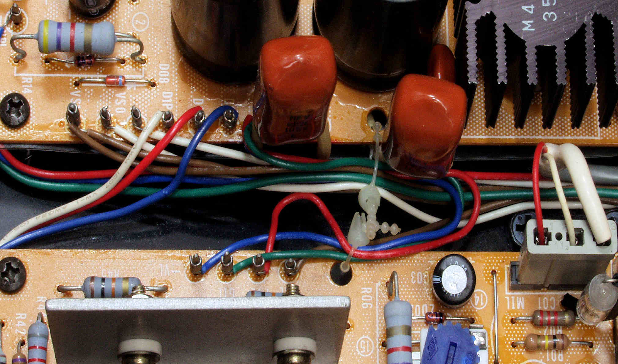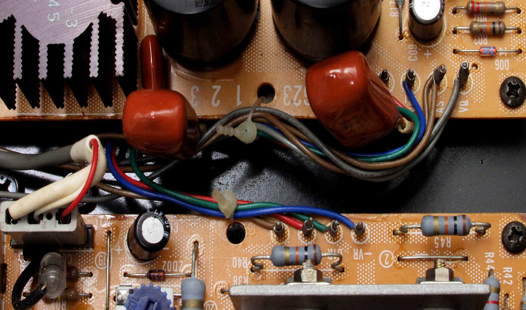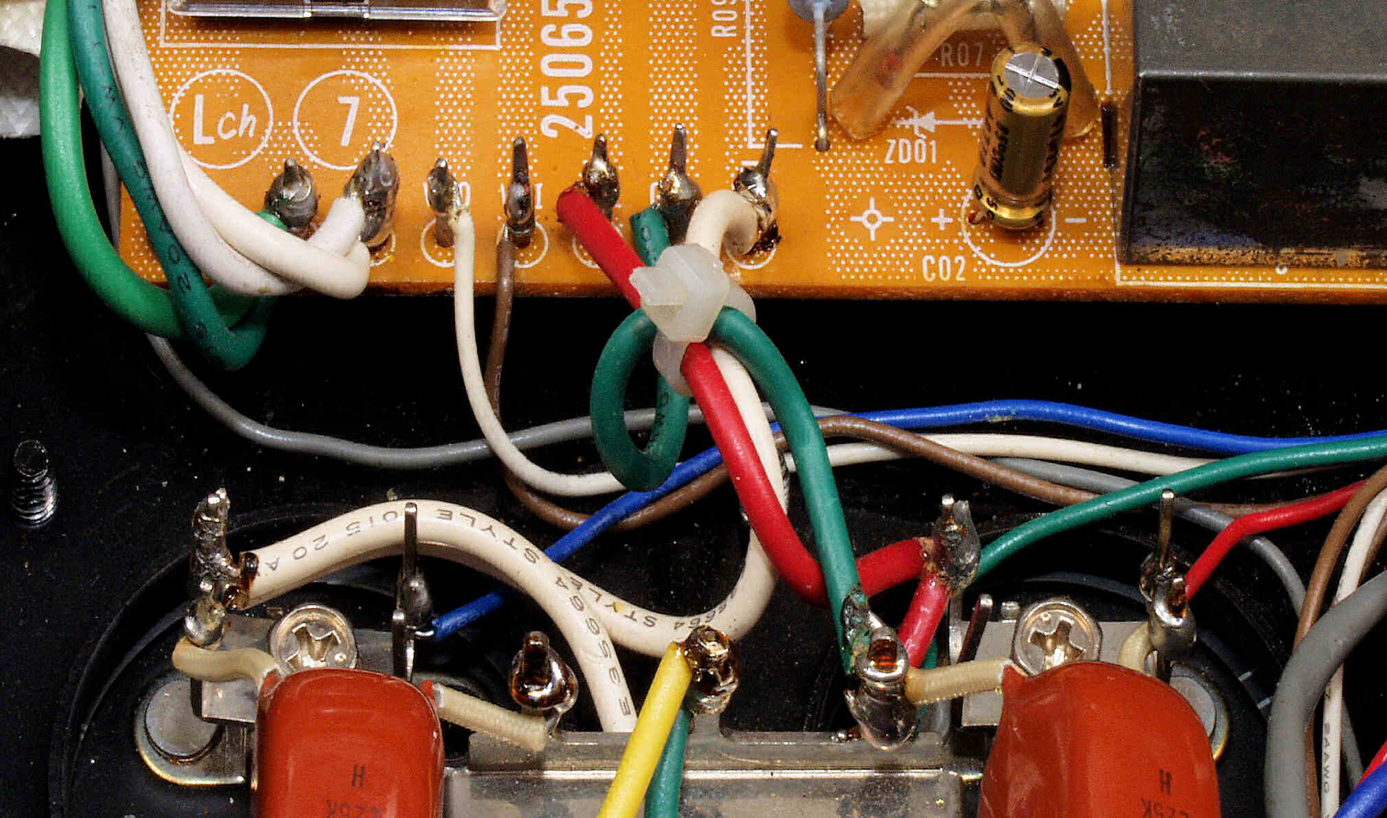 | C95. 修理前 R側ドライブ基板−電源基板へのラッピング線 |