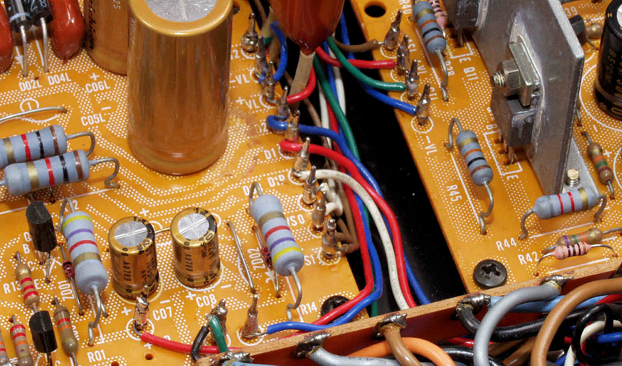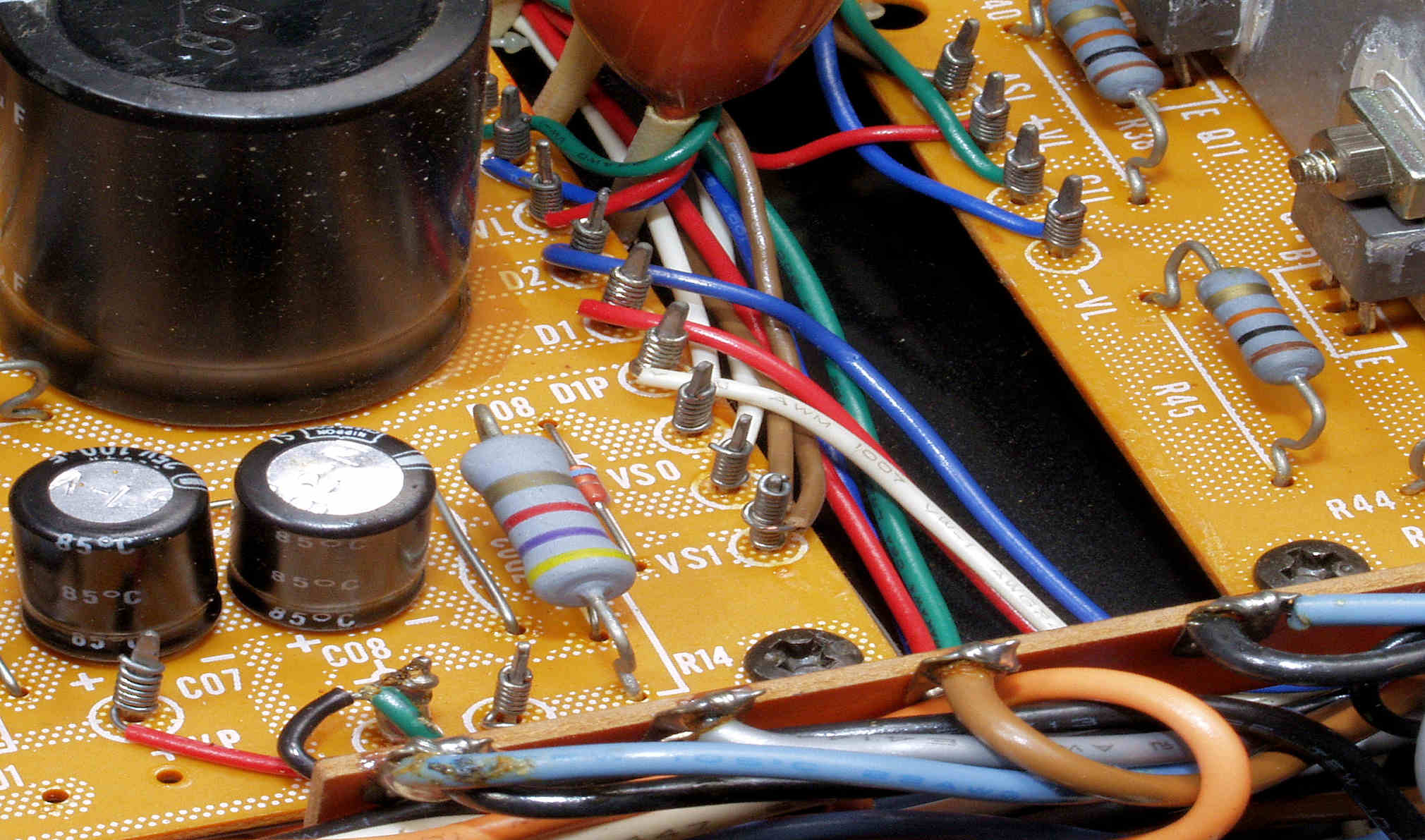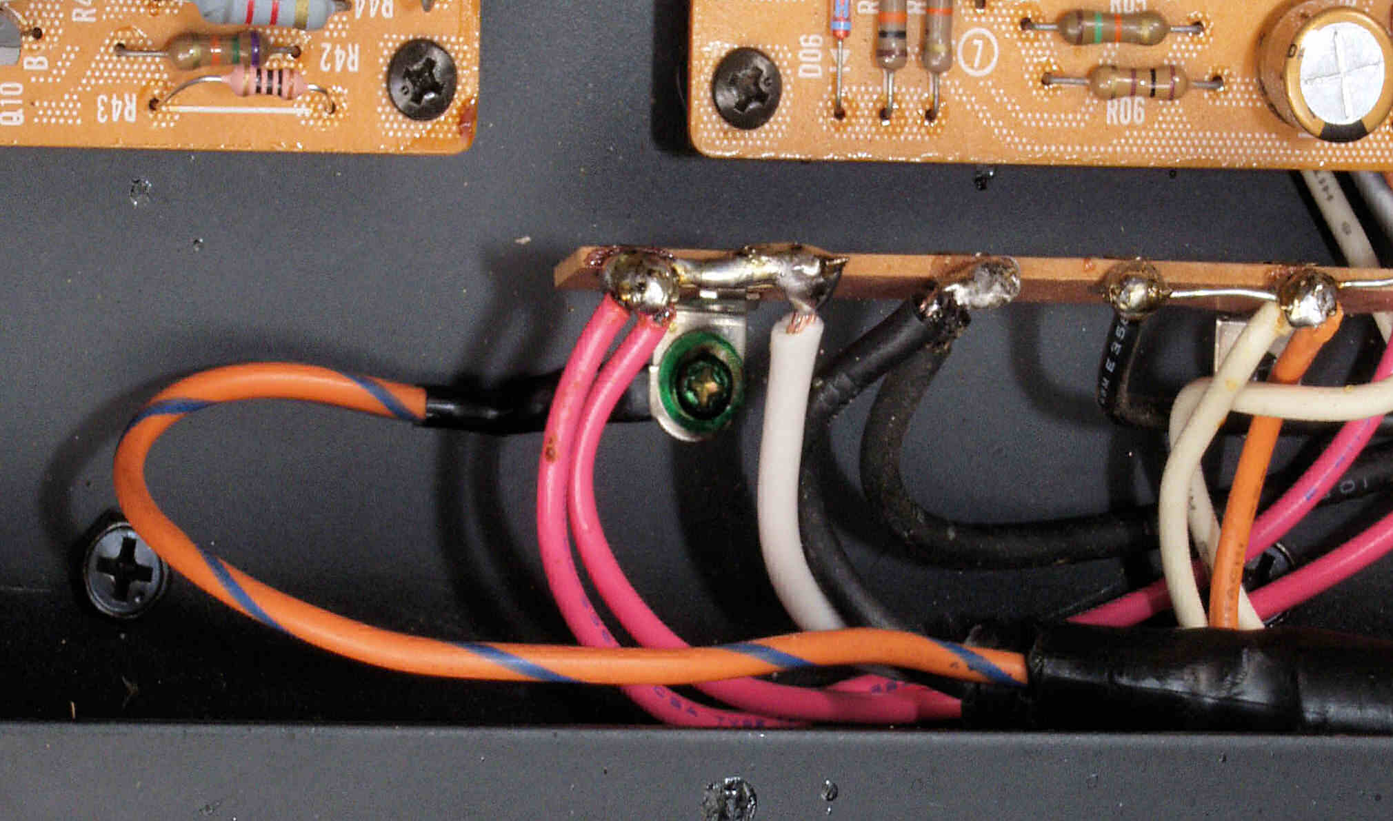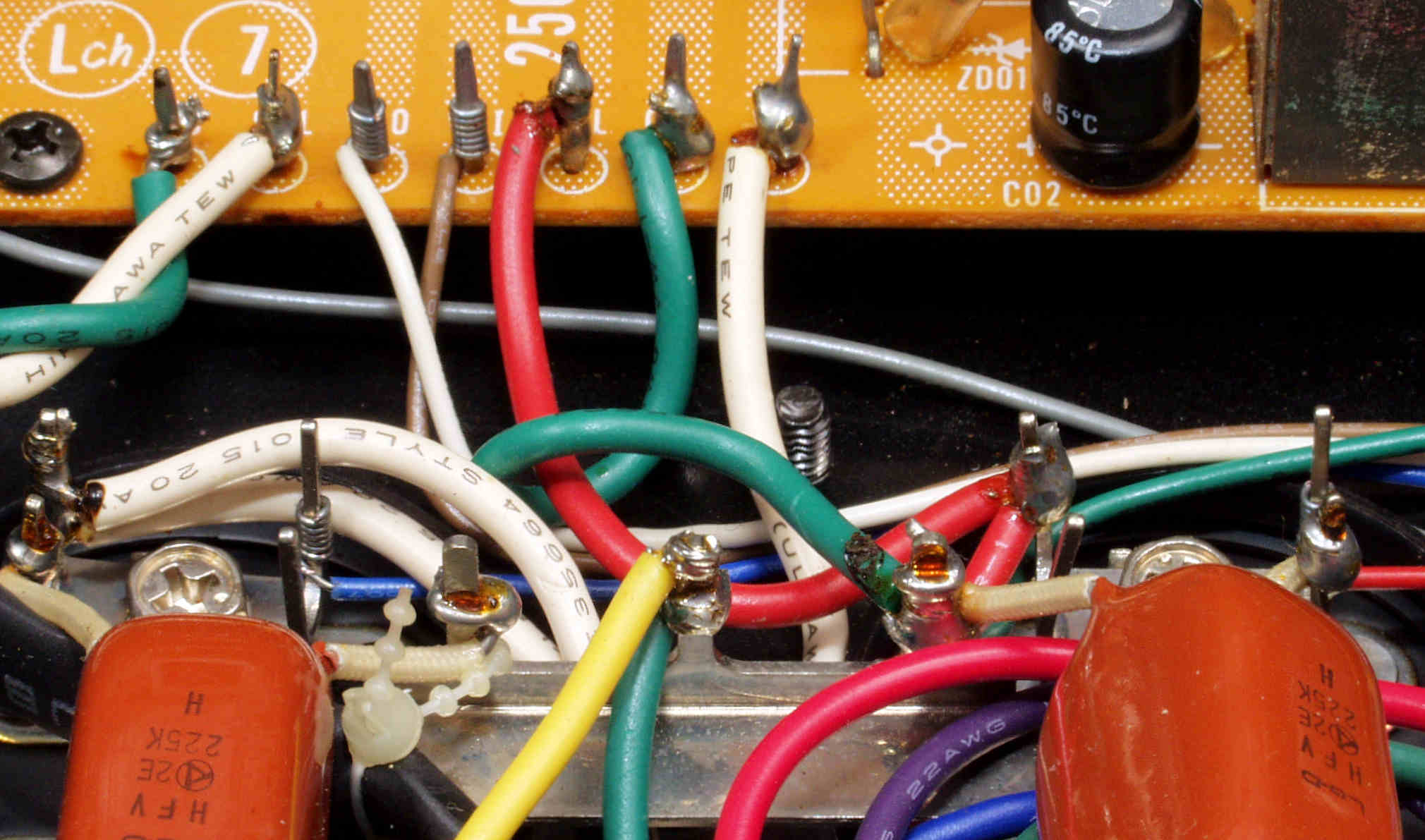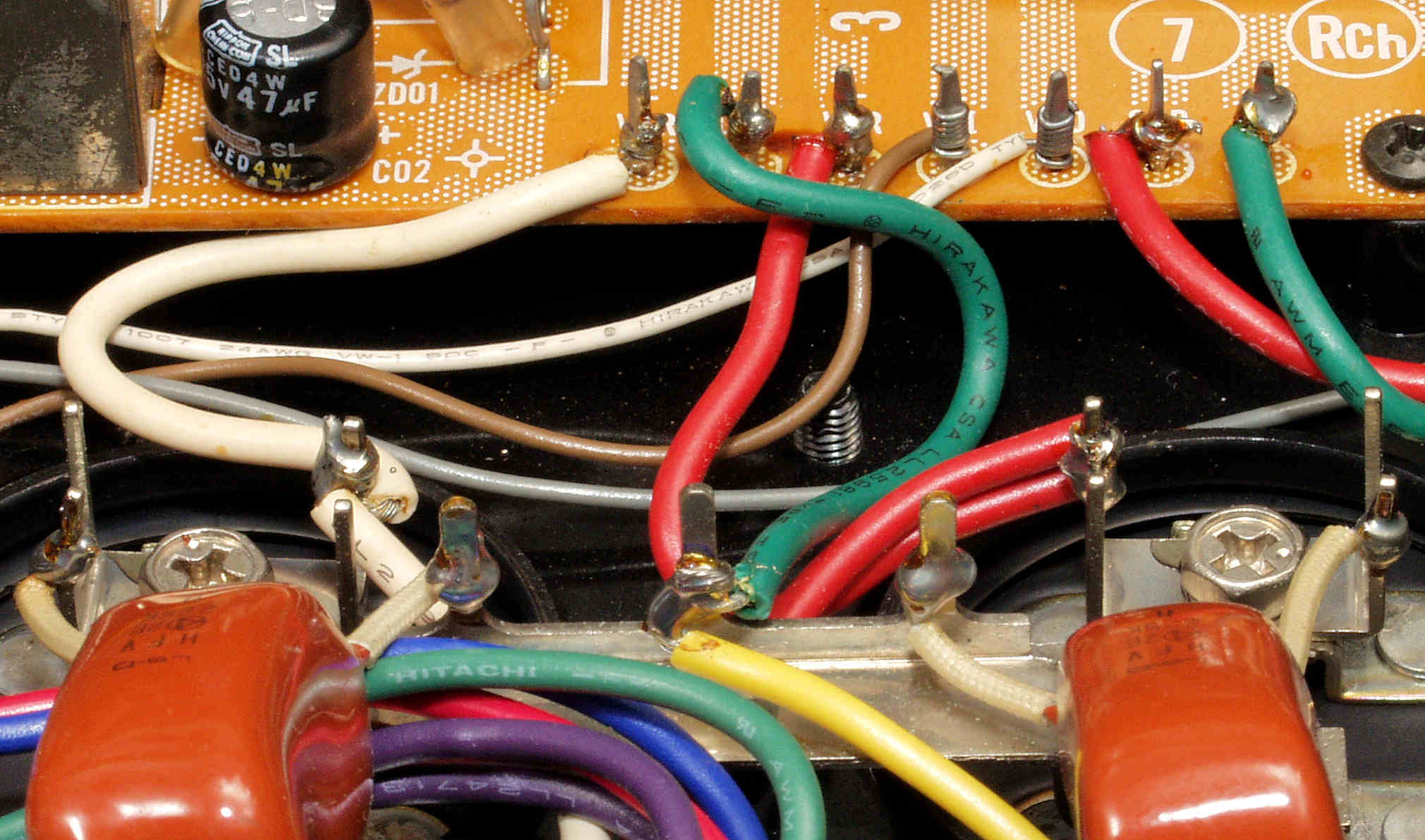 | C96. 修理後 R側ドライブ基板−電源基板へのラッピング線に半田を浸み込ませる |