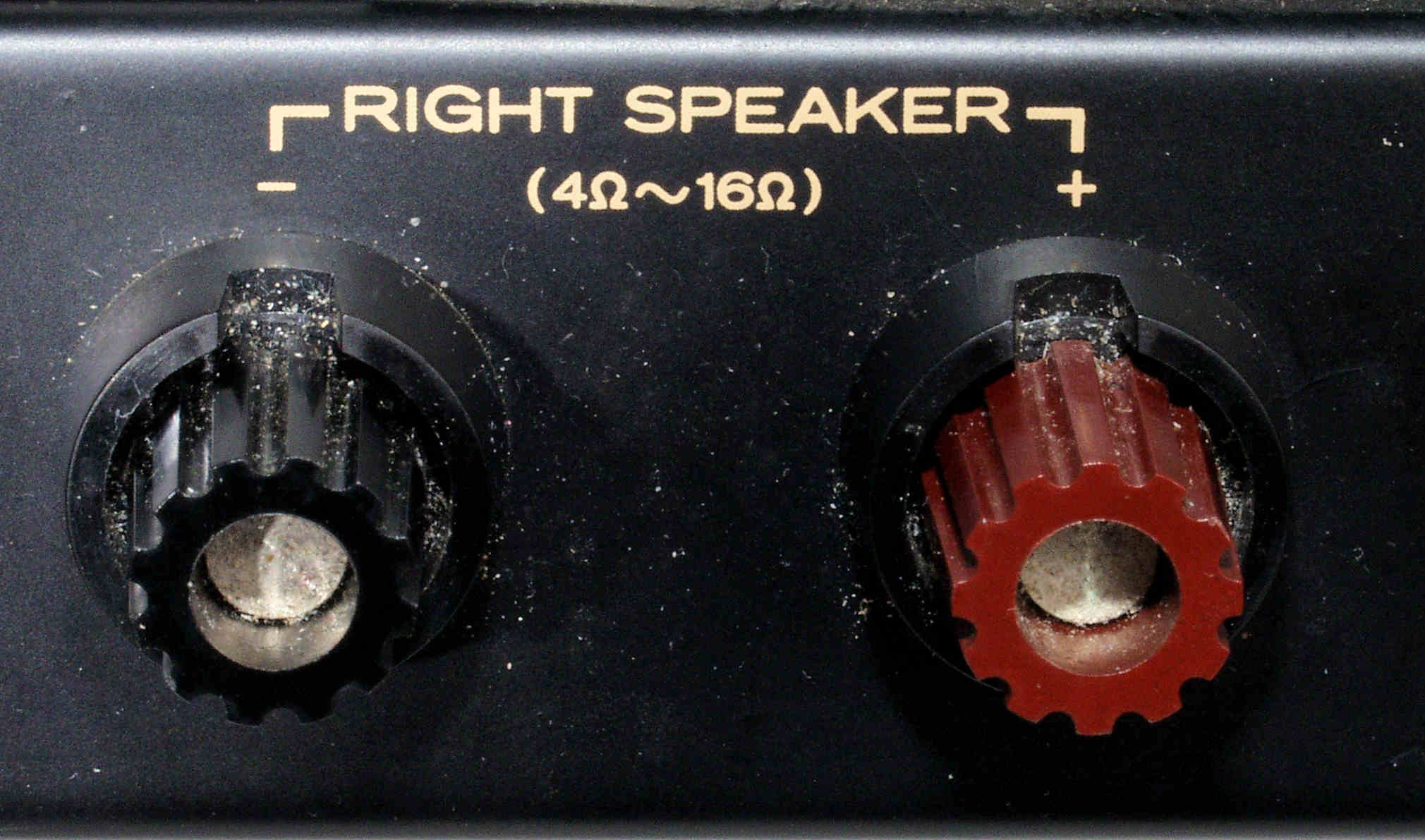 | C85. 修理後 R−SP端子への接続 WBTのネジ止めを生かし、ネジ止め接続+半田接続のW配線にした 理由はこちら参照 |