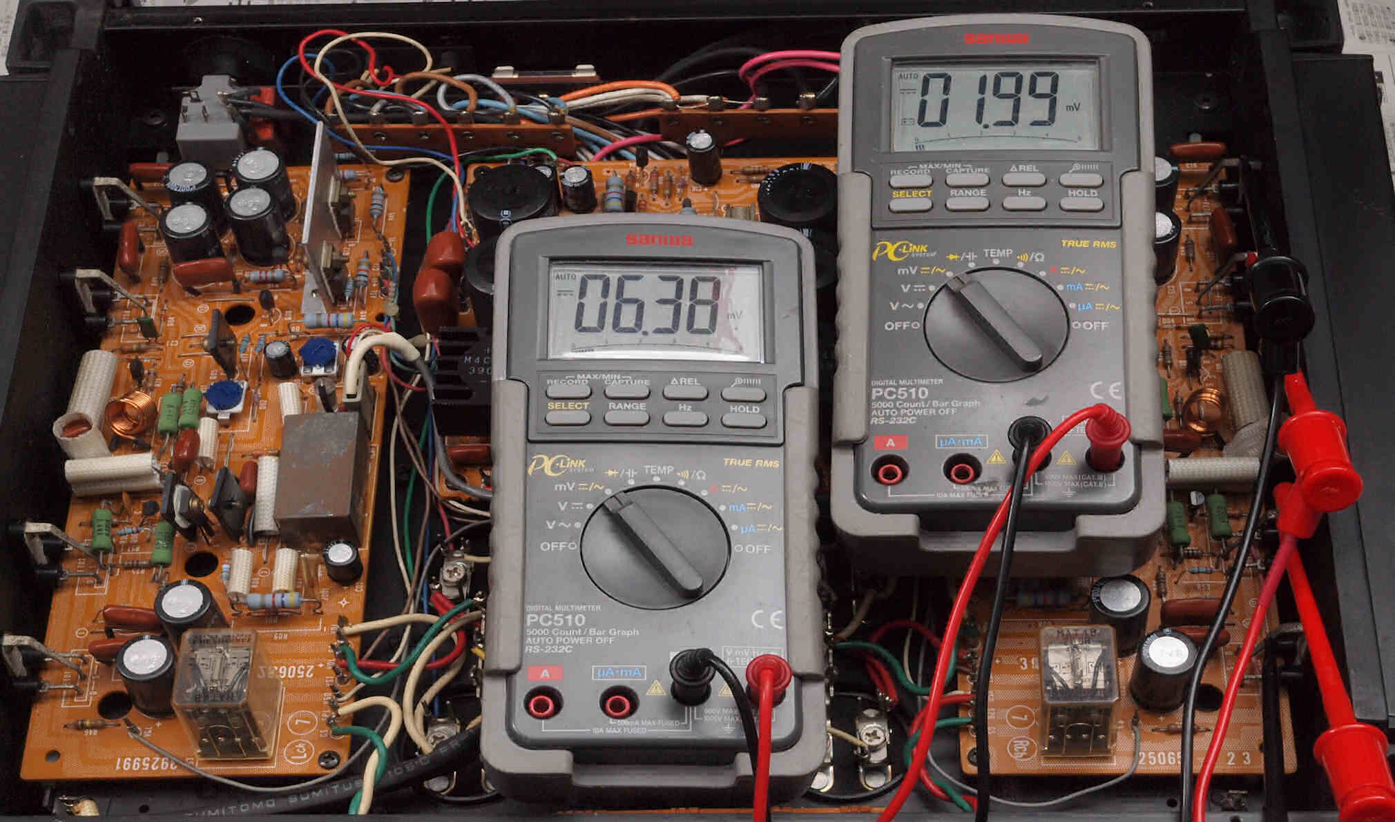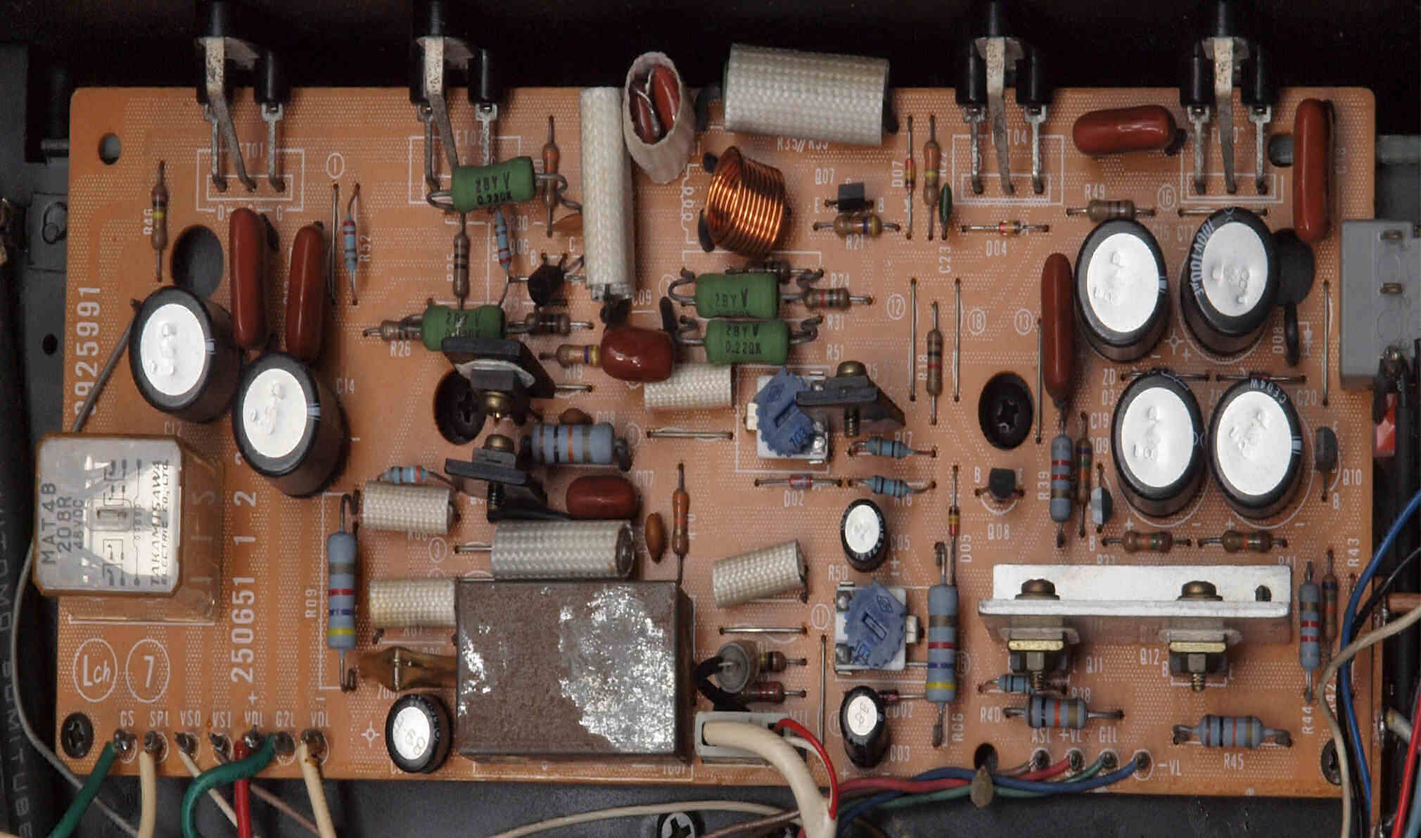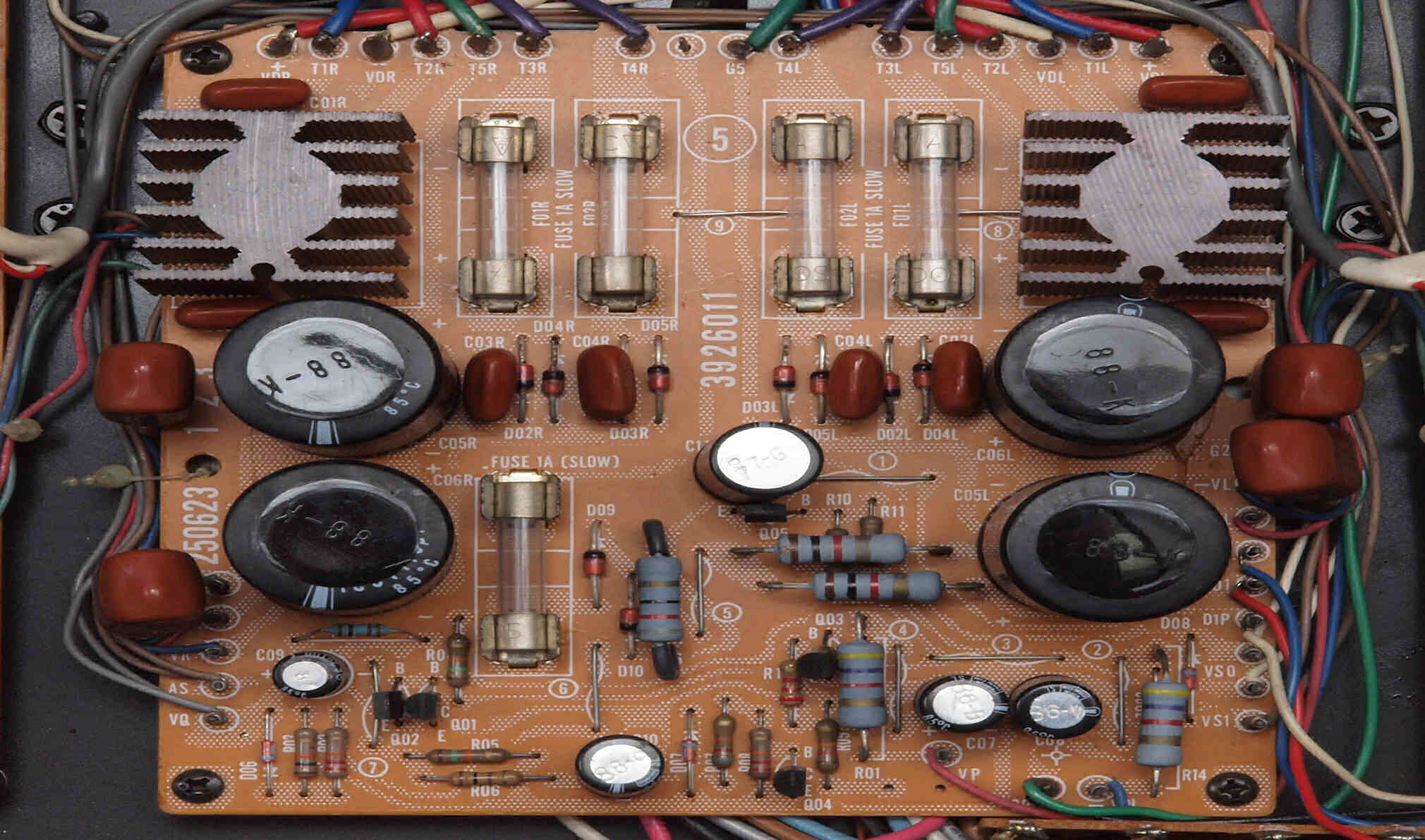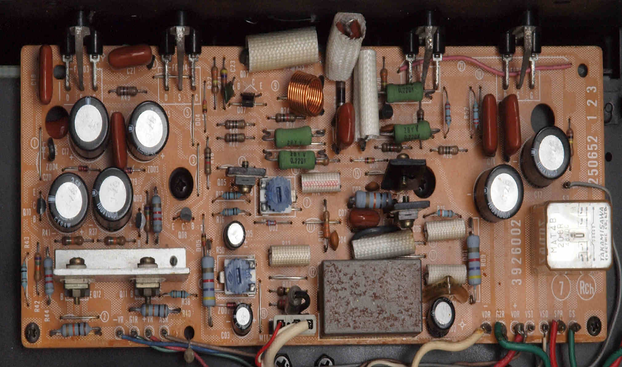 フューズ入り抵抗全部、電解コンデンサー9個、TR(トランジスター)2個交換