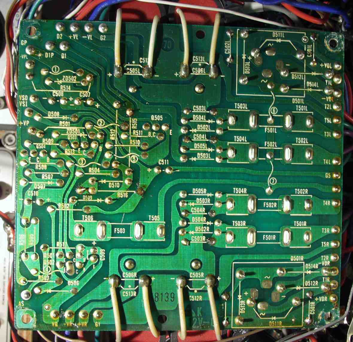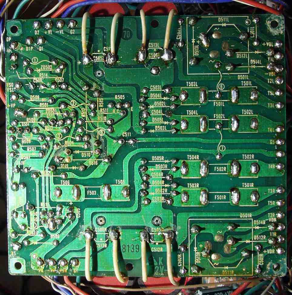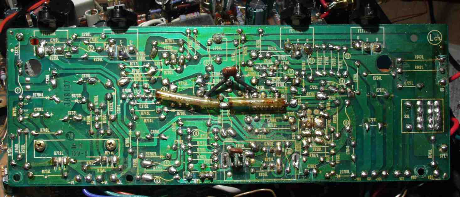 | C−2D. 修理(半田補正)後 Lドライブ基板裏 全ての半田をやり修す |