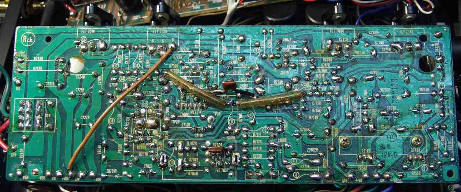 | C−1D. 修理(半田補正)後 Rドライブ基板裏 全ての半田をやり修す |