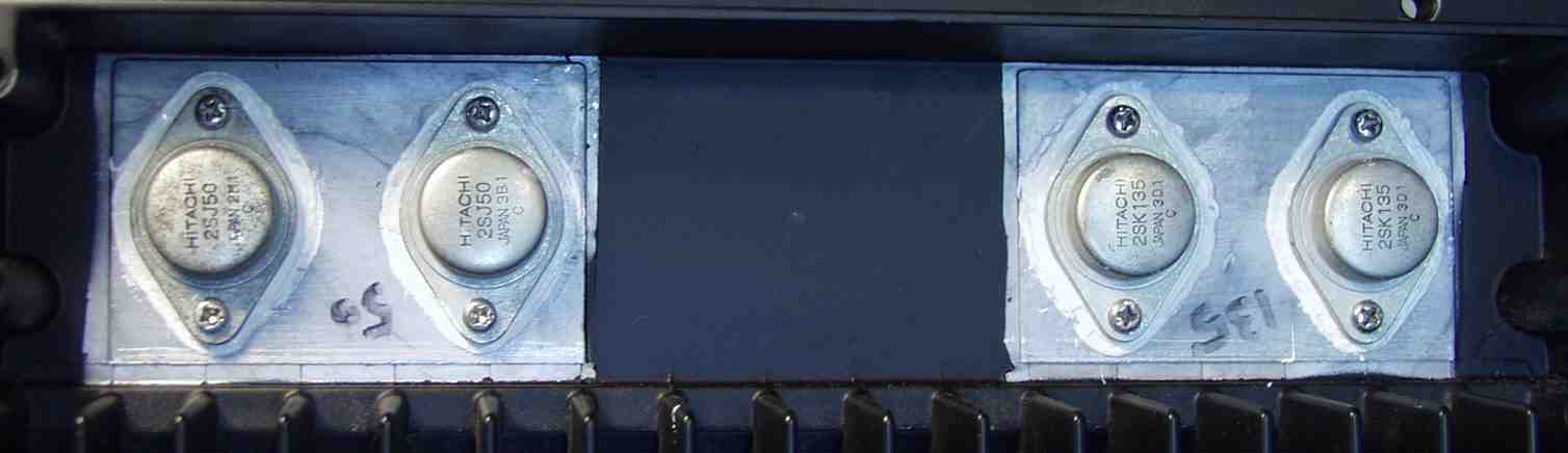 | C−3A. 修理後 R側 終段FET(電界トランジスター)取り付、シリコンを十分塗り取り付ける |