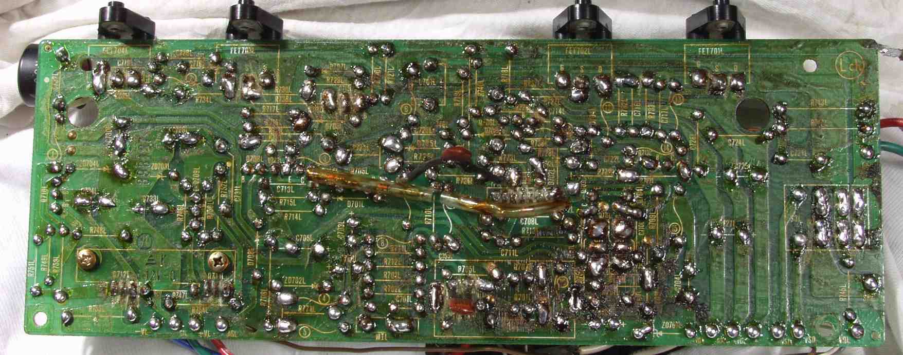 | C2D. 修理(半田補正)後 Lドライブ基板裏 半田を全部やり直す |