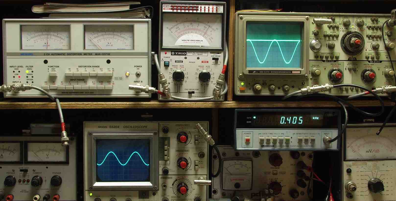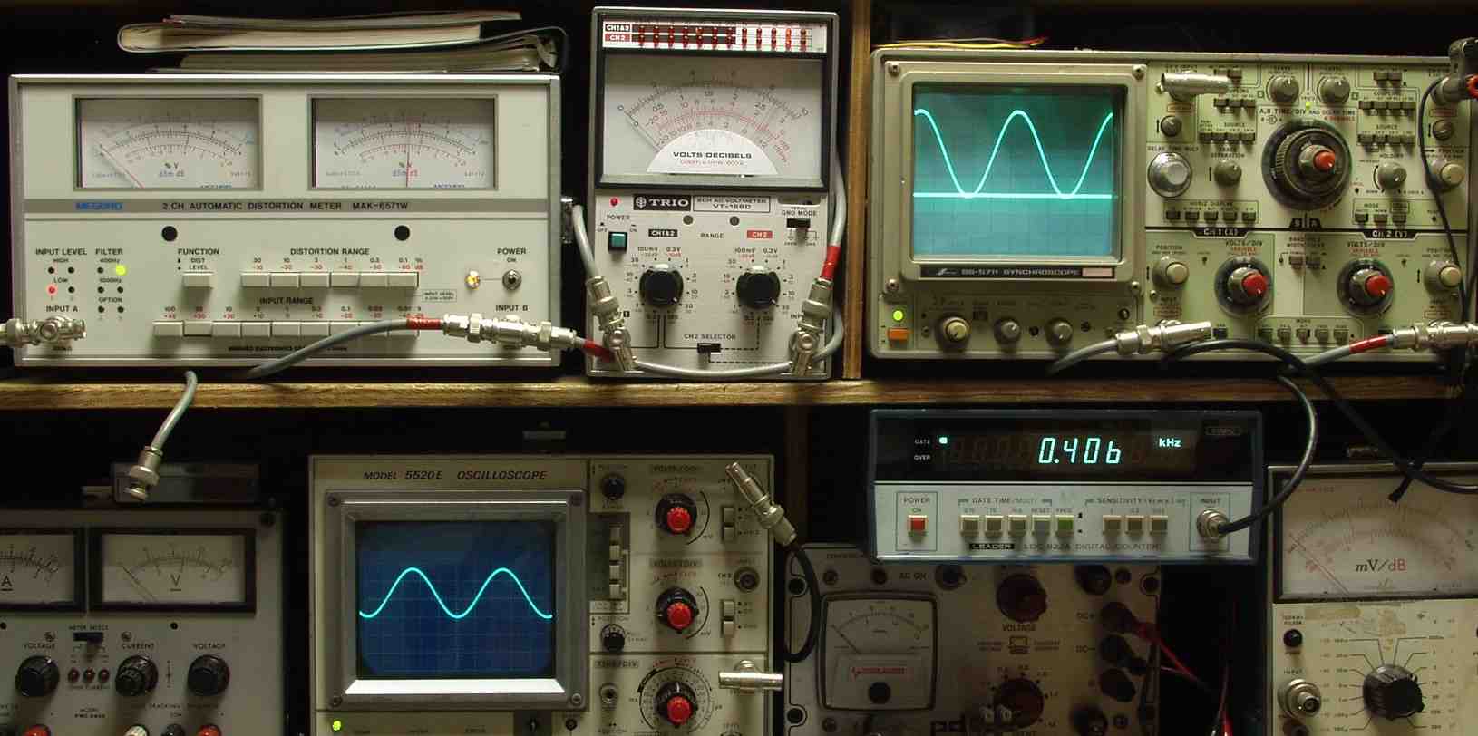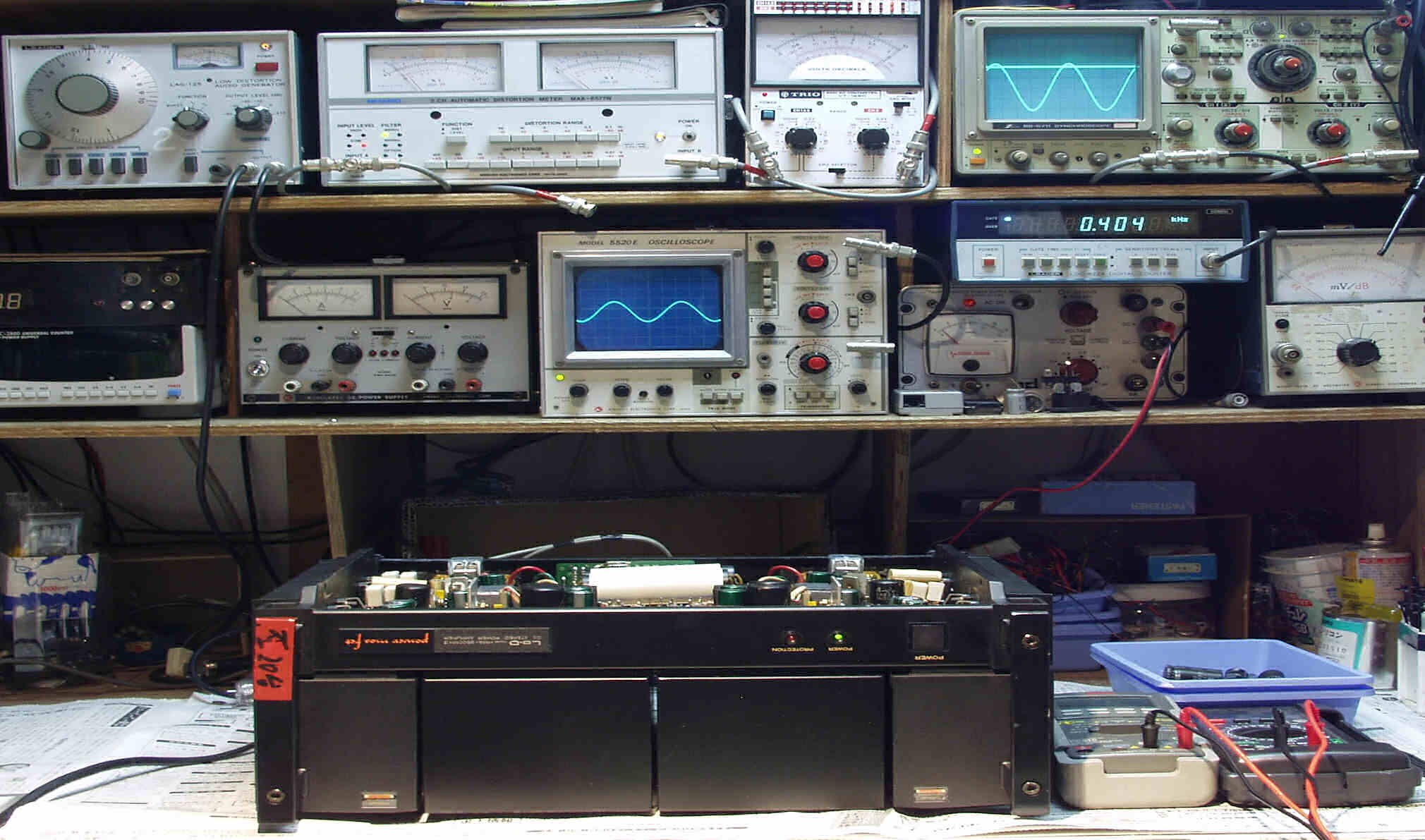 下左オーディオ発振器より400HZ・1KHZの信号を出す(歪み率=約0.003%)