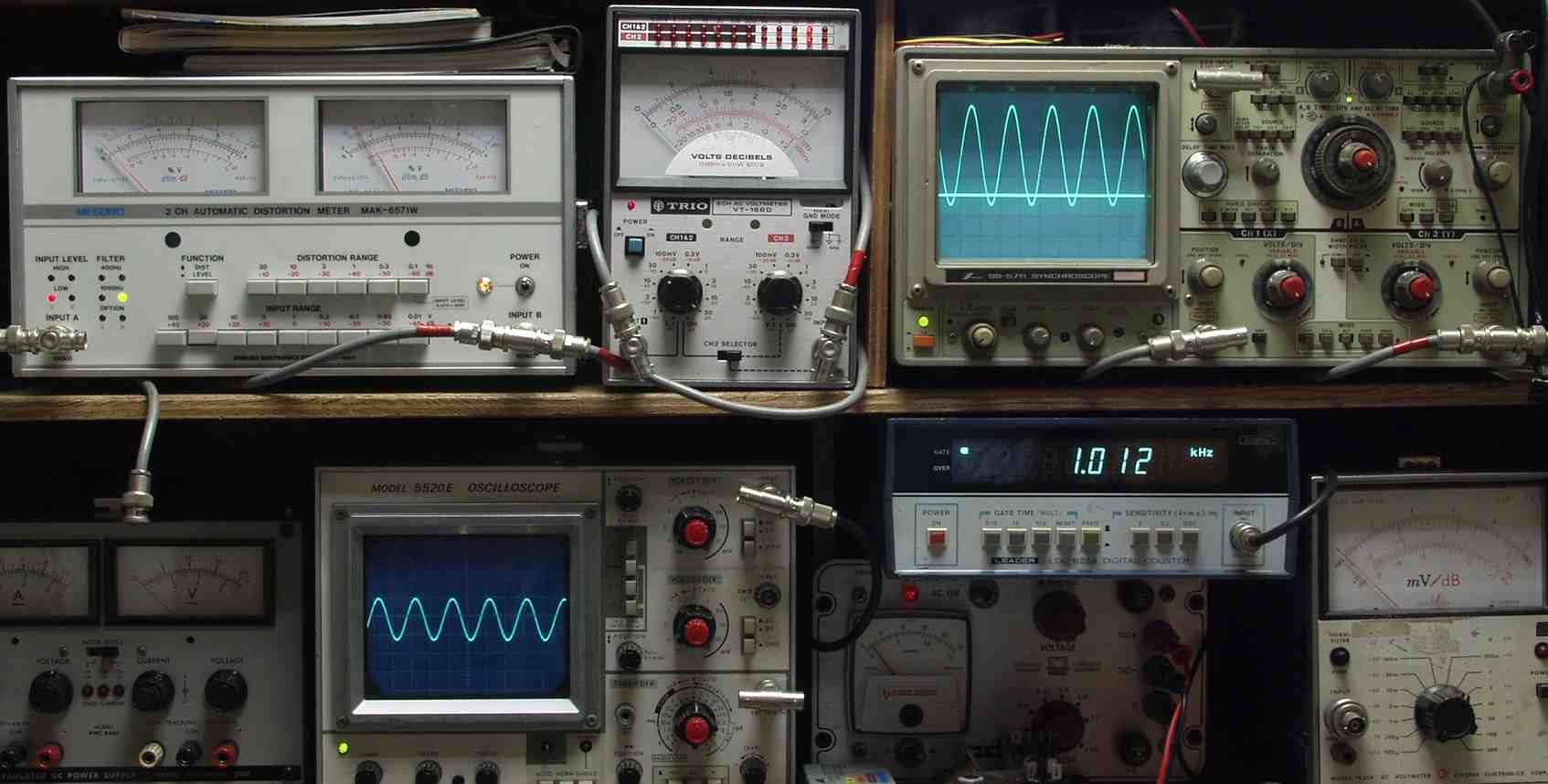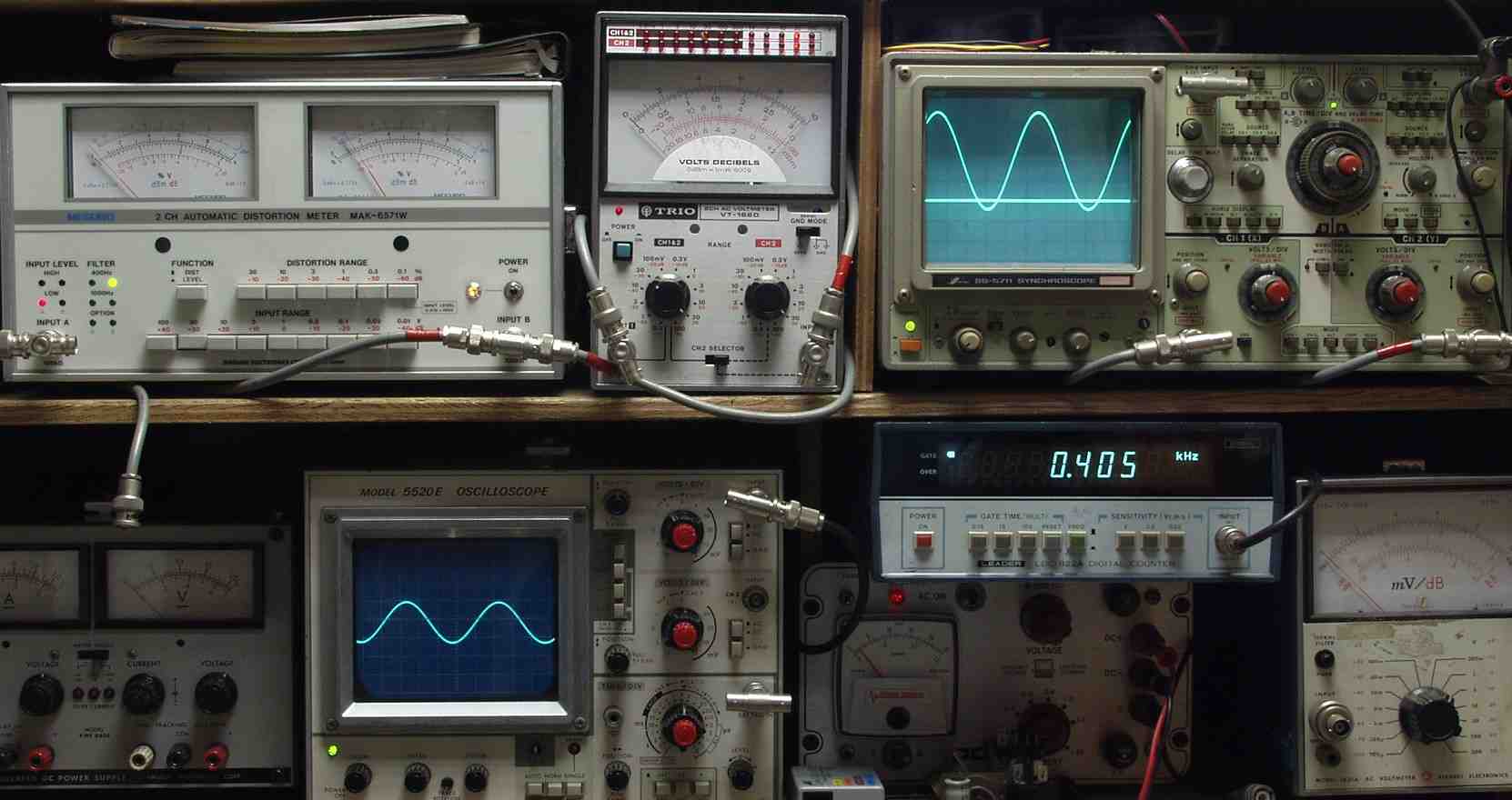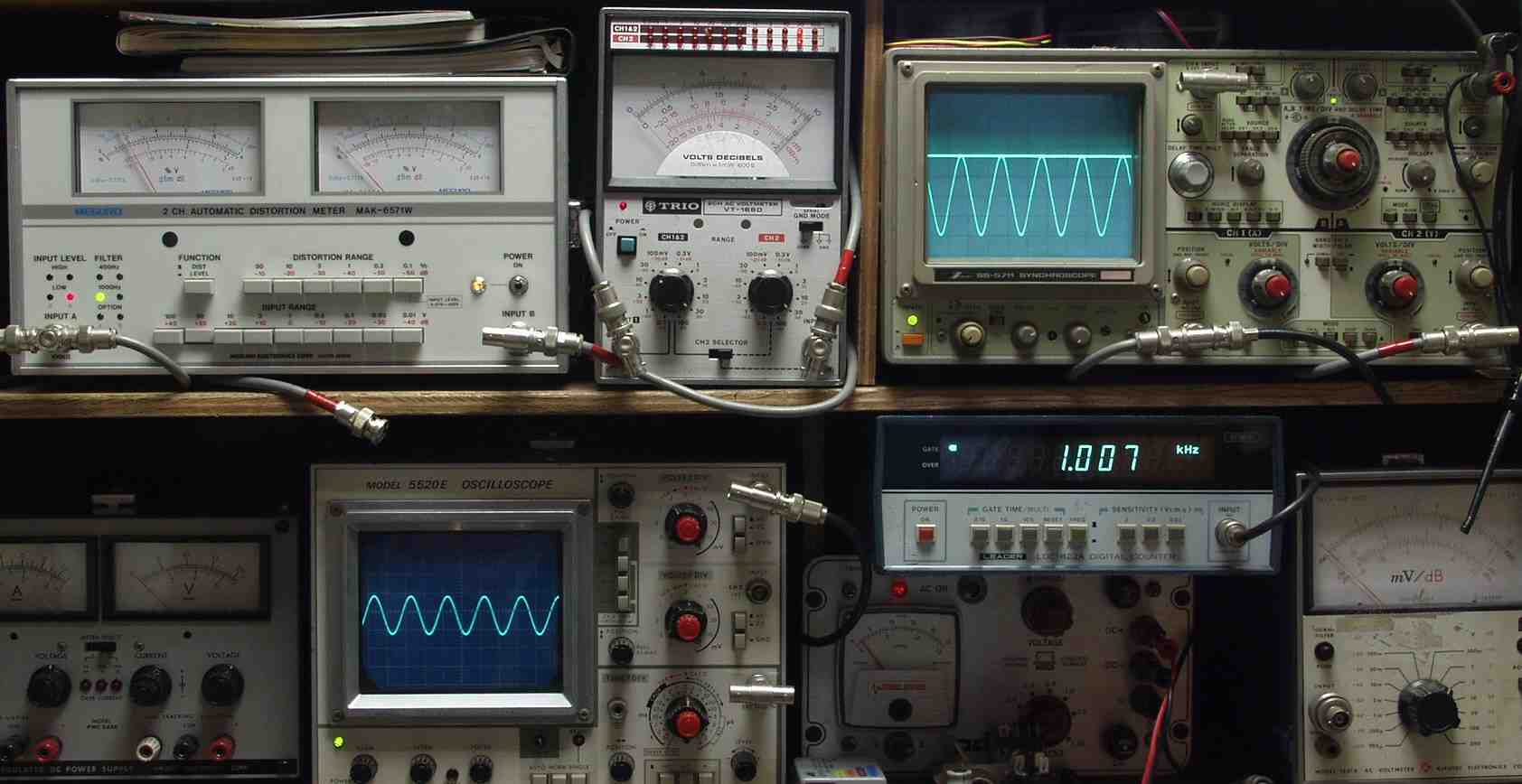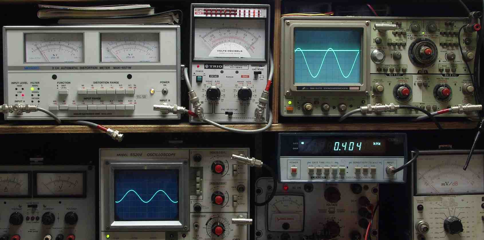 下左オーディオ発振器より400HZ・1KHZの信号を出す(歪み率=約0.003%)