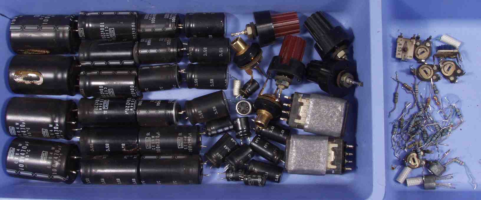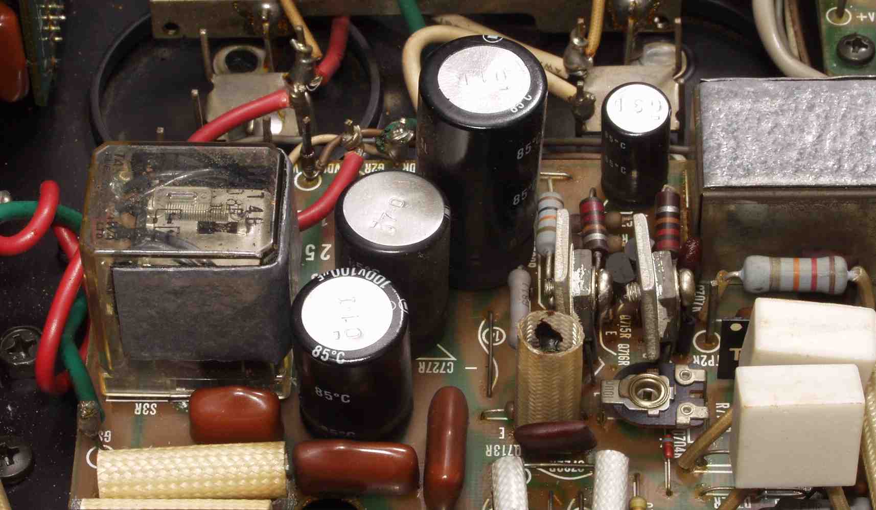フューズ入り抵抗全部、電解コンデンサー11個交換 モジュール修理
