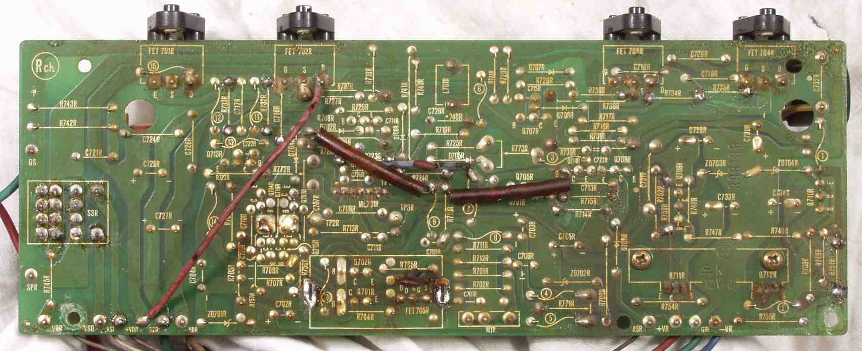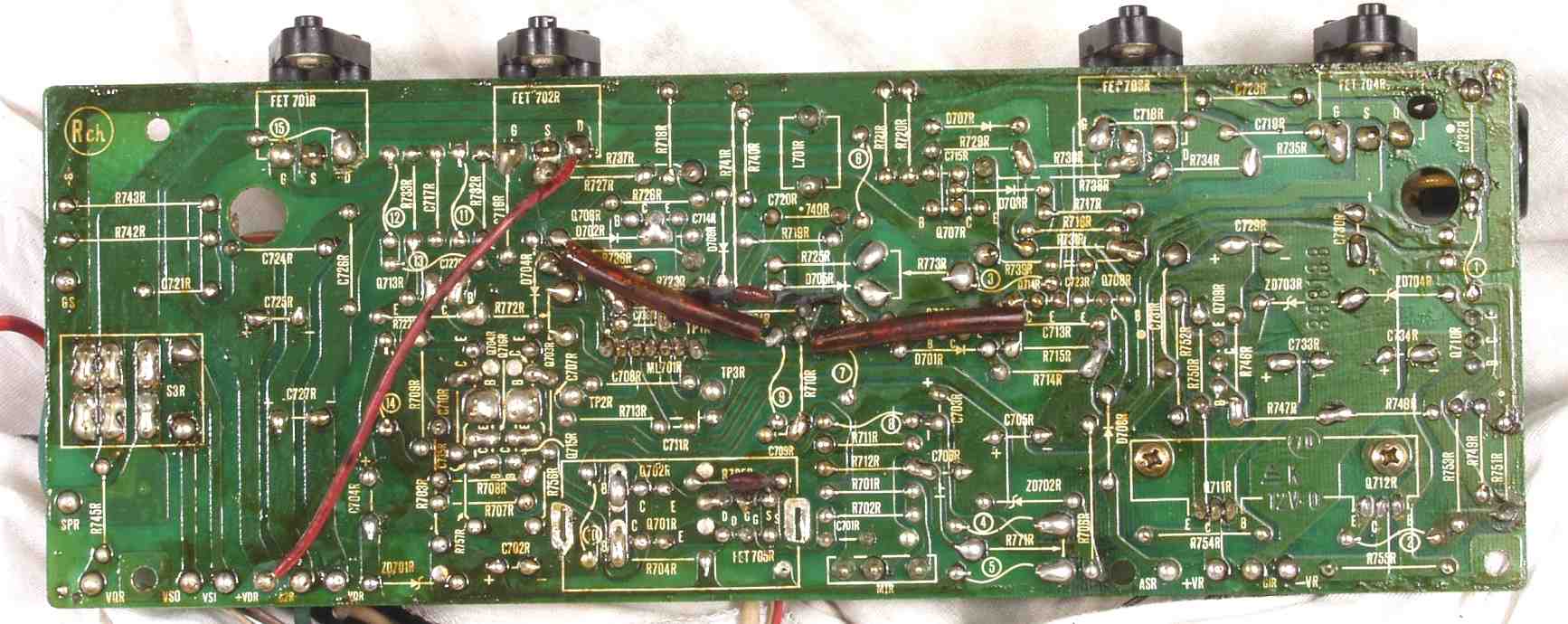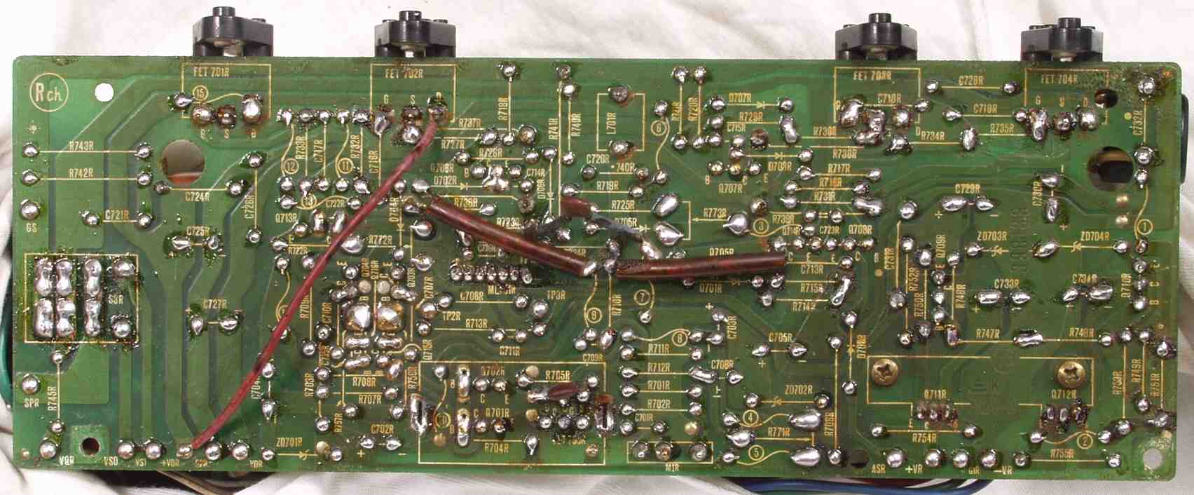 C1D. 修理(半田補正)後 Rドライブ基板裏 半田を全部やり直す 普通はこれで完成