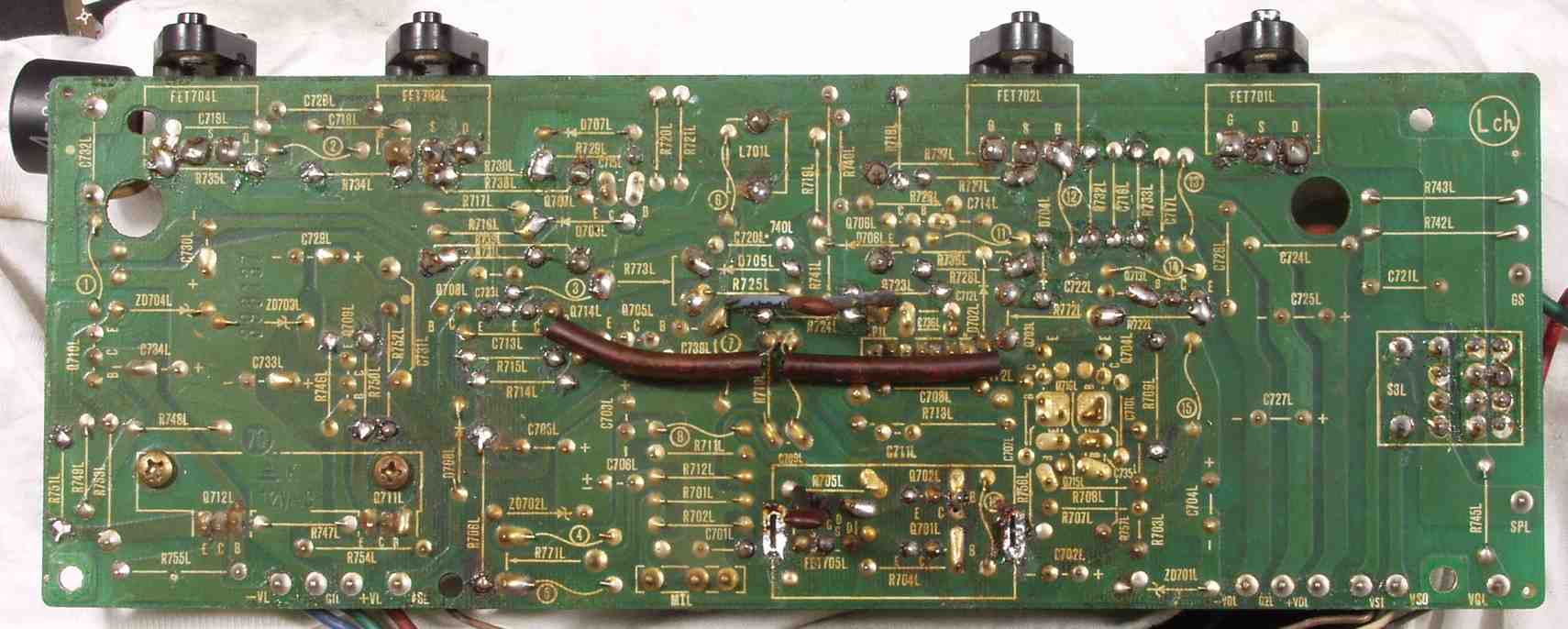 C2D. 修理(半田補正)後 Lドライブ基板裏 半田を全部やり直す 普通はこれで完成