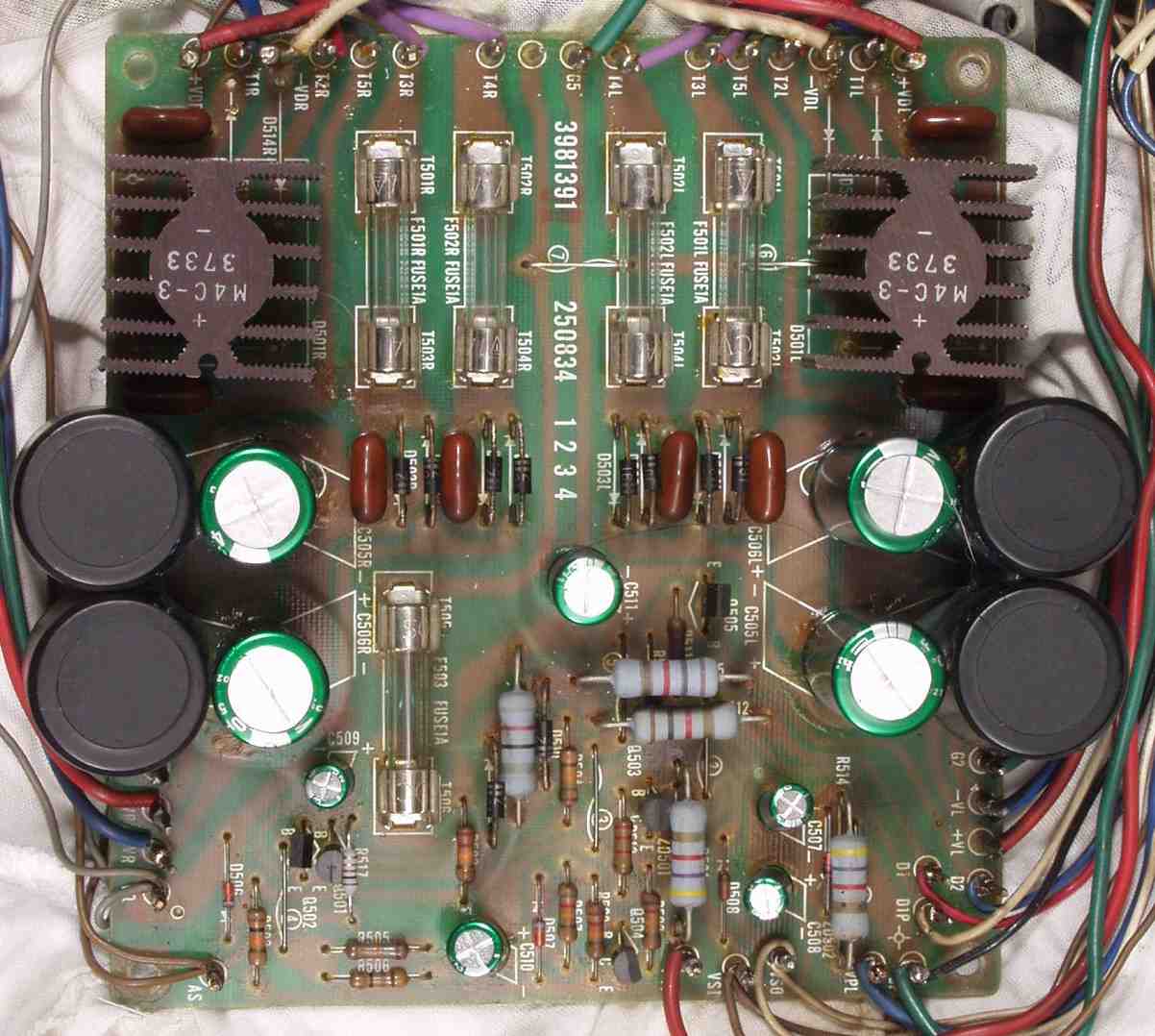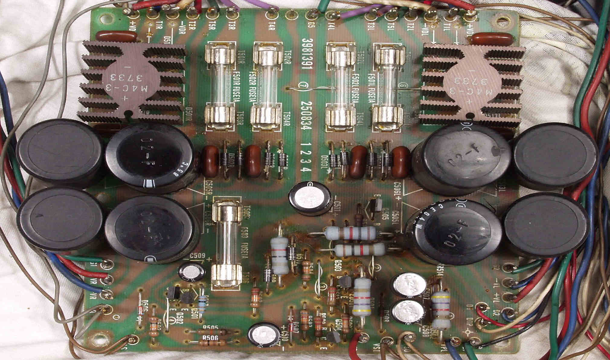 C3B. 修理後 電源基盤 フューズ入り抵抗全部、電解コンデンサー9個交換