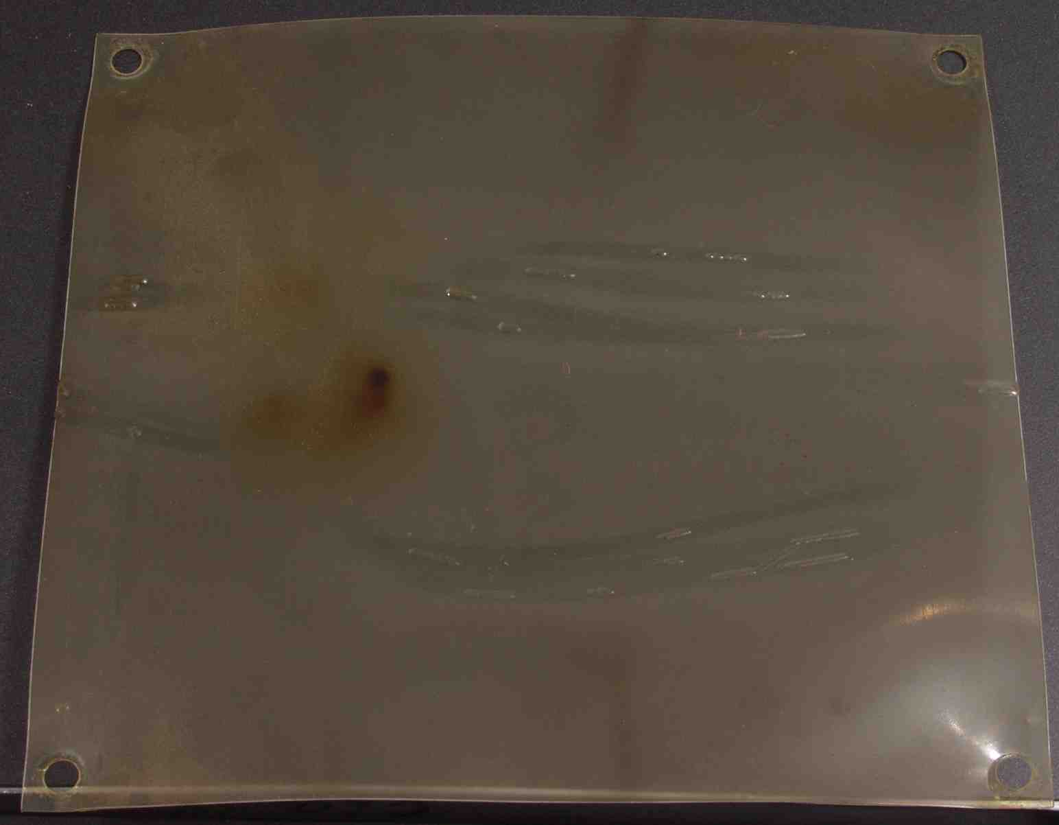 C3F. 発振で基板の銅伯が熱を帯び、解けた跡が残る絶縁シート