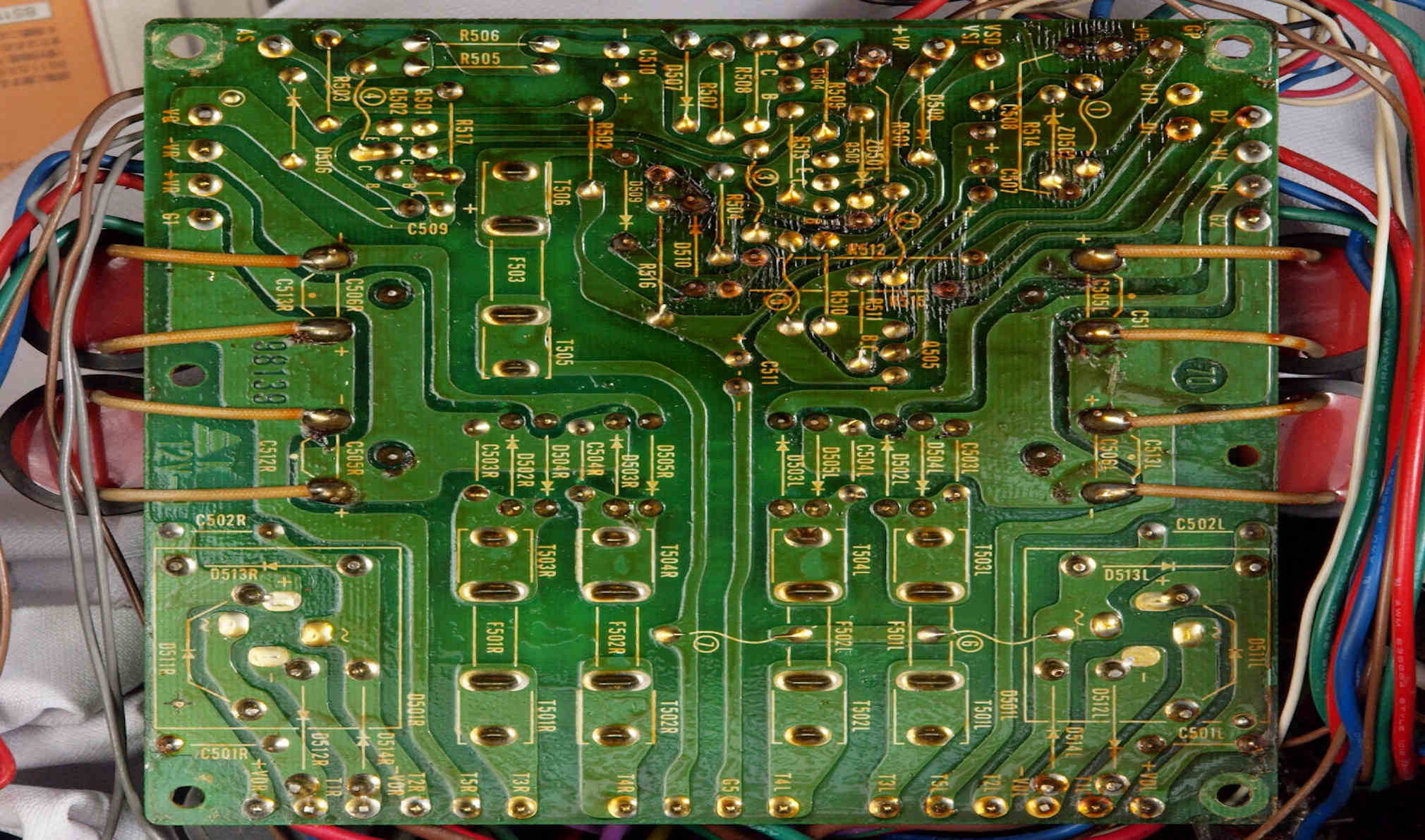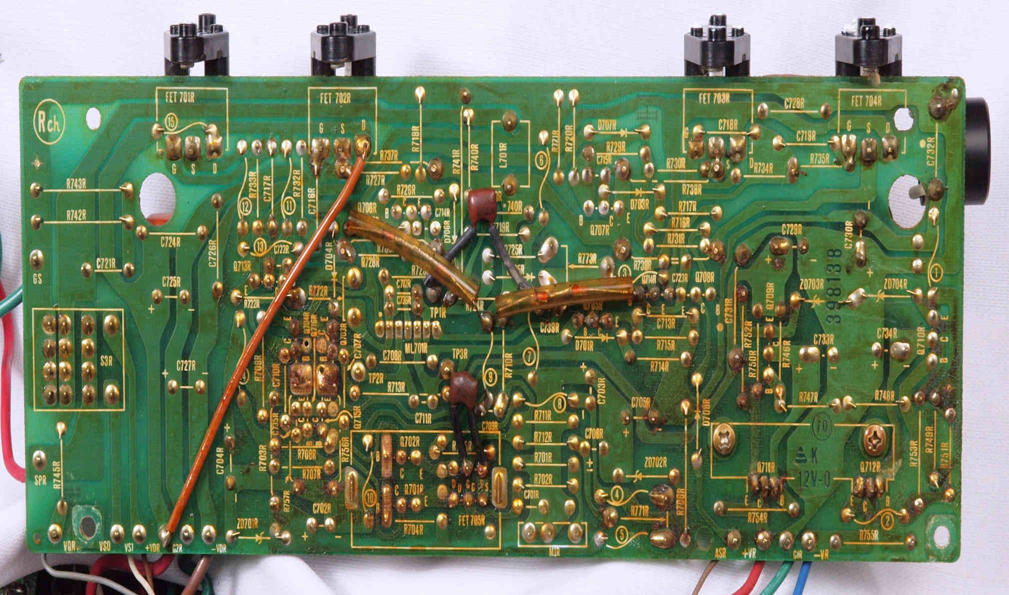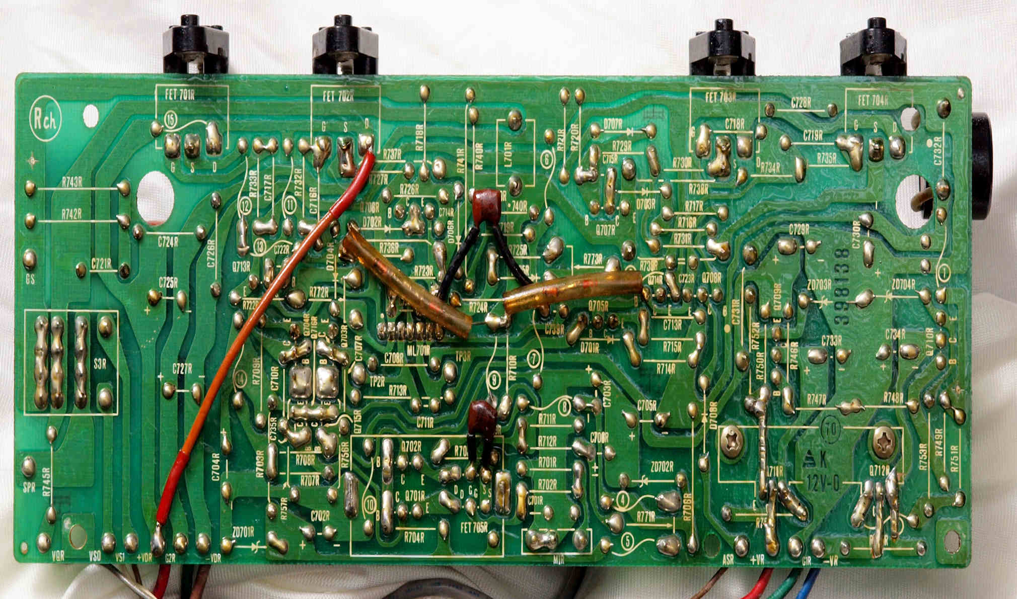 | C15. 修理(半田補正)後 R側ドライブ基板裏 半田を全部やり直す。 普通はこれで完成。 |