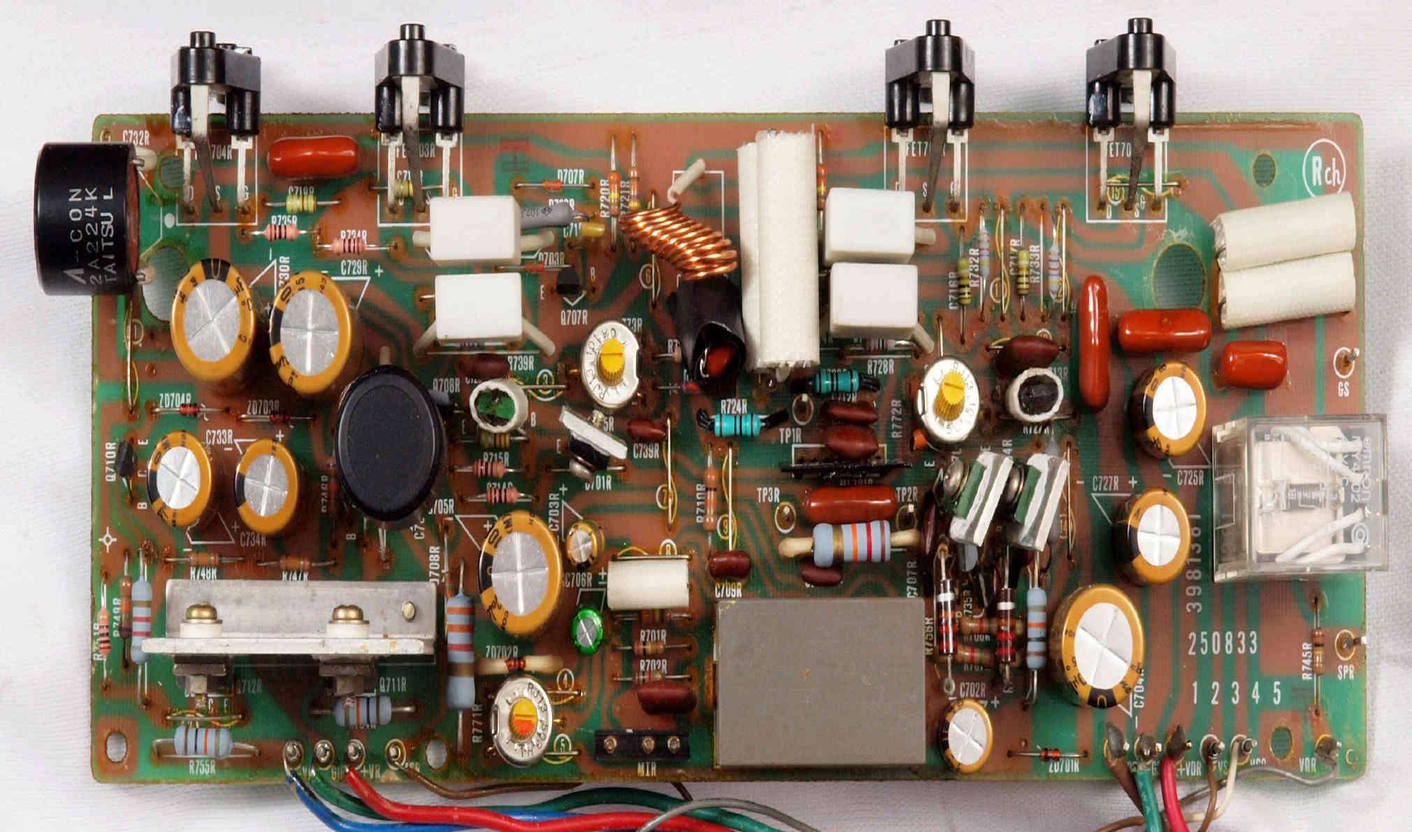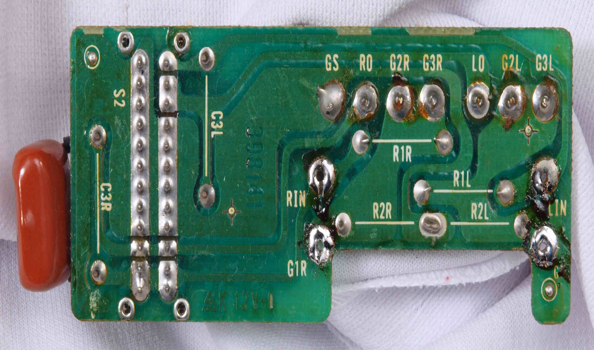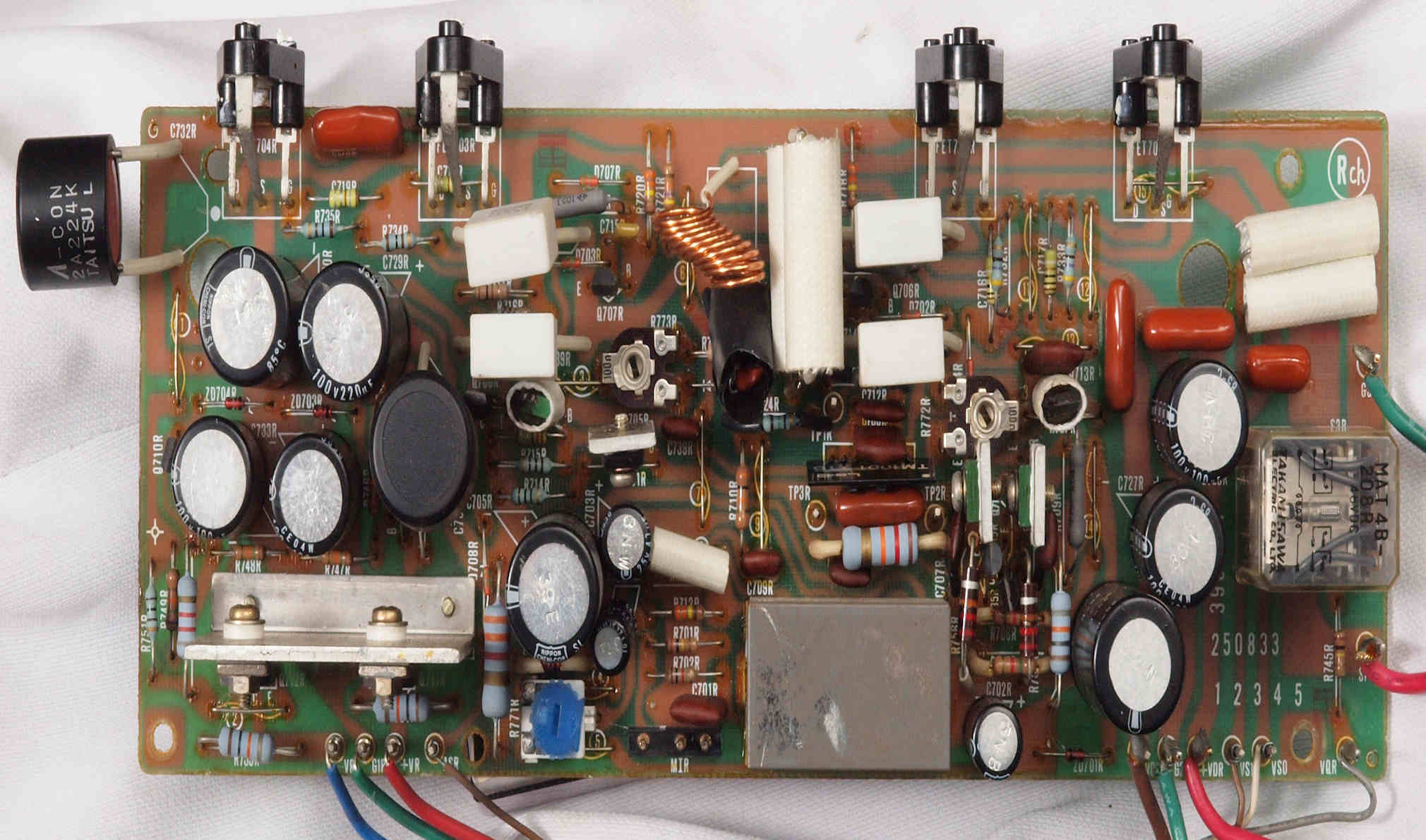 | C43. 修理後 RLモジュール裏。 TR(トランジスター)交換後軽くラッカーを吹きました。 |