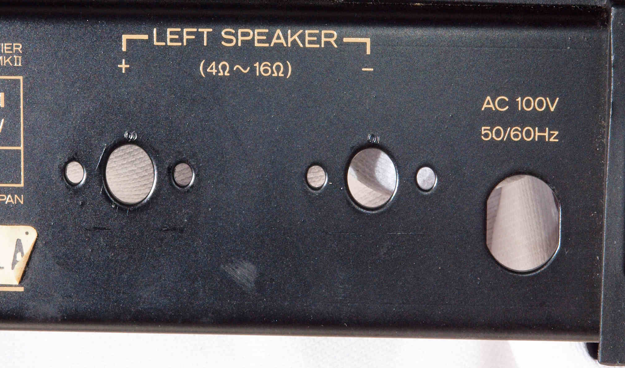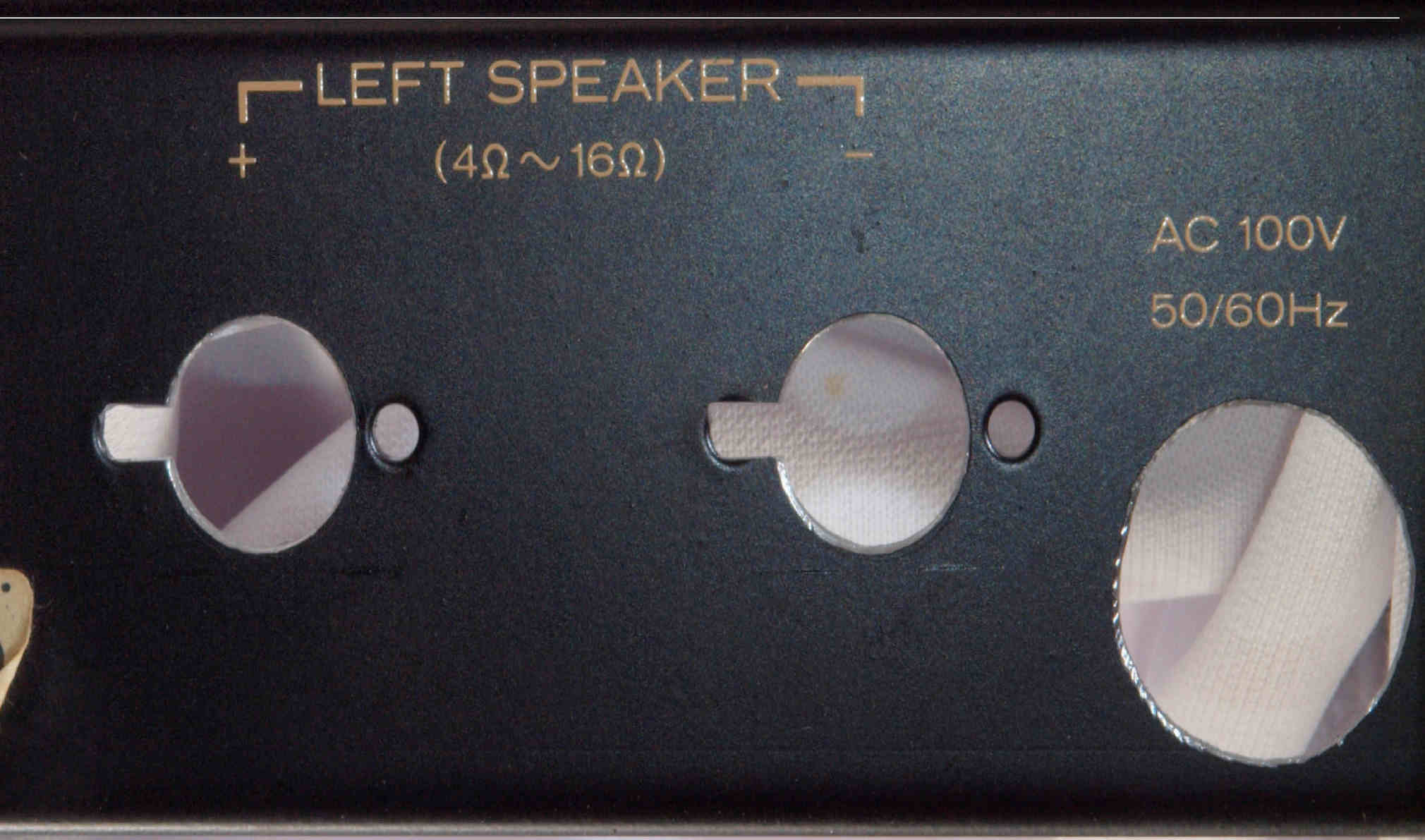 | 注意 このAMPはアースラインが浮いています。 AMPのシャーシにSPの線(アース側)やプリAMPのアースもも接続してはいけません。 RL−SPのアース線も接続(共通)してもいけません、+−の撚りのあるのも使用出来ません。 又、DC(directconnection)入力が可能ですが、絶対に使用しないこと=ここ参照 |