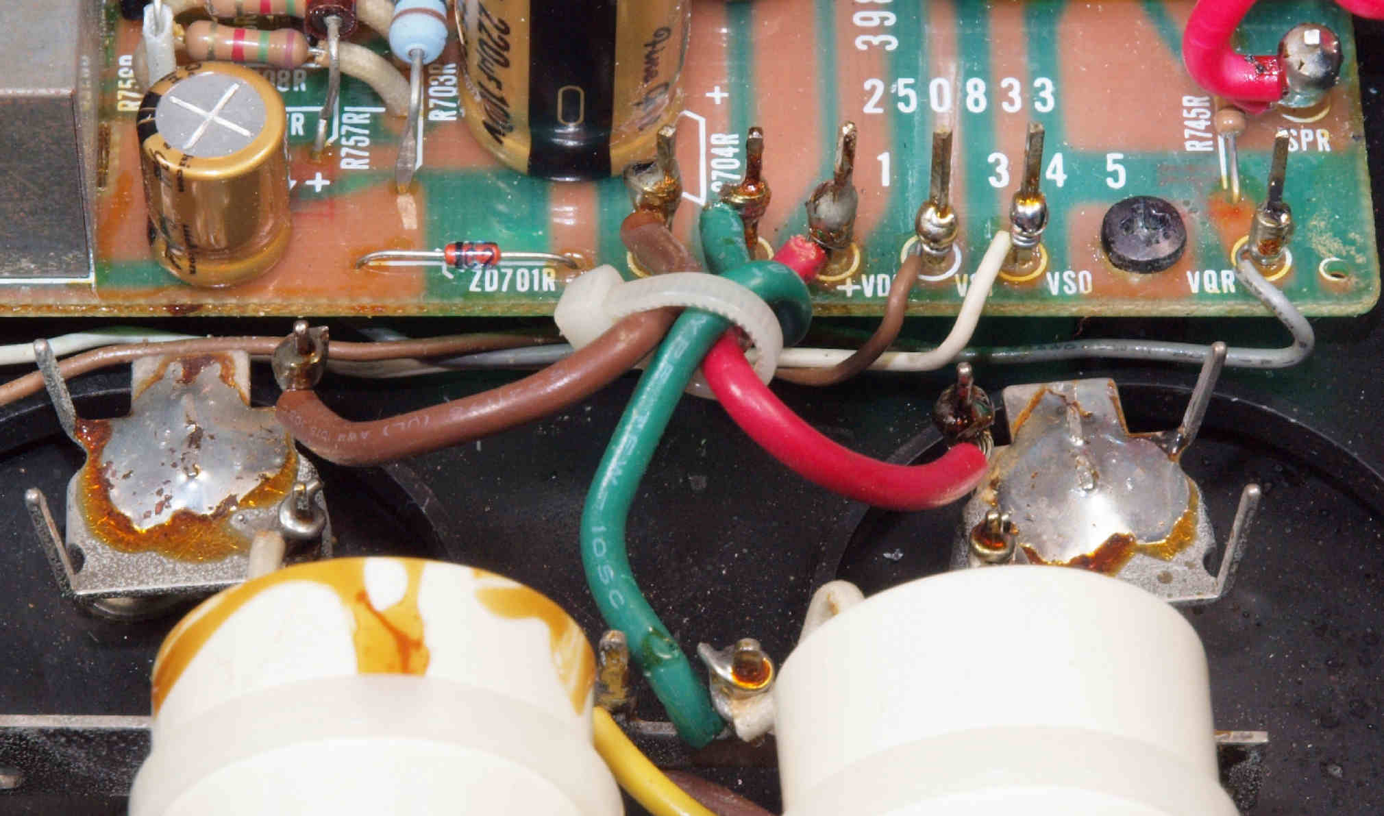 | CA5. 修理前 R側ドライブ基板−電源基板へのラッピング線 |