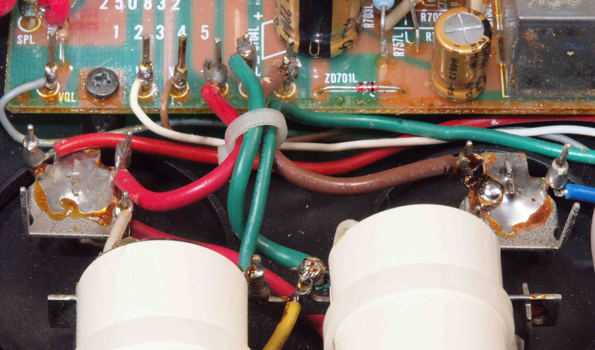 | C75. 修理後 R−SP端子裏配線、WBTのネジ止めを生かし、ネジ止め接続+半田接続のW配線にした。理由はこちら |