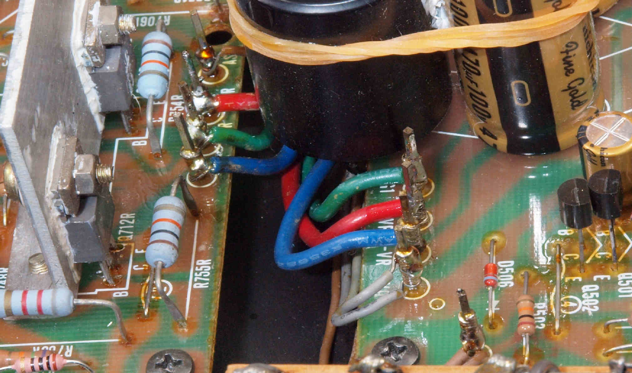 | CA6. 修理後 R側ドライブ基板−電源基板へのラッピング線に半田を浸み込ませる |