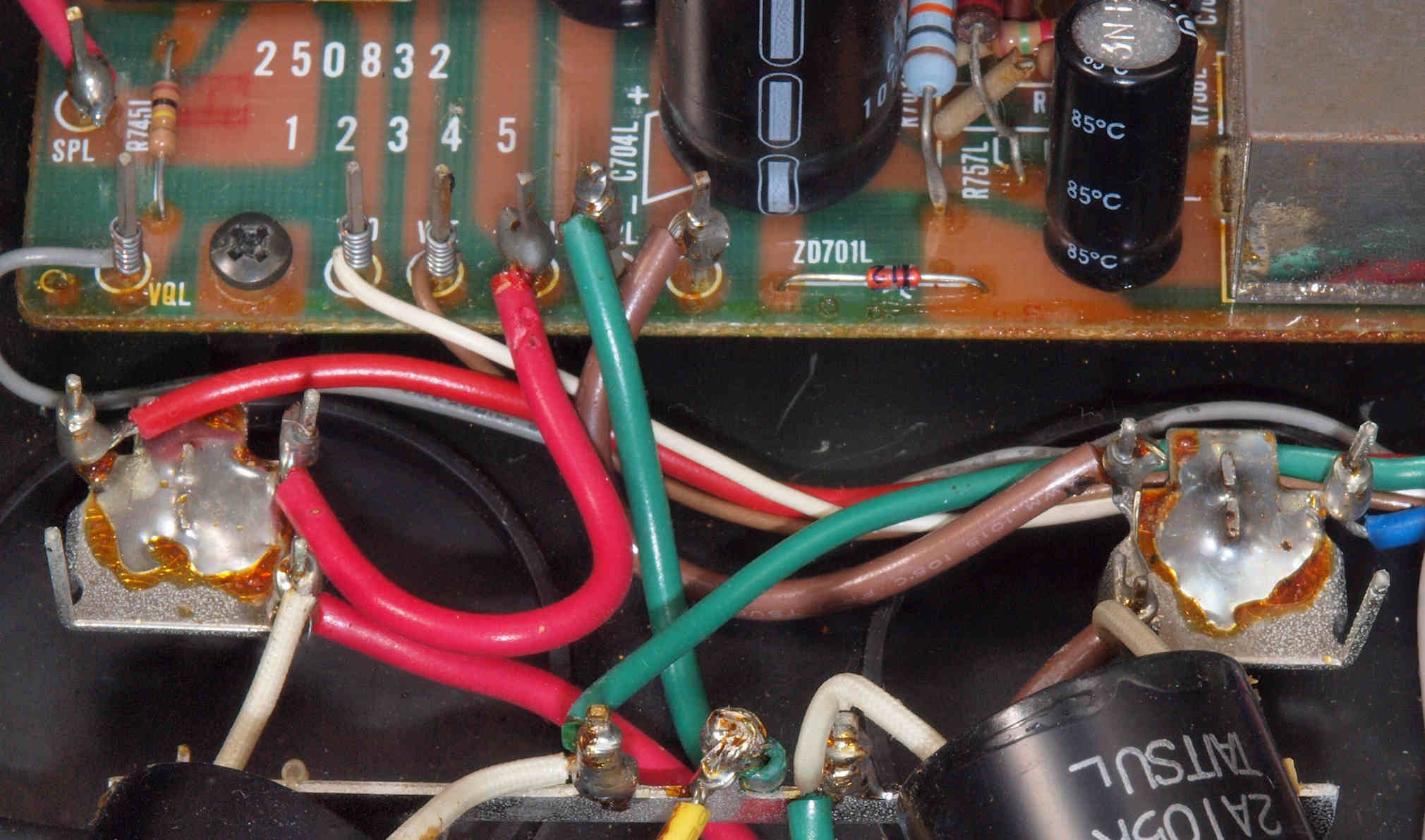 | C85. 修理後 R−SP端子裏配線、WBTのネジ止めを生かし、ネジ止め接続+半田接続のW配線にした。理由はこちら |