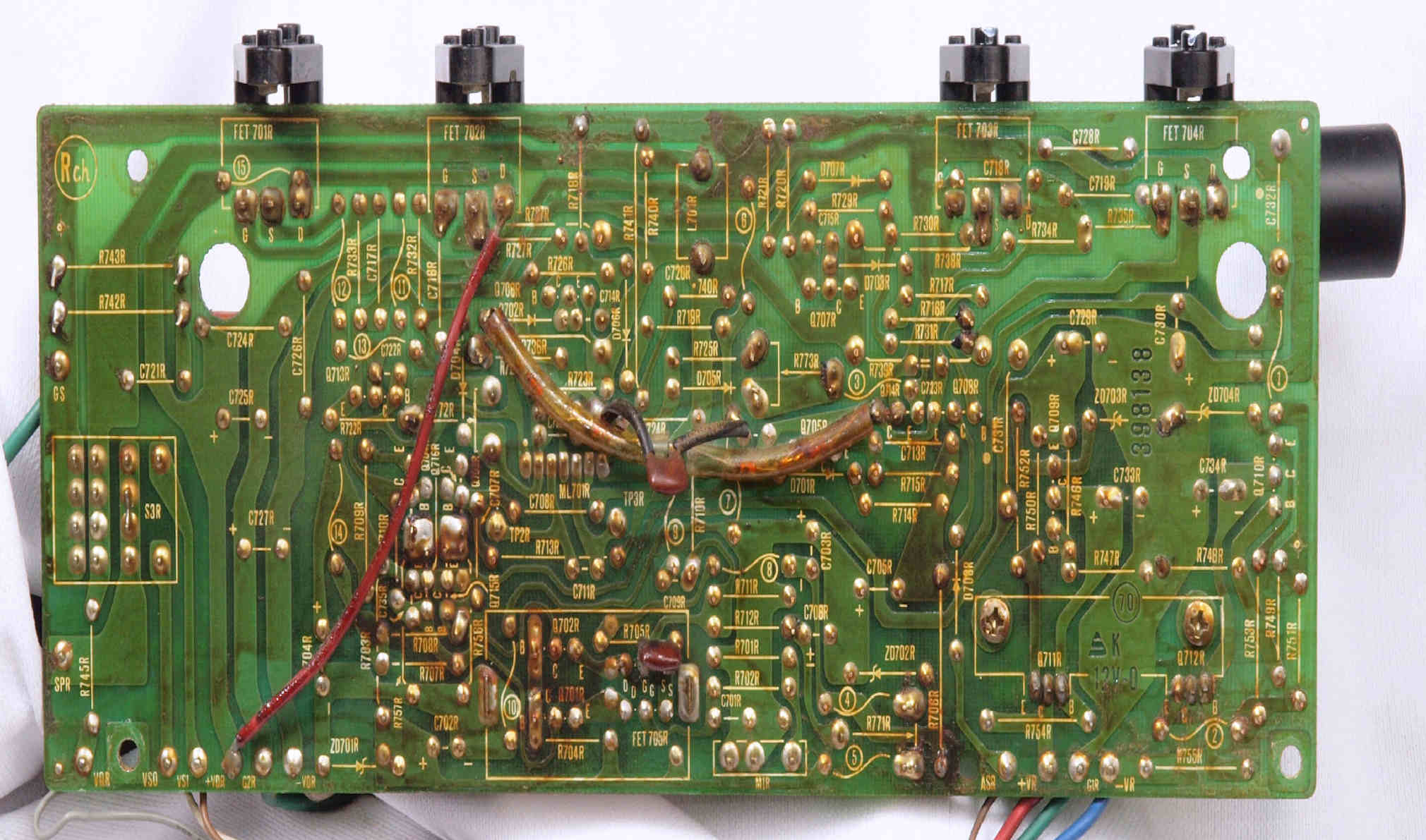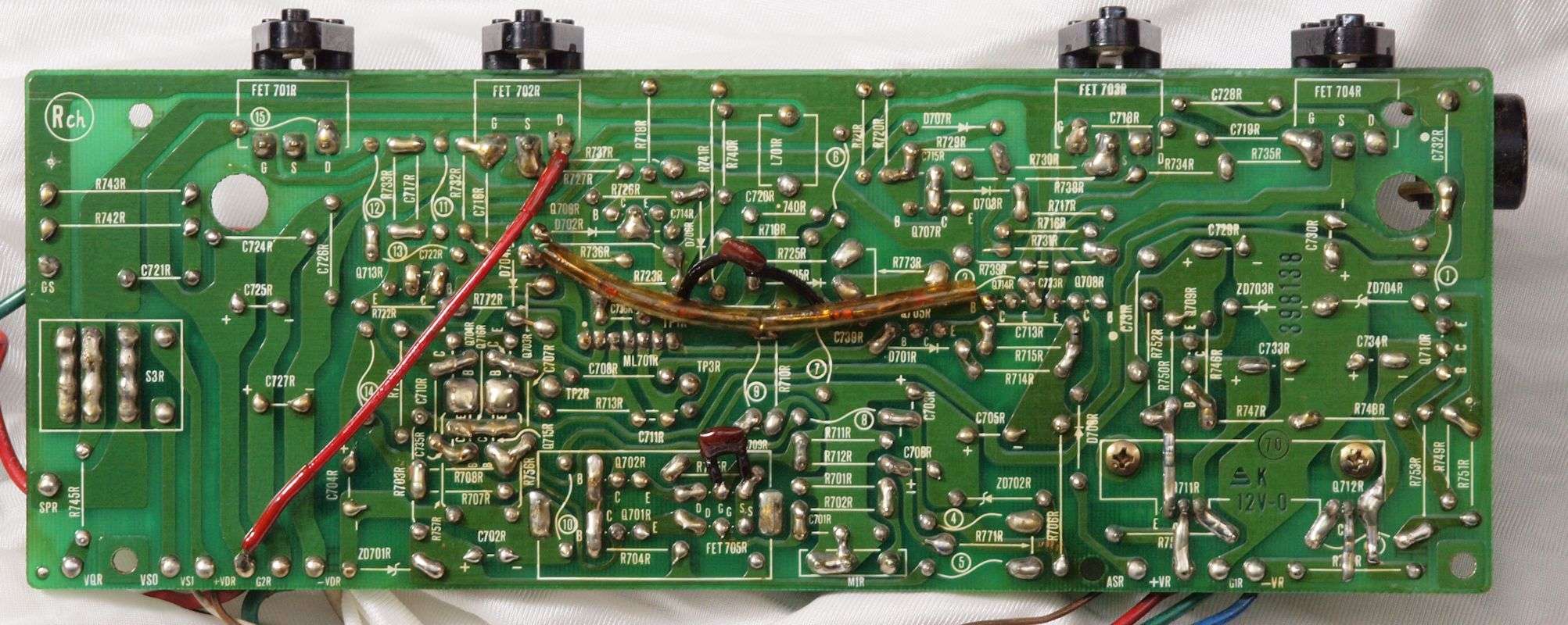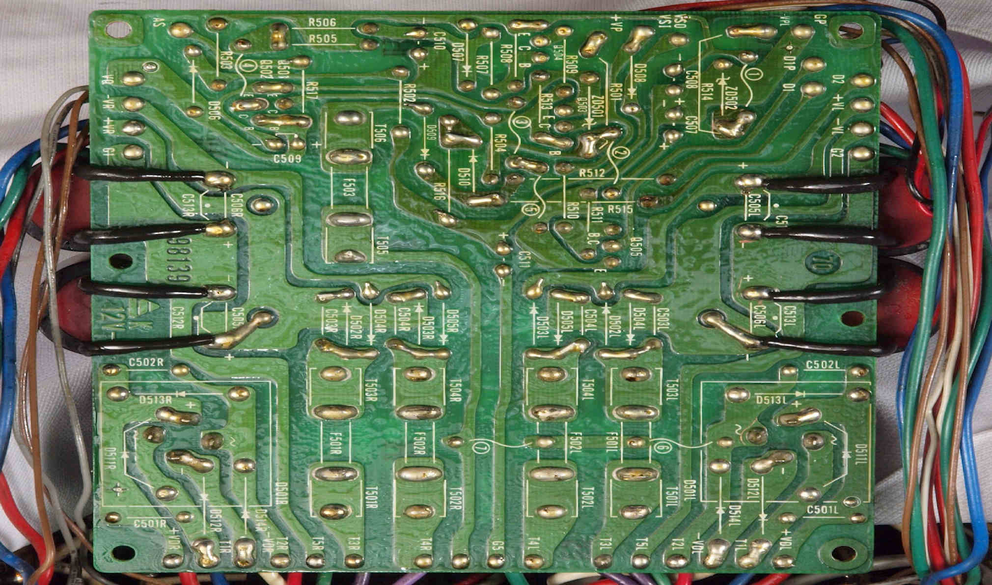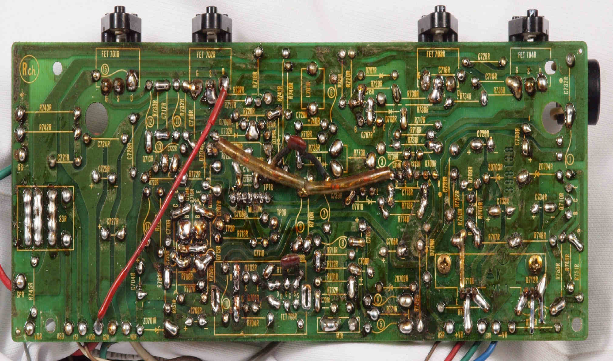 | C15. 修理(半田補正)後 R側ドライブ基板裏 半田を全部やり直す。 普通はこれで完成。 |