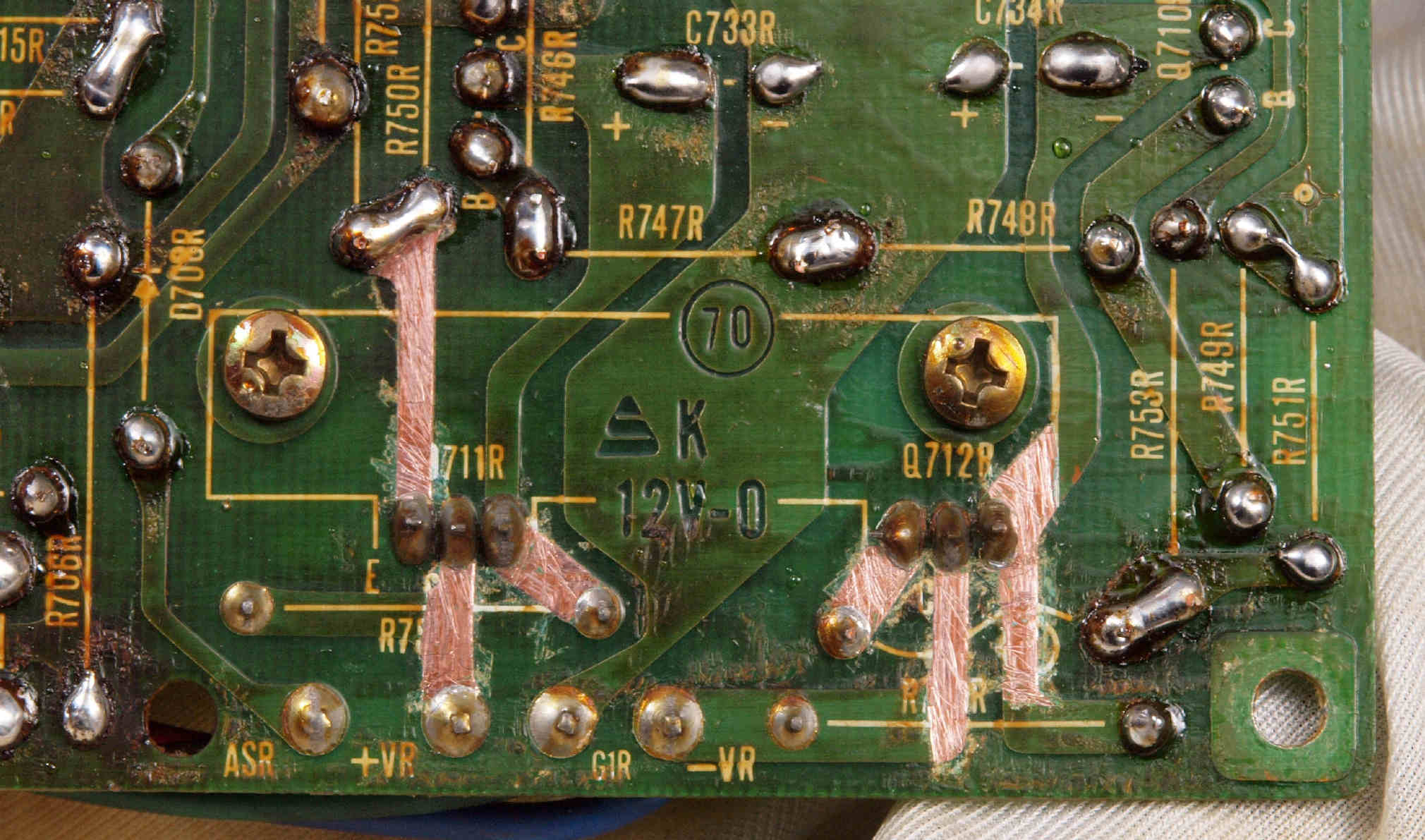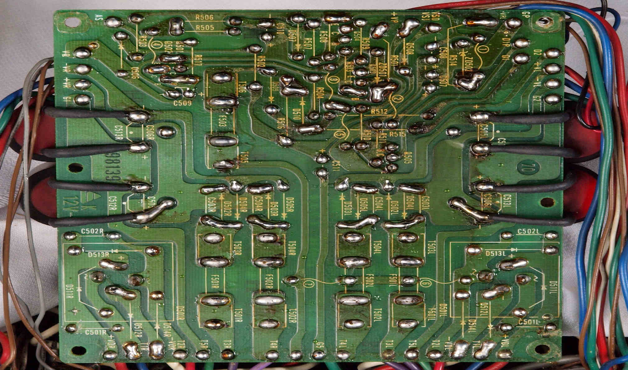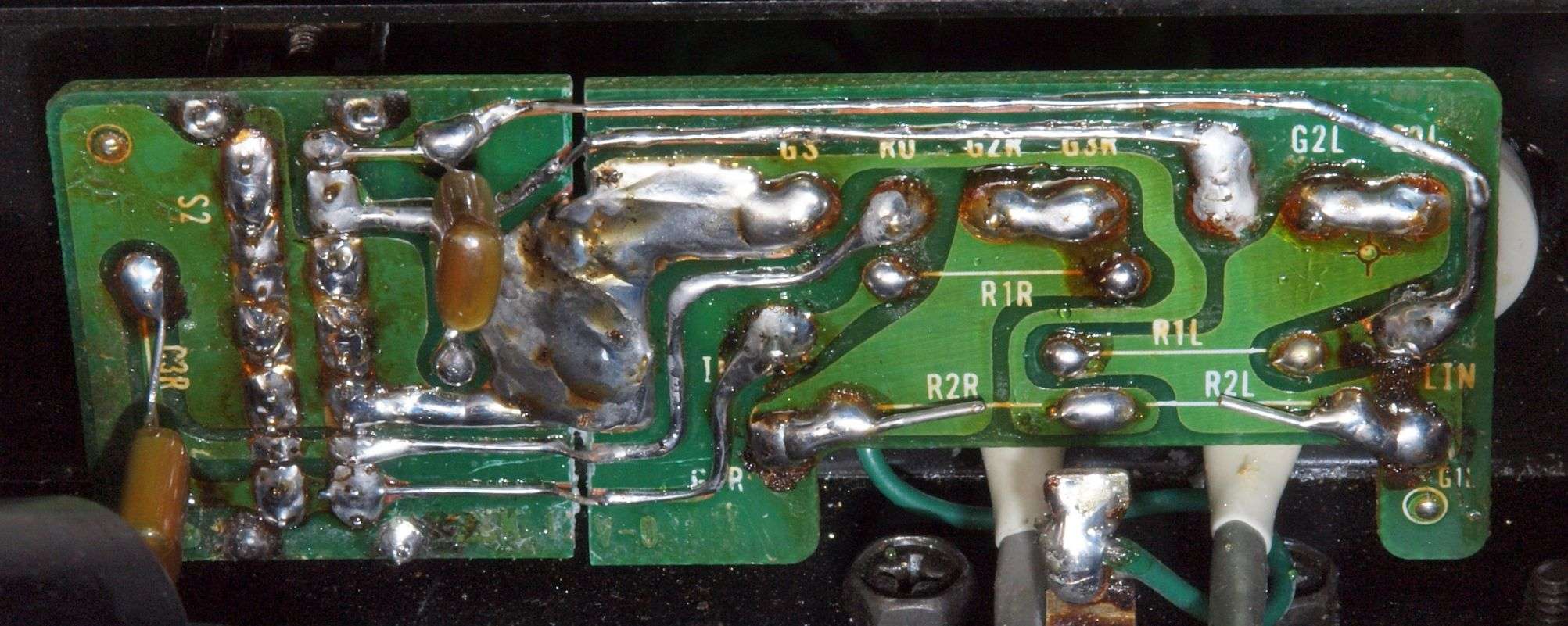 | C15. 修理(半田補正)後 R側ドライブ基板裏 半田を全部やり直す。 普通はこれで完成。 |