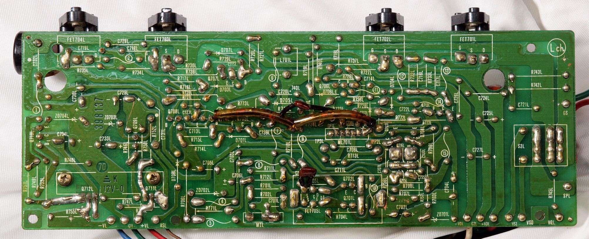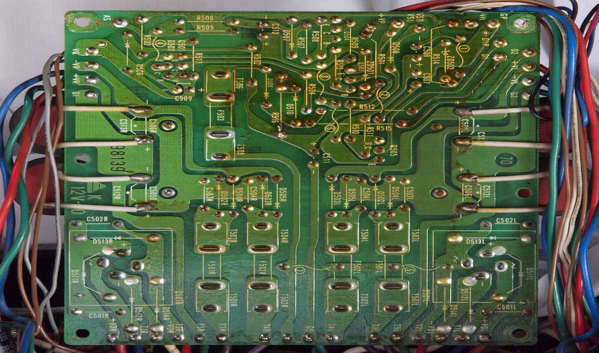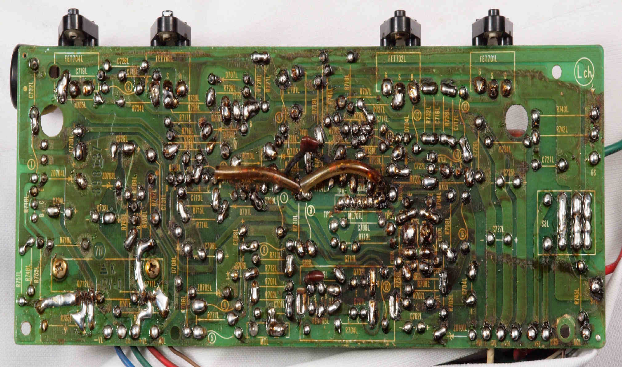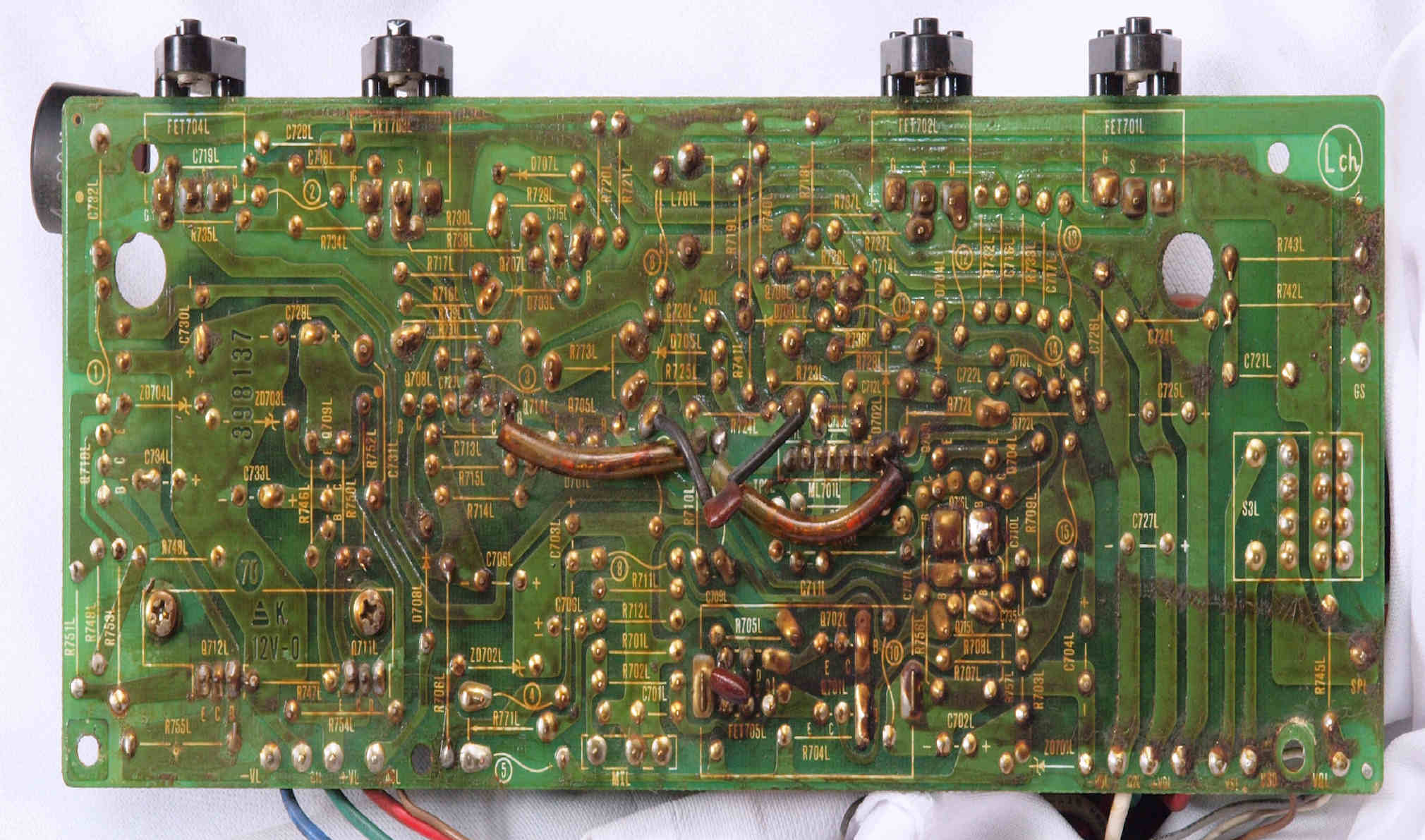 | C15. 修理(半田補正)後 R側ドライブ基板裏 半田を全部やり直す。 普通はこれで完成。 |