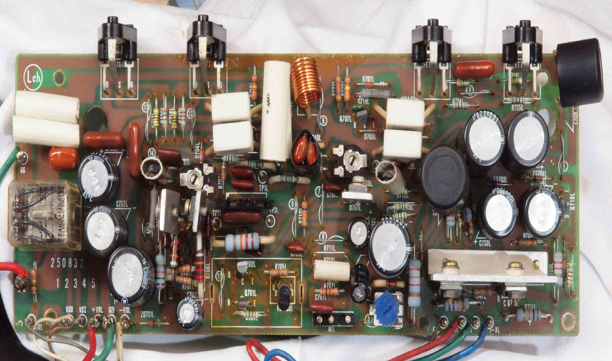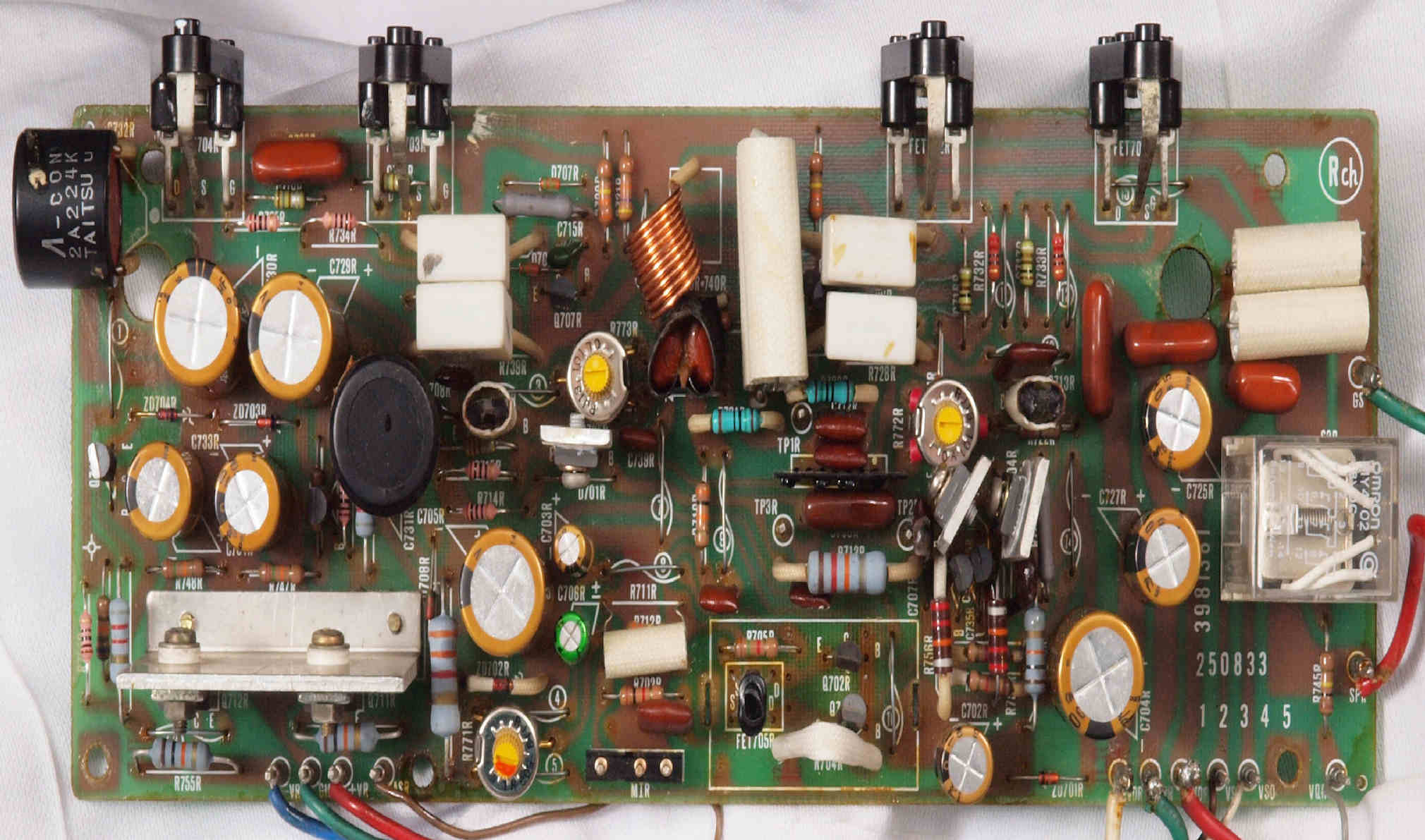 | C43. 修理後 RLモジュール裏。 TR(トランジスター)交換後軽くラッカーを吹きました。 |