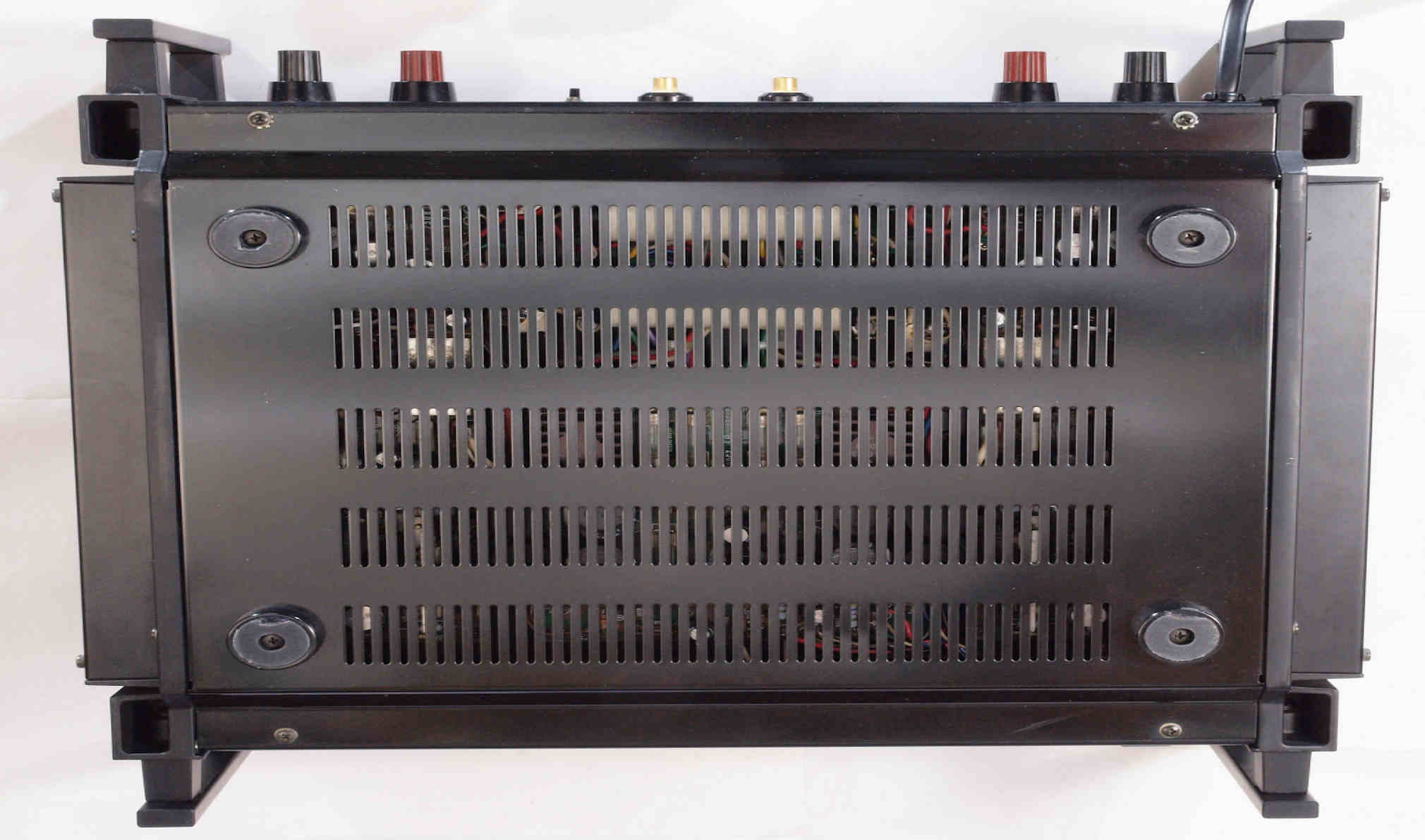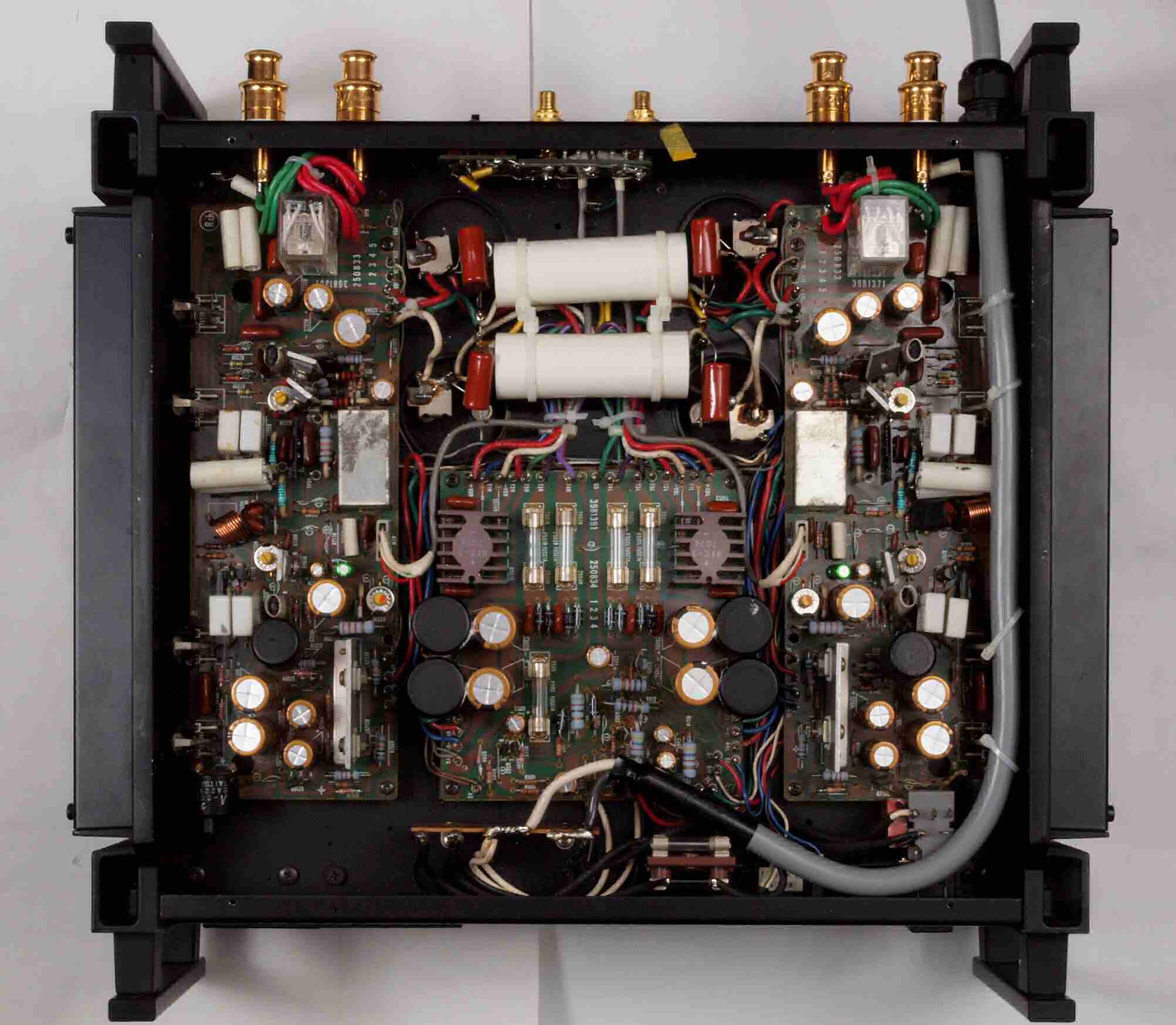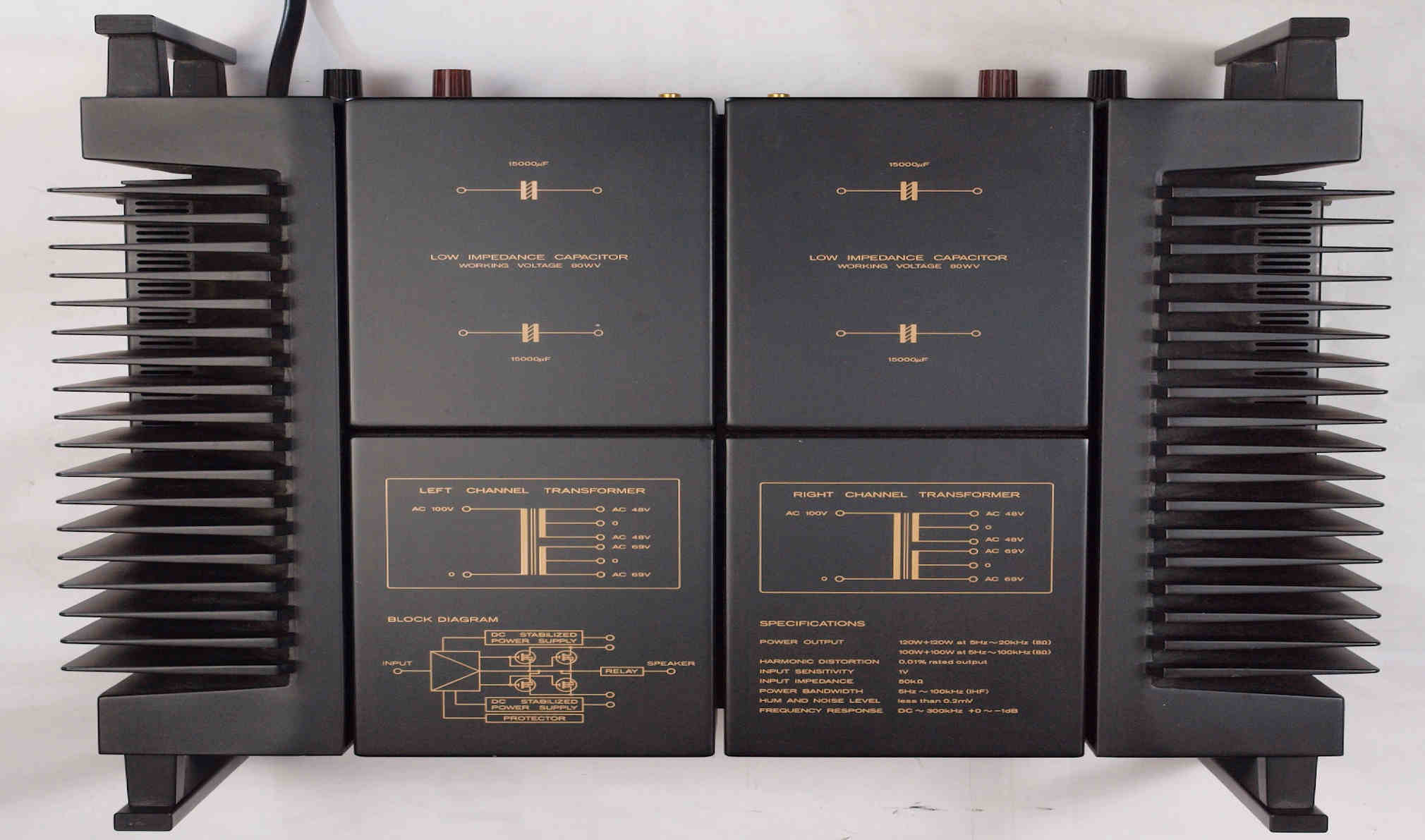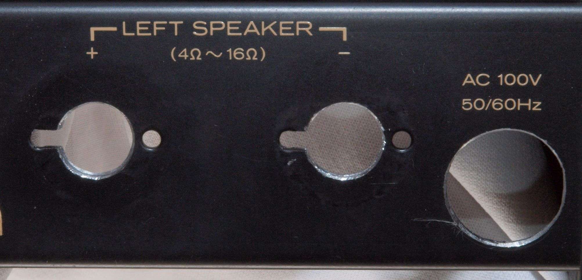 | 注意 このAMPはアースラインが浮いています。 AMPのシャーシにSPの線(アース側)やプリAMPのアースもも接続してはいけません。 RL−SPのアース線も接続(共通)してもいけません、+−の撚りのあるのも使用出来ません。 又、DC(directconnection)入力が可能ですが、絶対に使用しないこと=ここ参照 |