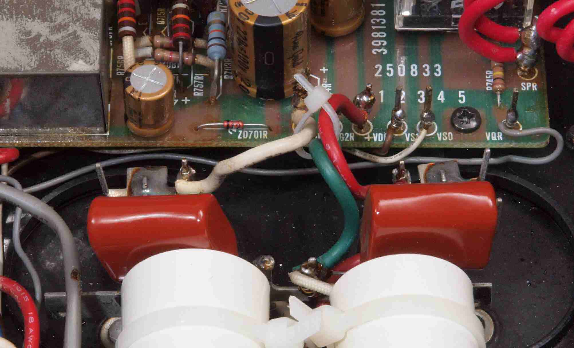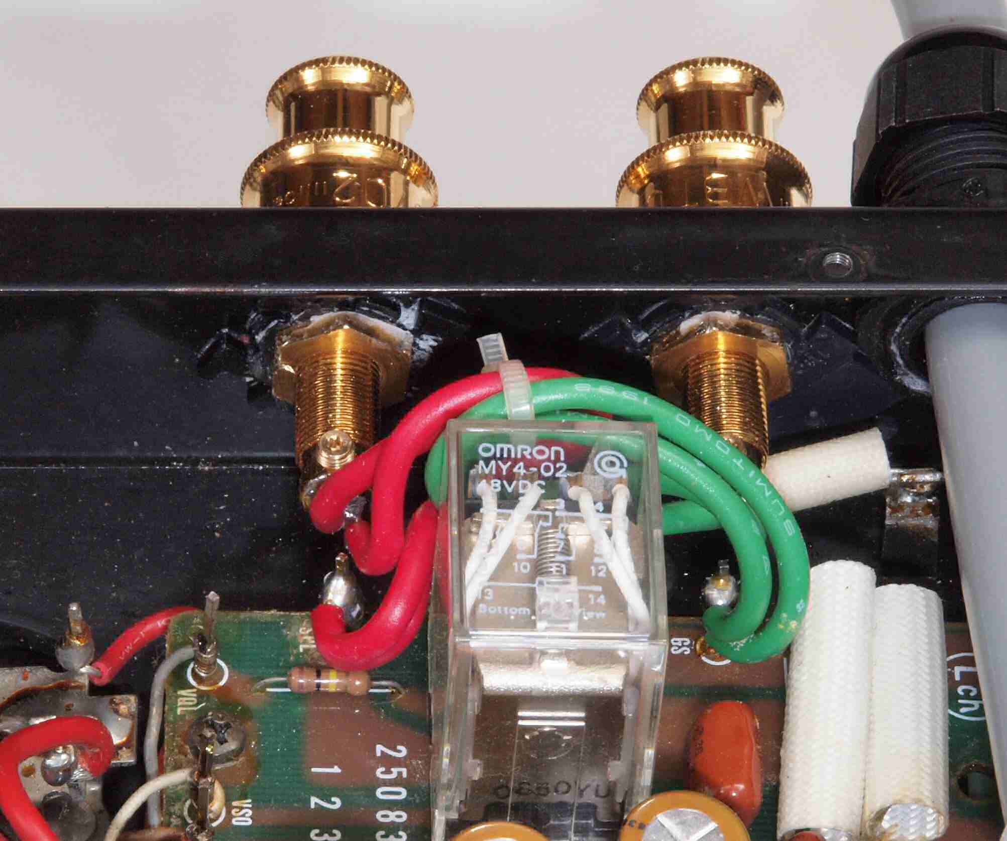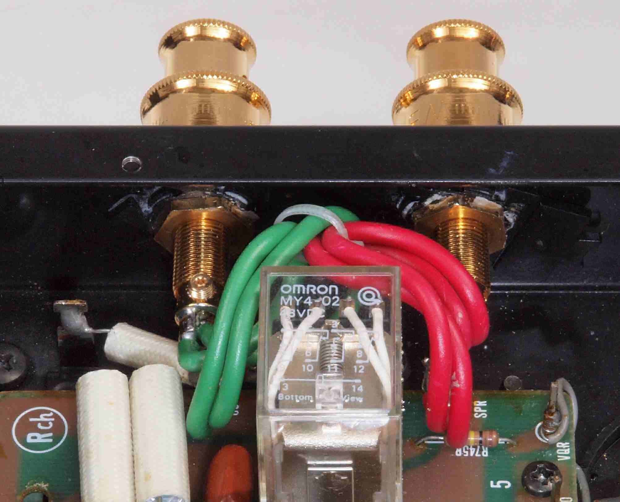 | C85. 修理後 R−SP端子裏配線、WBTのネジ止めを生かし、ネジ止め接続+半田接続のW配線にした。理由はこちら |