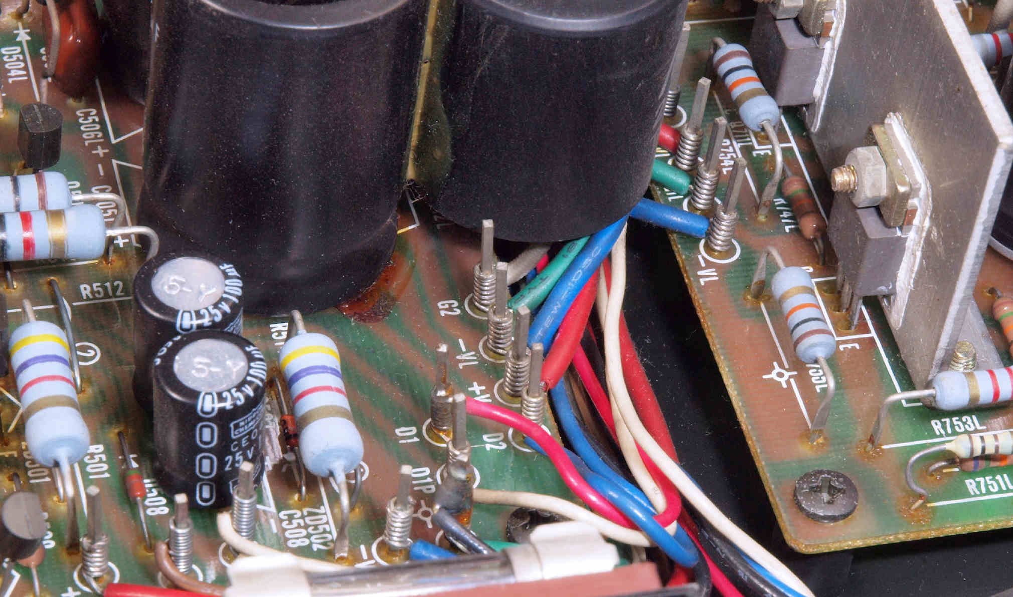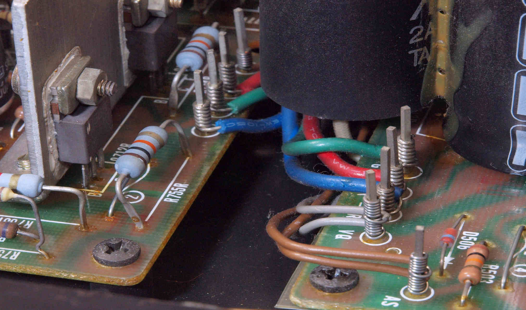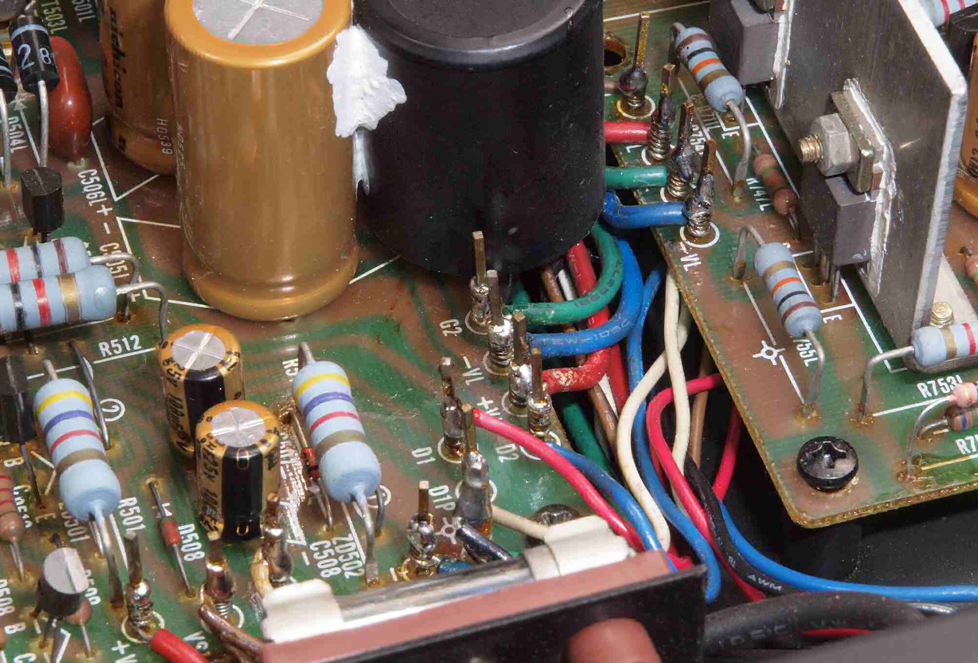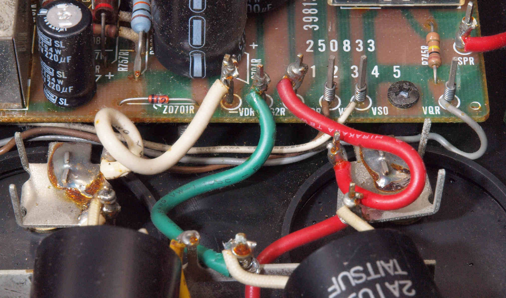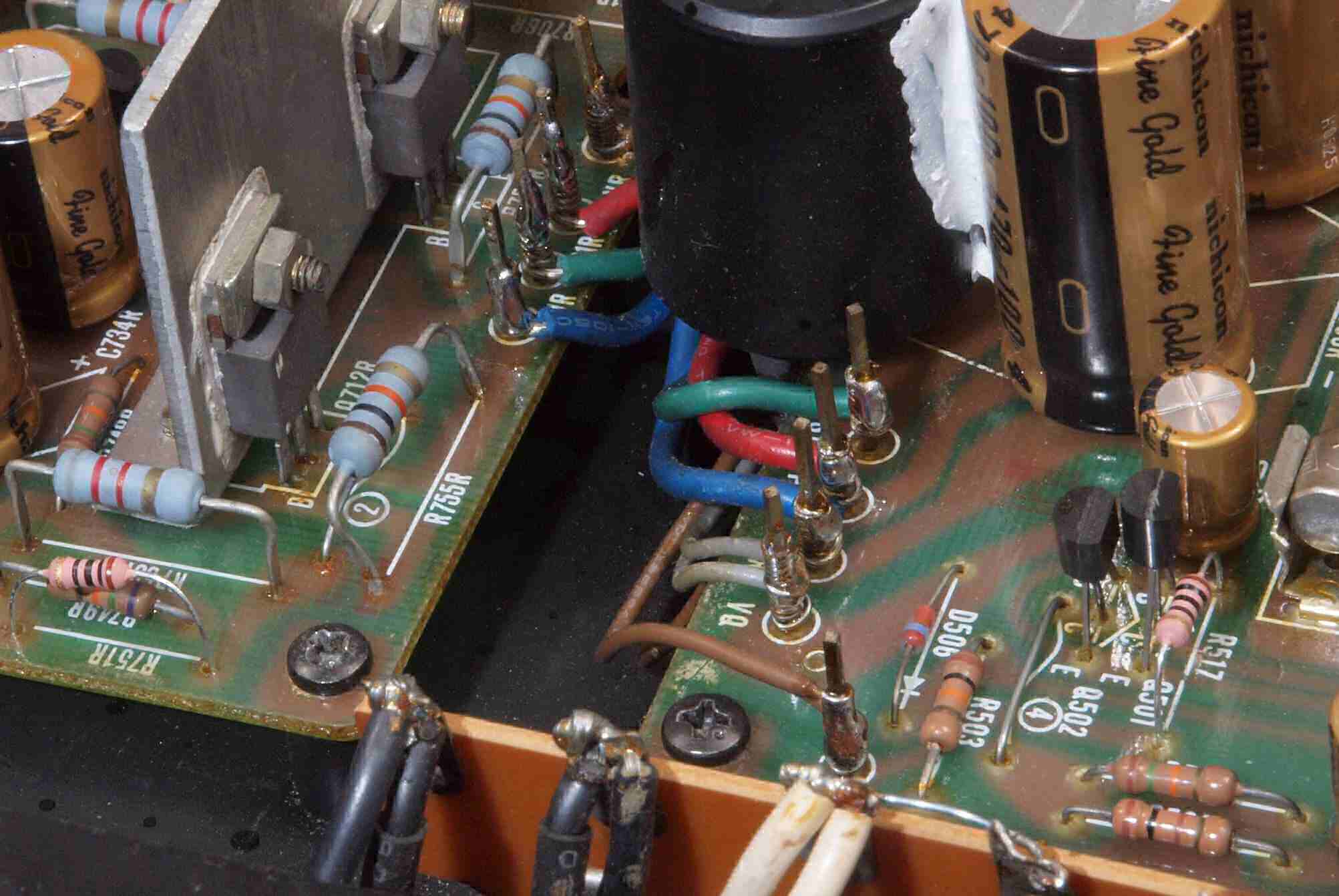 | CA5. 修理前 R側ドライブ基板−電源基板へのラッピング線 |