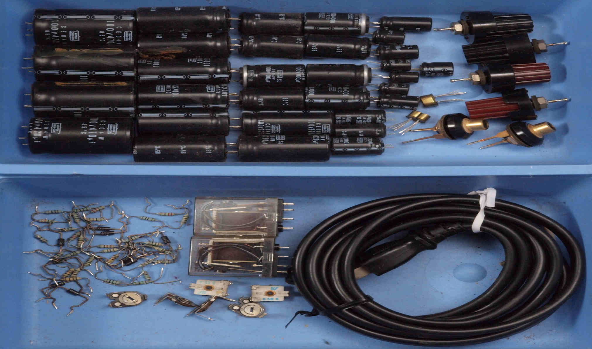 | A41. 点検中 電解コンデンサー外観比較、100μ/100V |