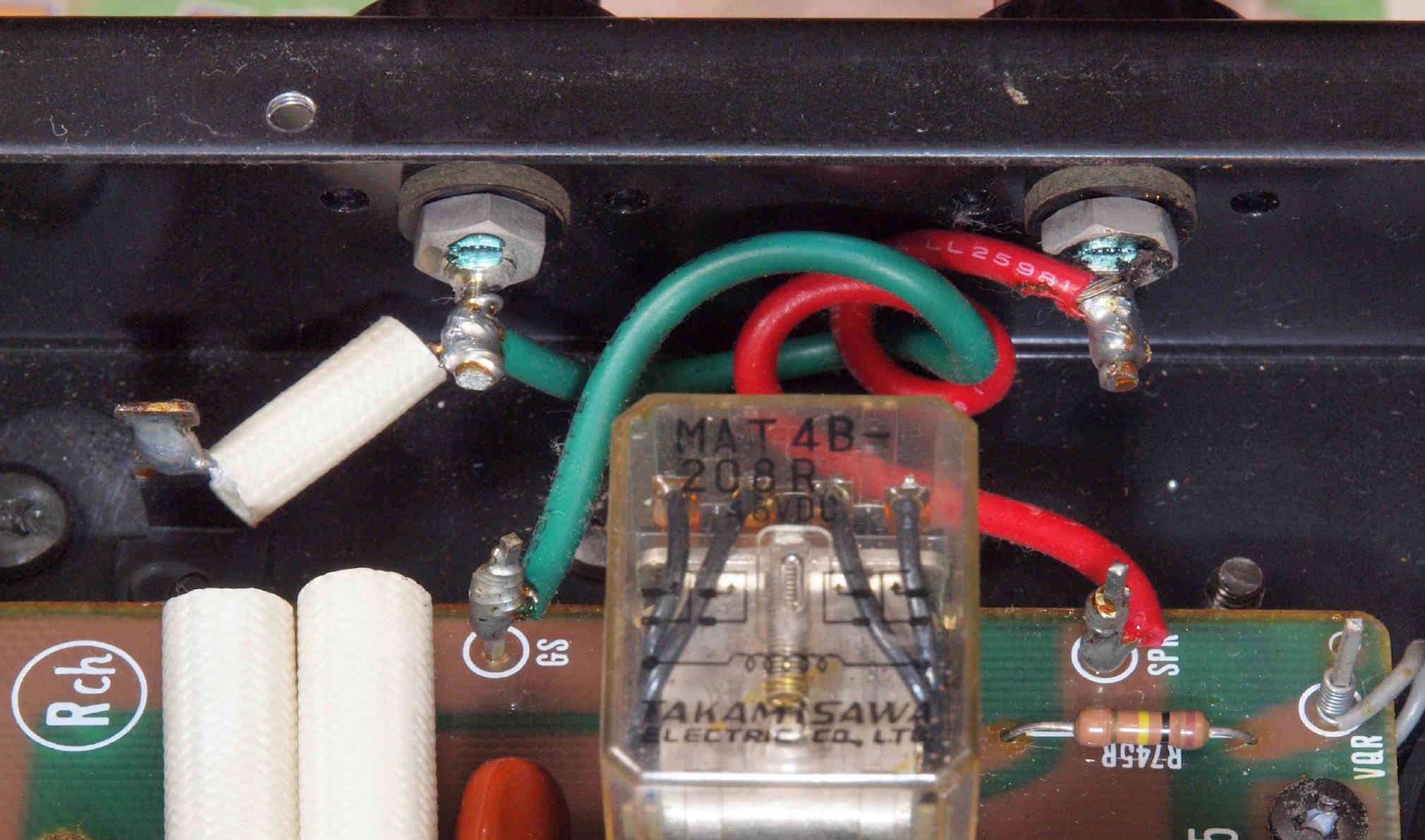 | C75. 修理後 R−SP端子裏配線、WBTのネジ止めを生かし、ネジ止め接続+半田接続のW配線にした。理由はこちら |