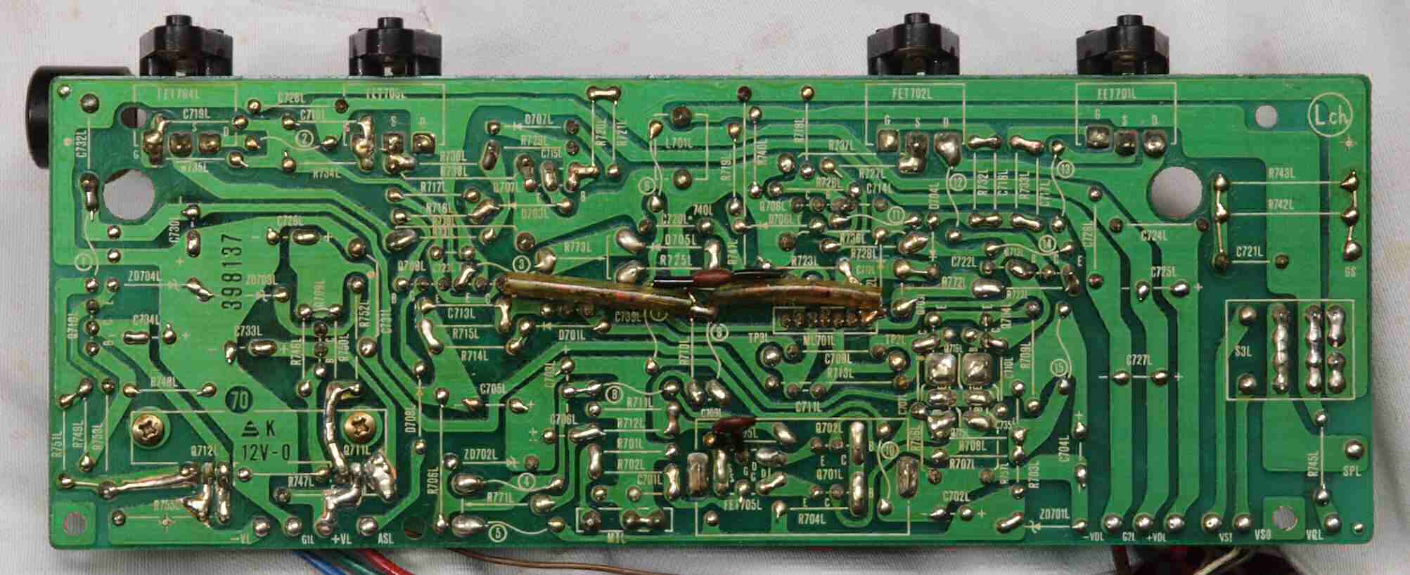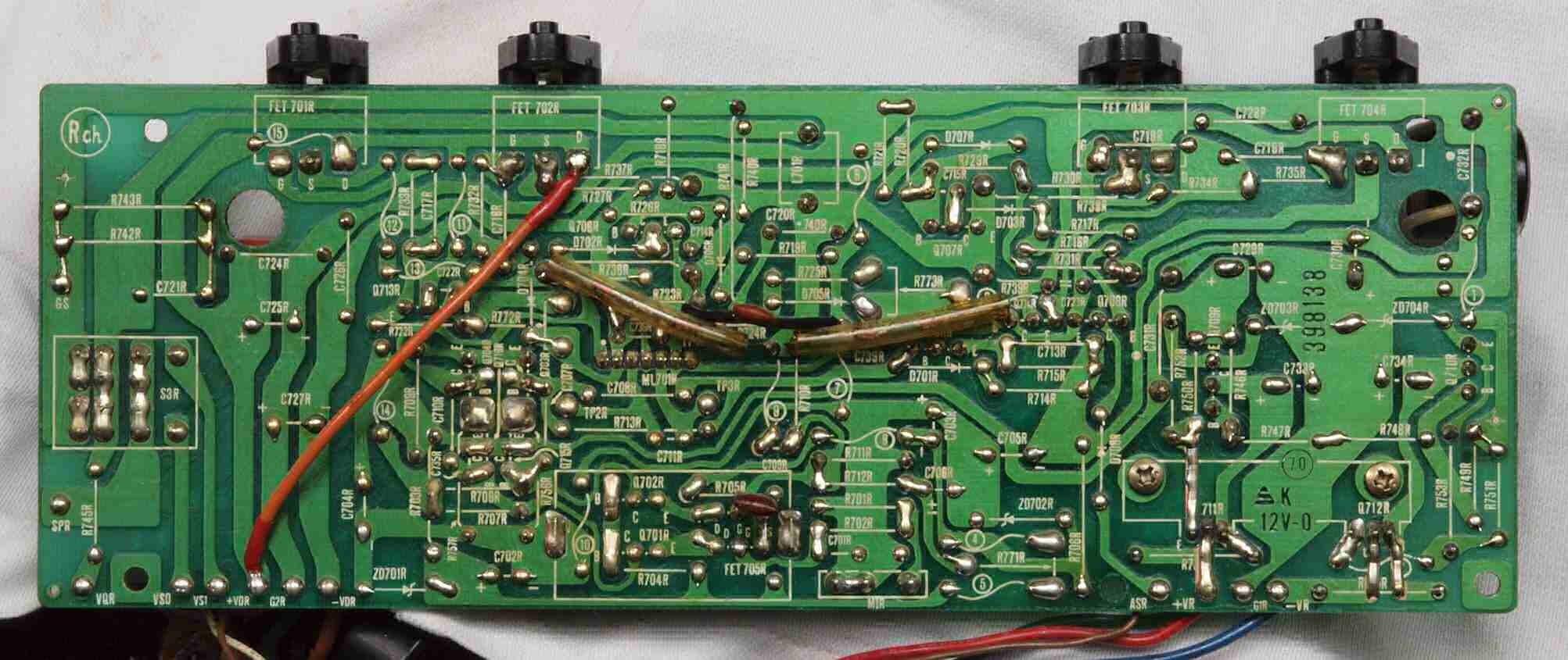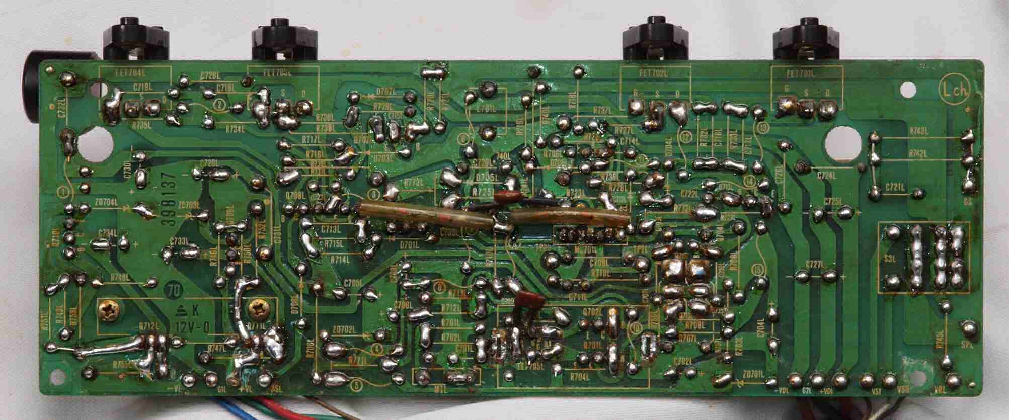 | C15. 修理(半田補正)後 R側ドライブ基板裏 半田を全部やり直す。 普通はこれで完成。 |