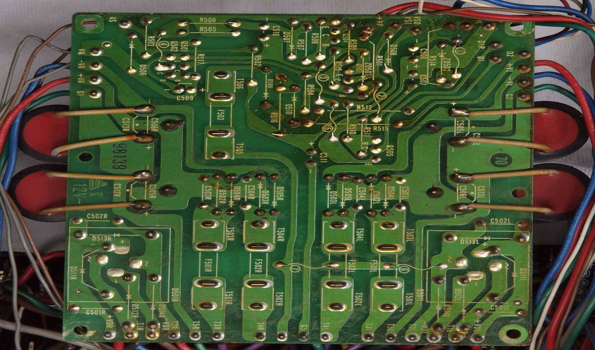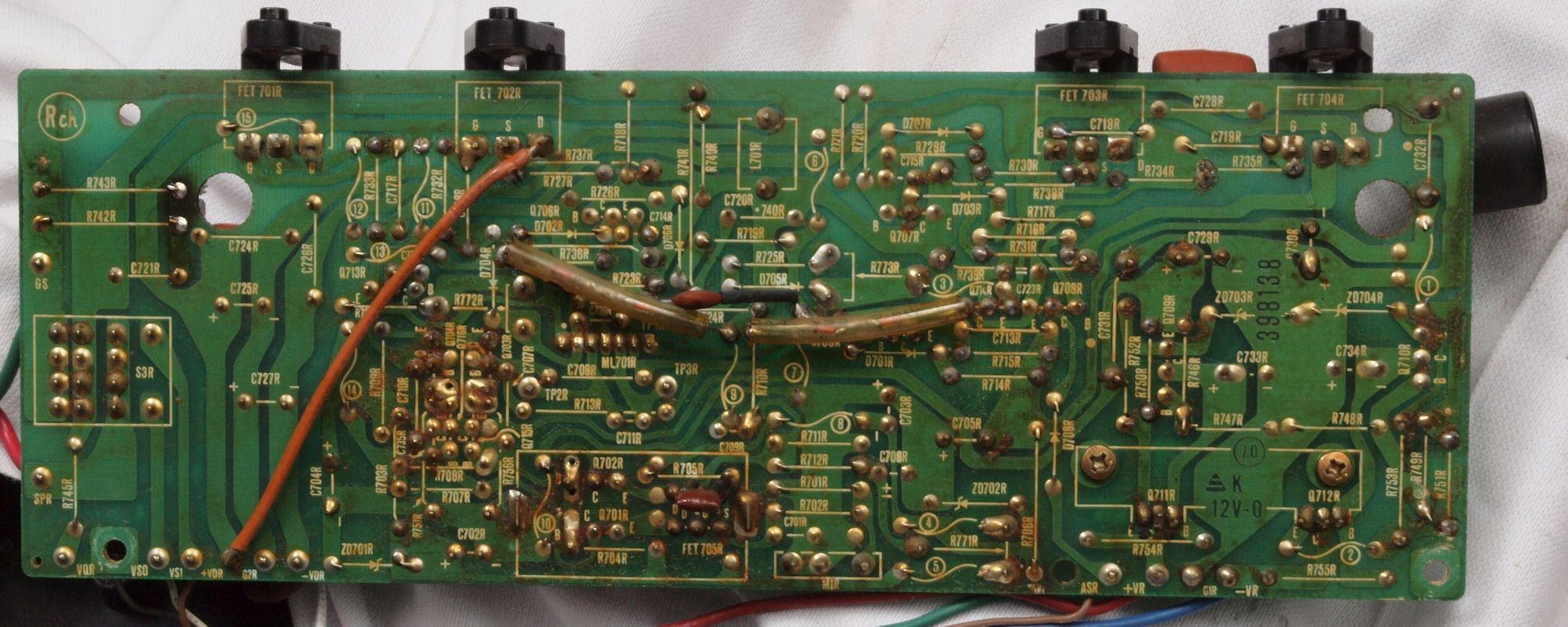 | C43. 修理後 RLモジュール裏。 TR(トランジスター)交換後軽くラッカーを吹きました。 |