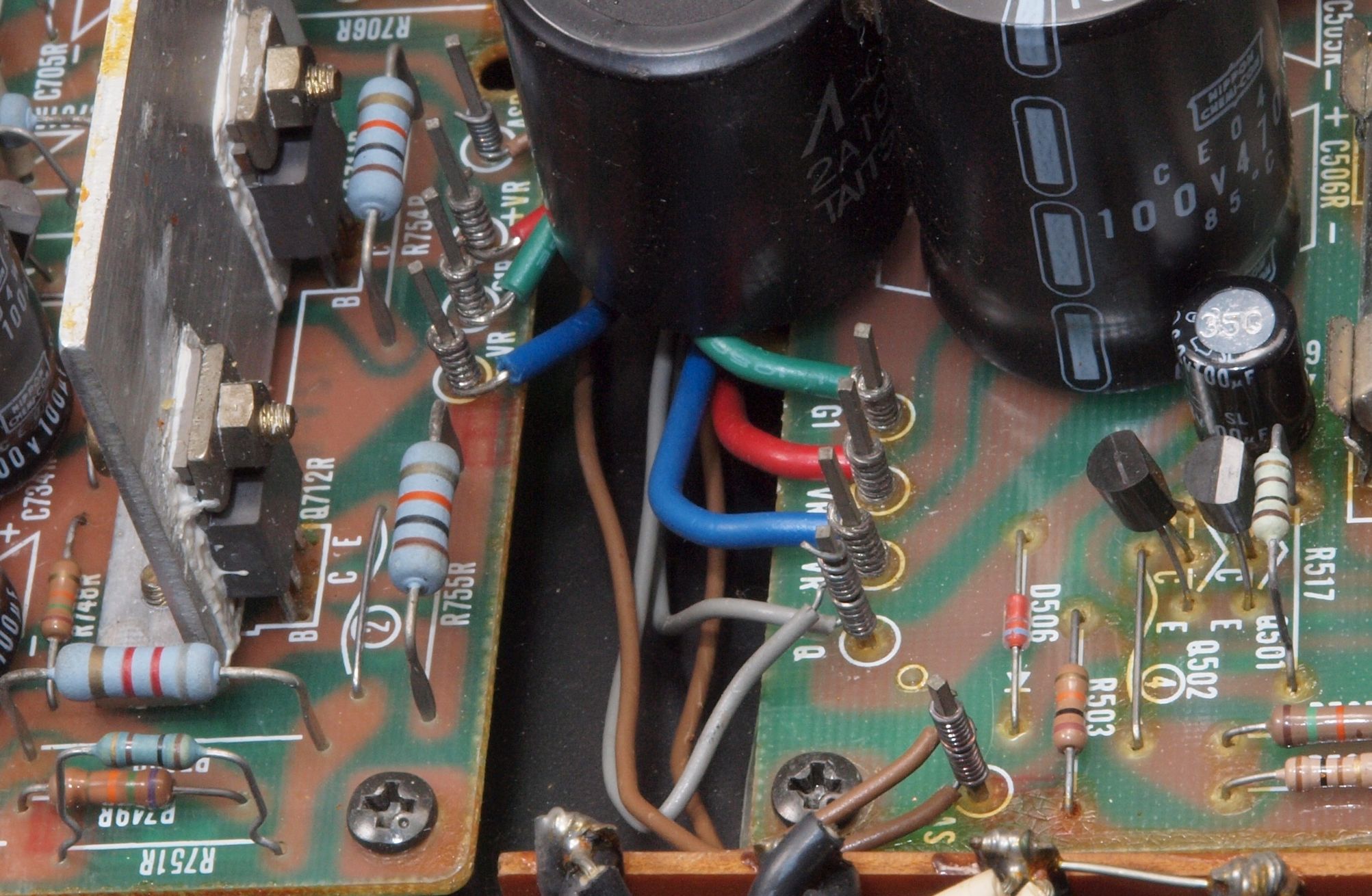 | CA5. 修理前 R側ドライブ基板−電源基板へのラッピング線 |