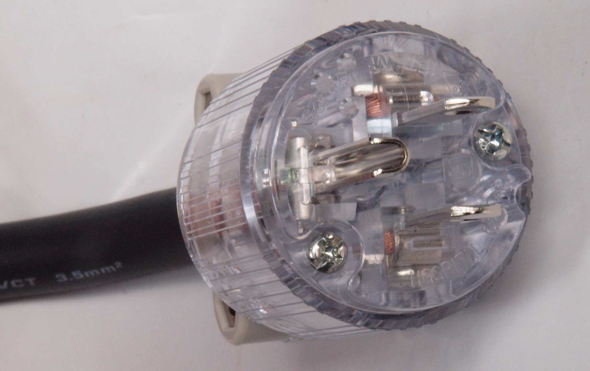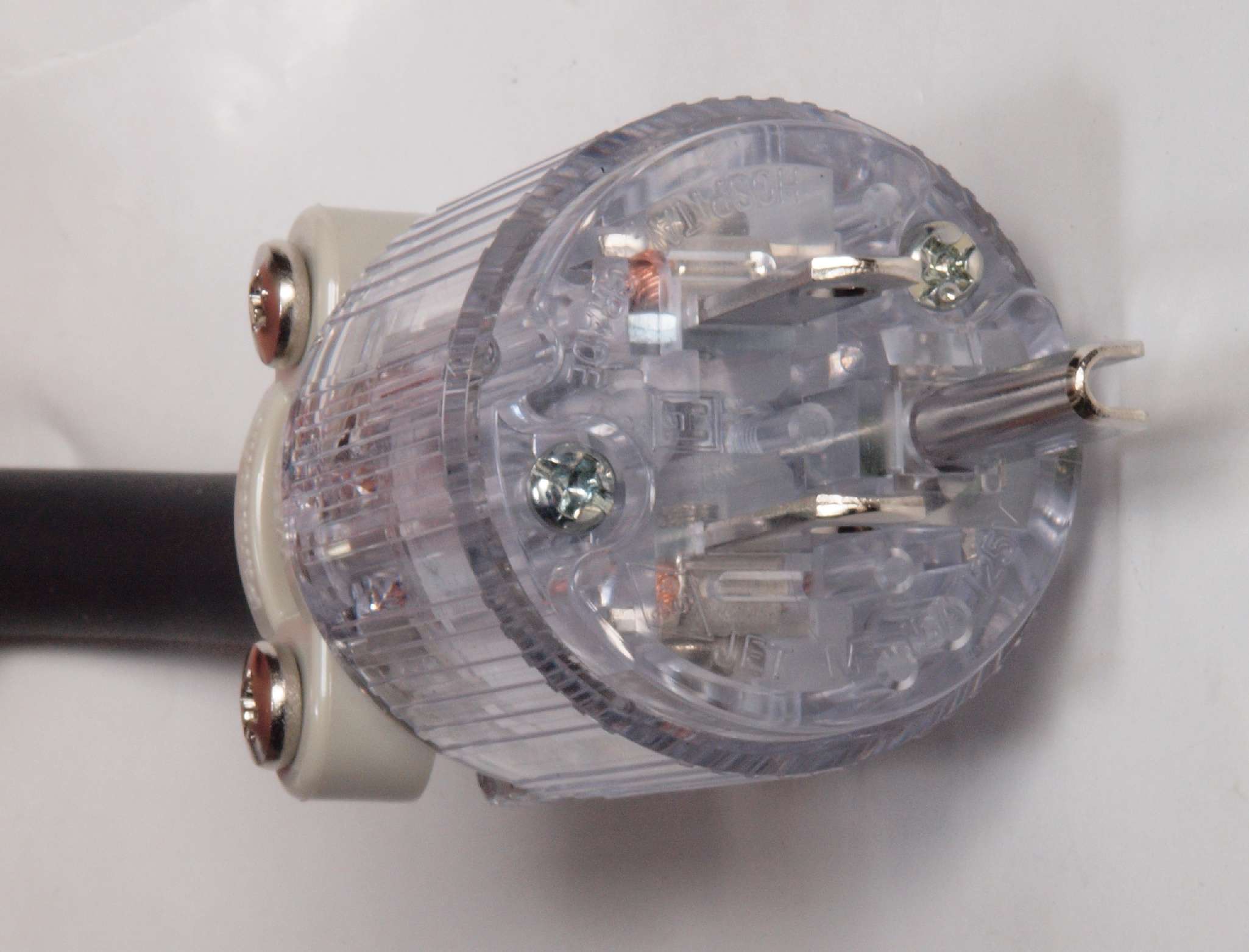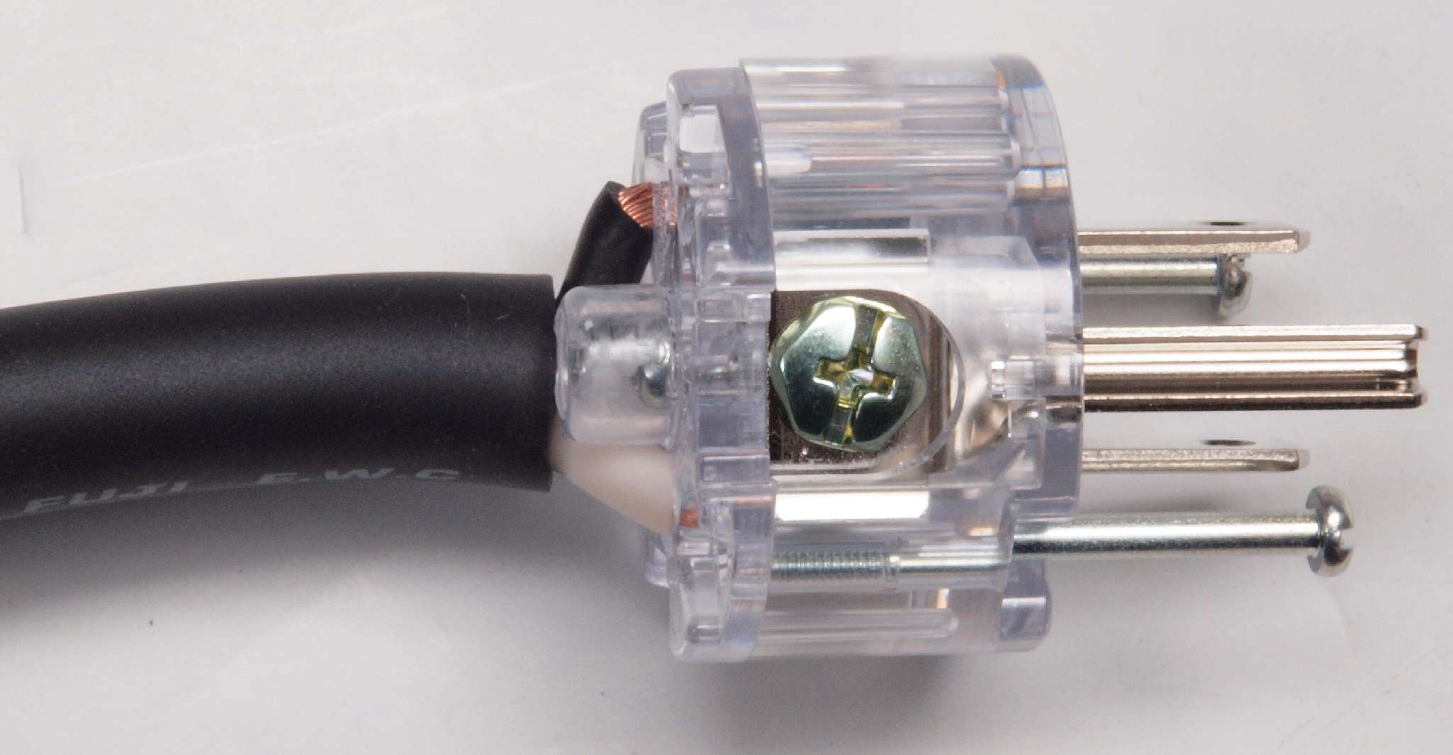 | C9E. 完成 3Pプラグにケーブル取り付。 奥までしっかり芯線が入っている。 |