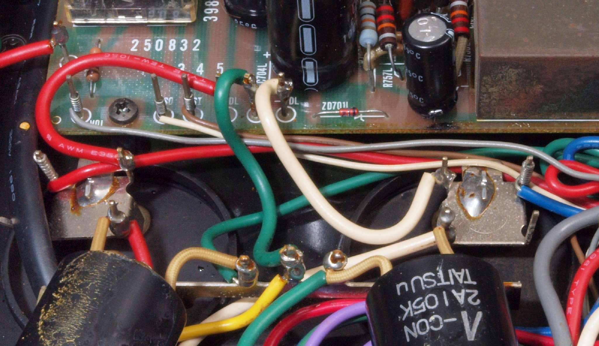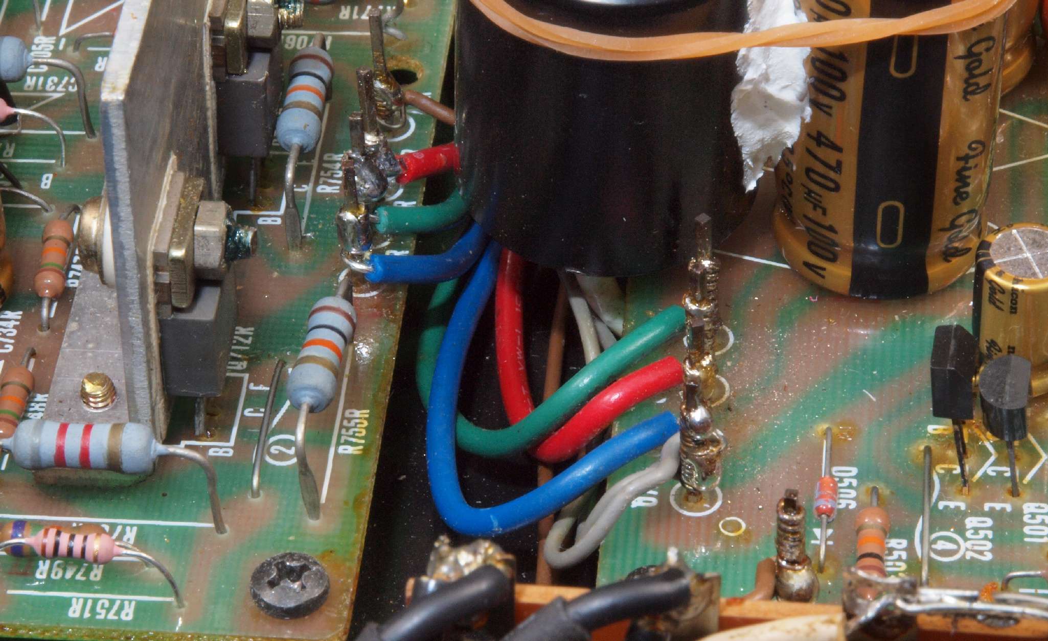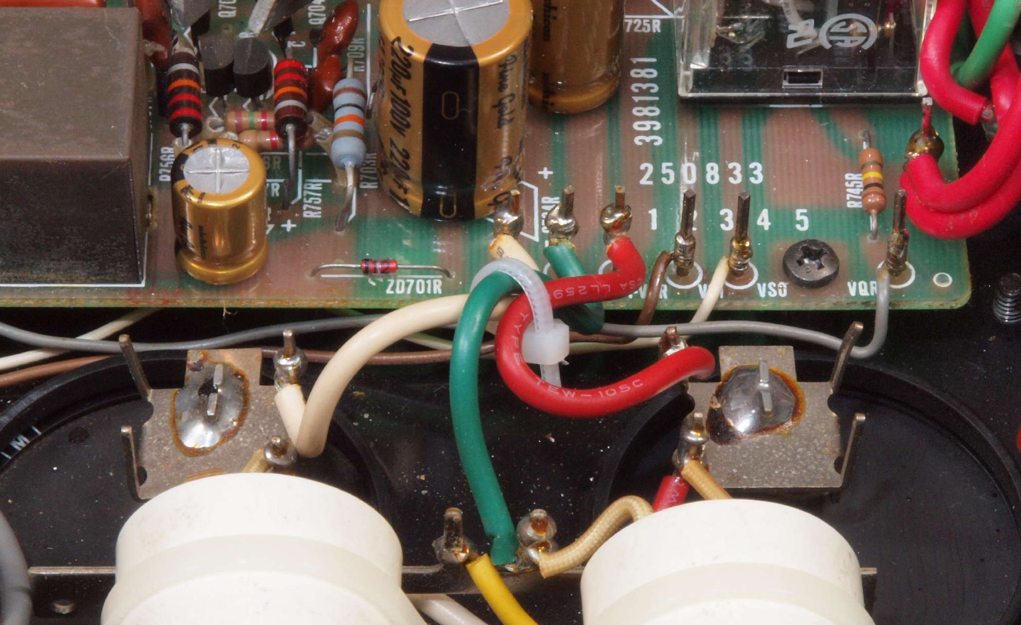 | CA5. 修理前 R側ドライブ基板−電源基板へのラッピング線 |