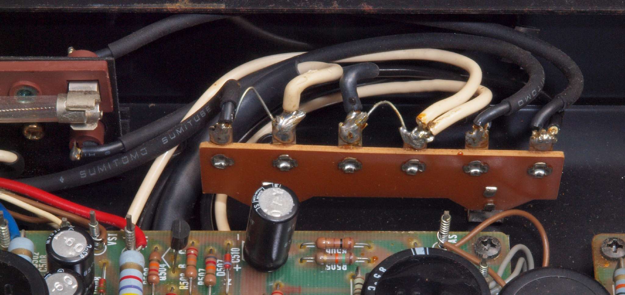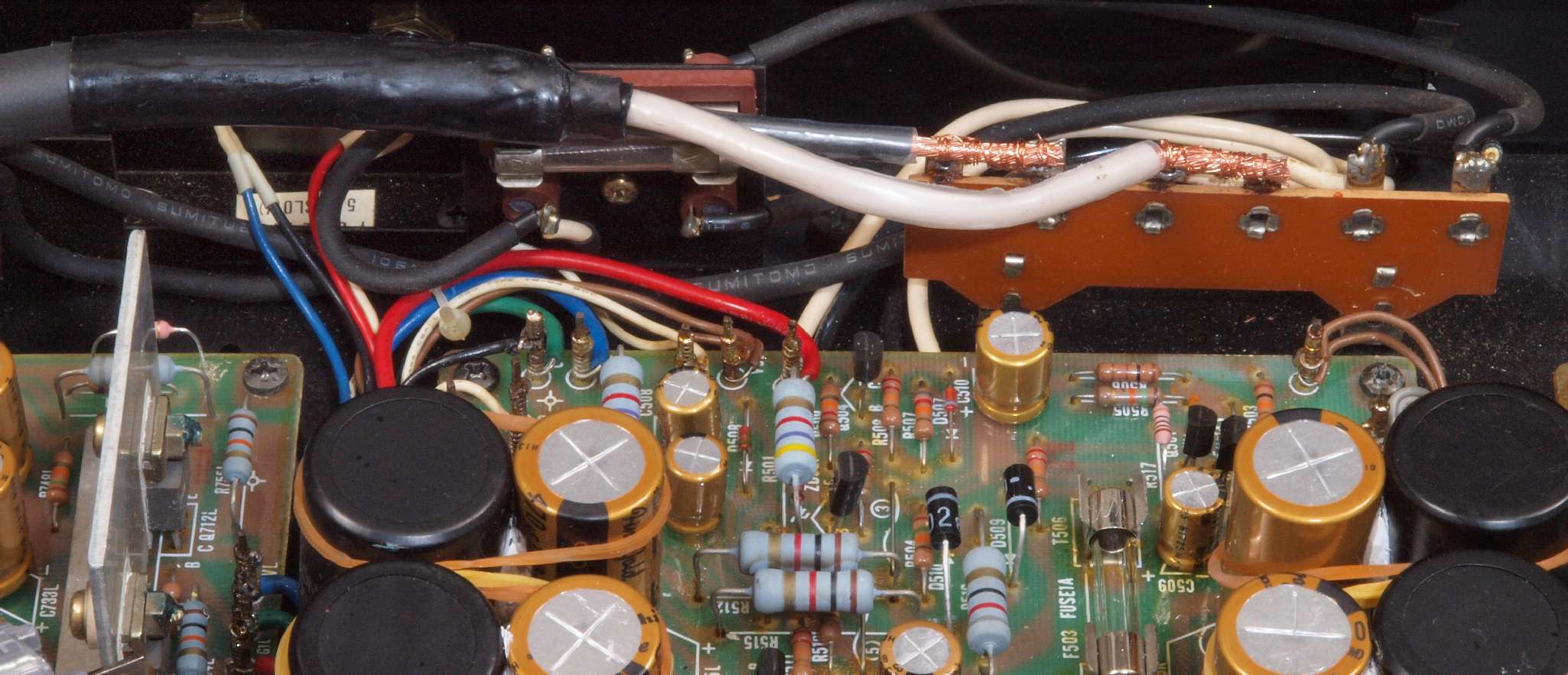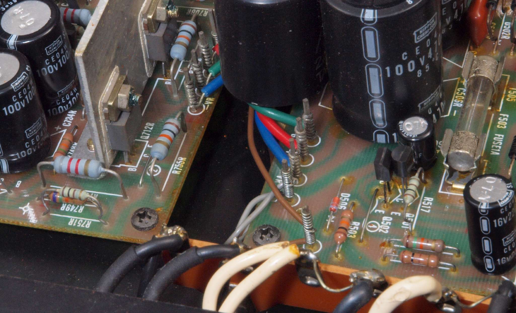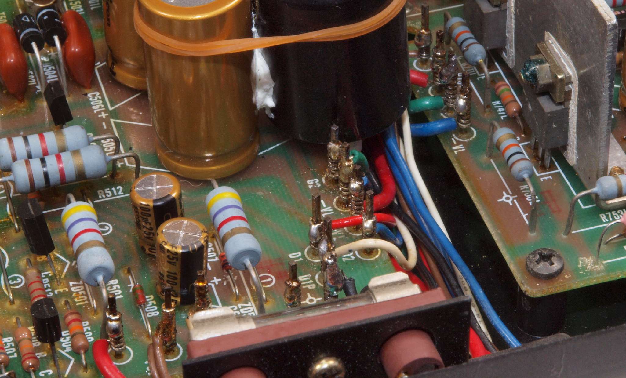 | CA5. 修理前 R側ドライブ基板−電源基板へのラッピング線 |