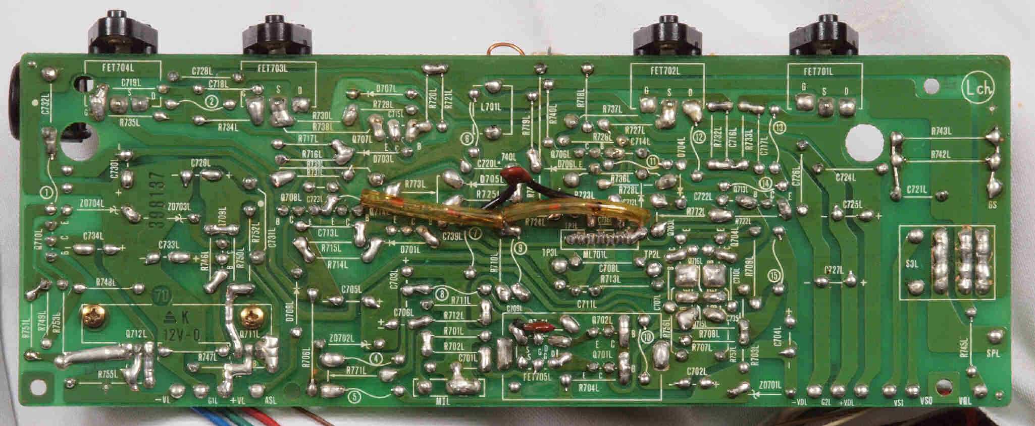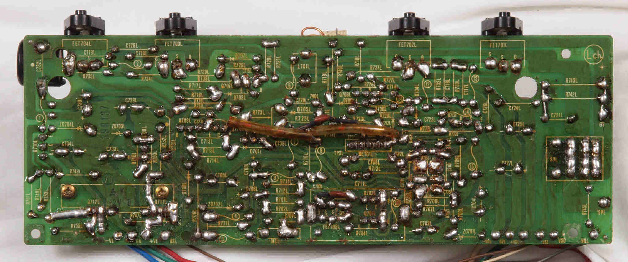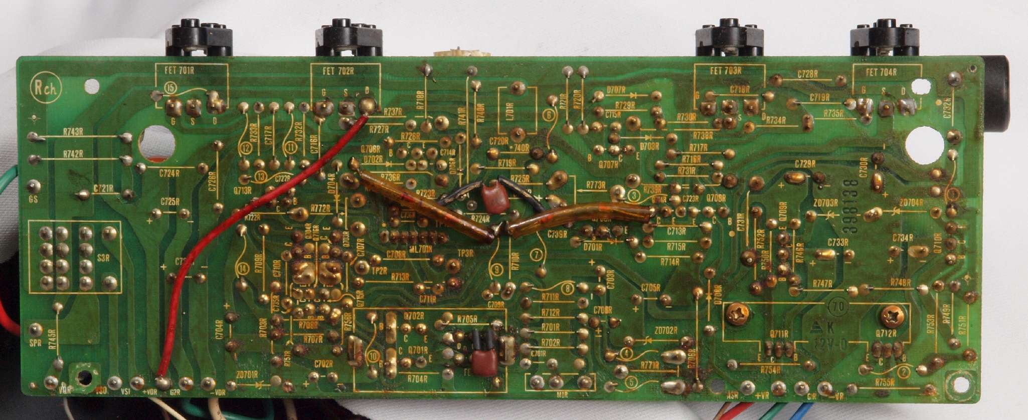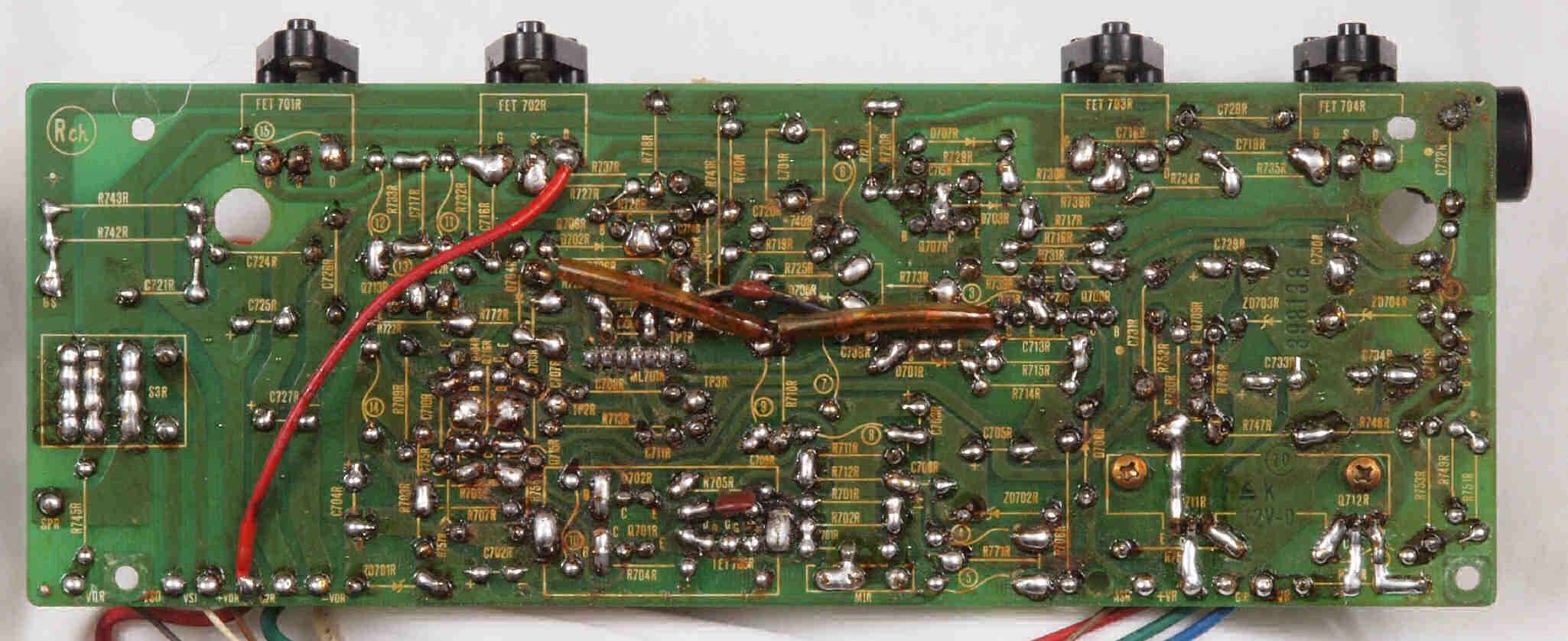 | C15. 修理(半田補正)後 R側ドライブ基板裏 半田を全部やり直す。 普通はこれで完成。 |