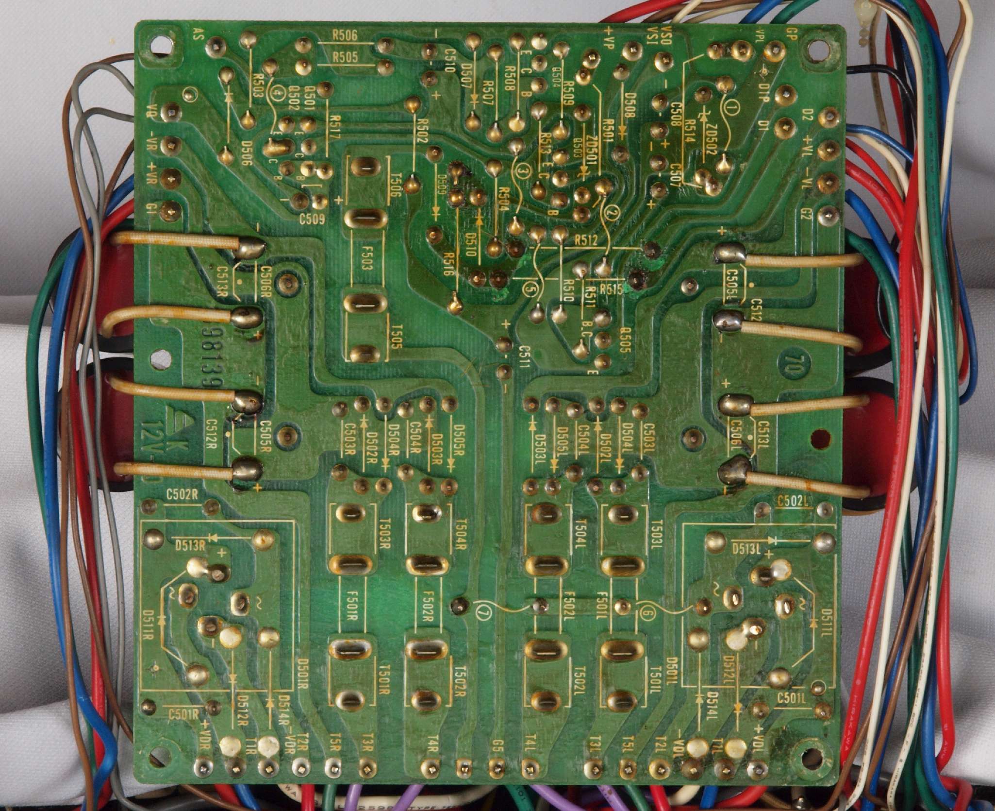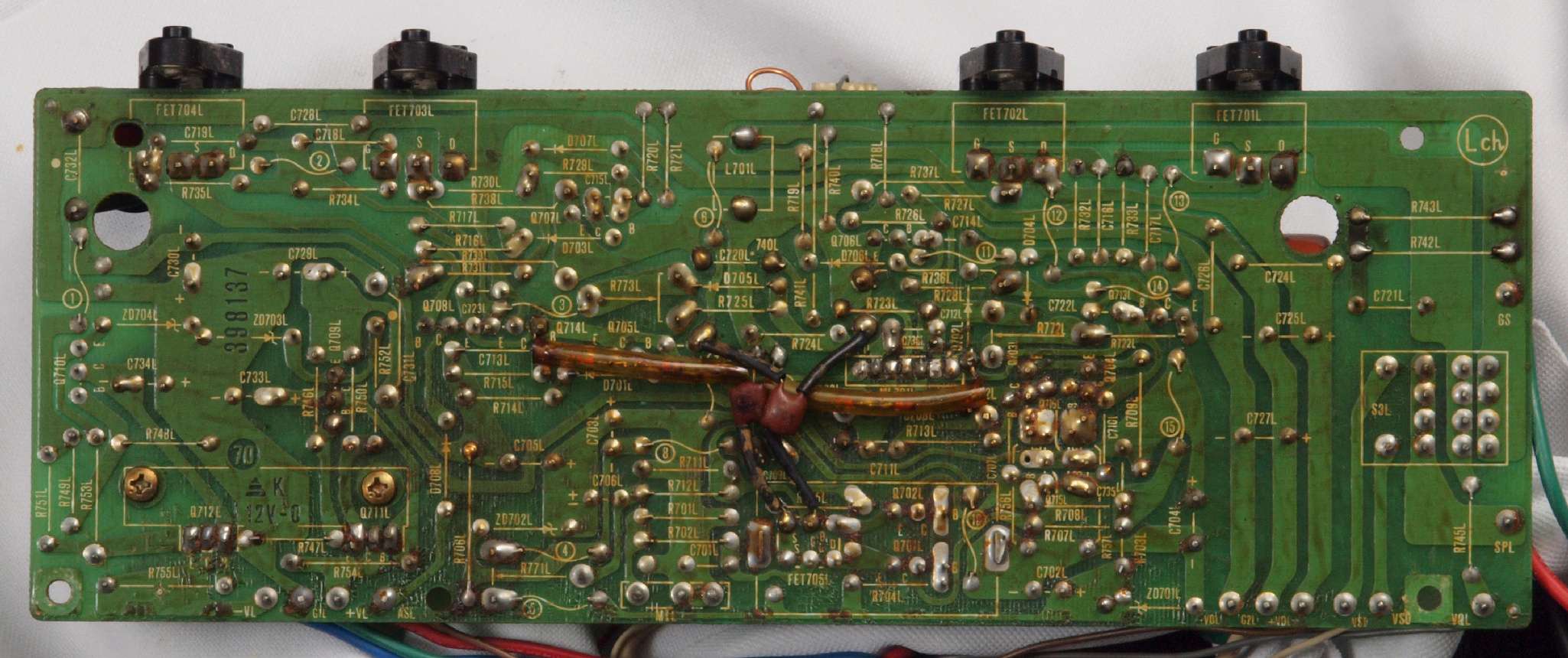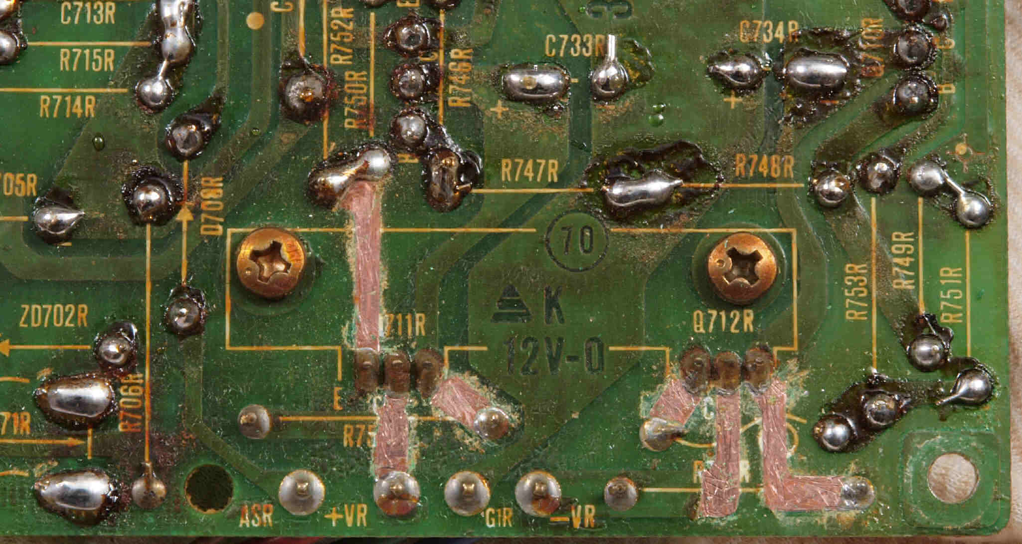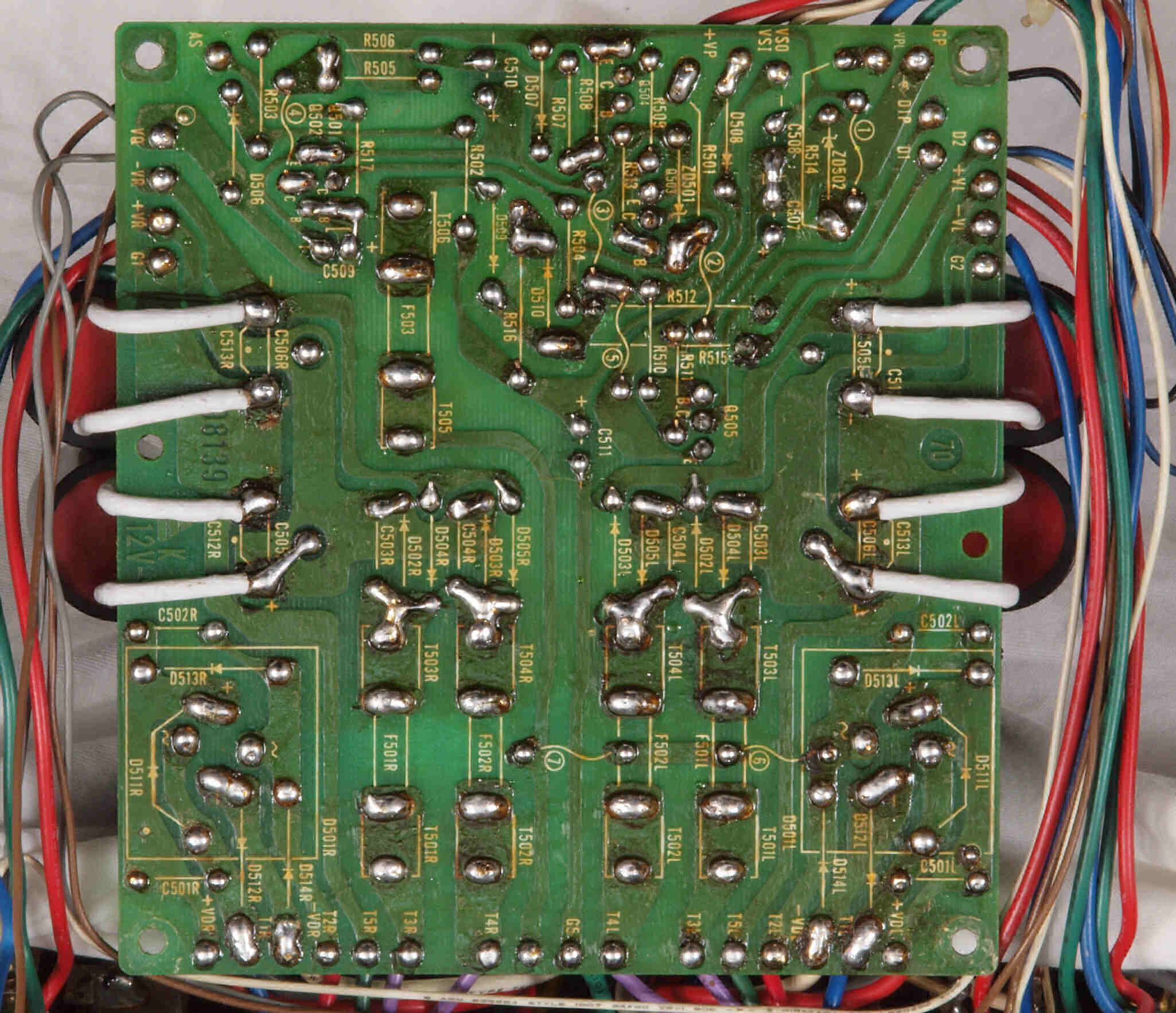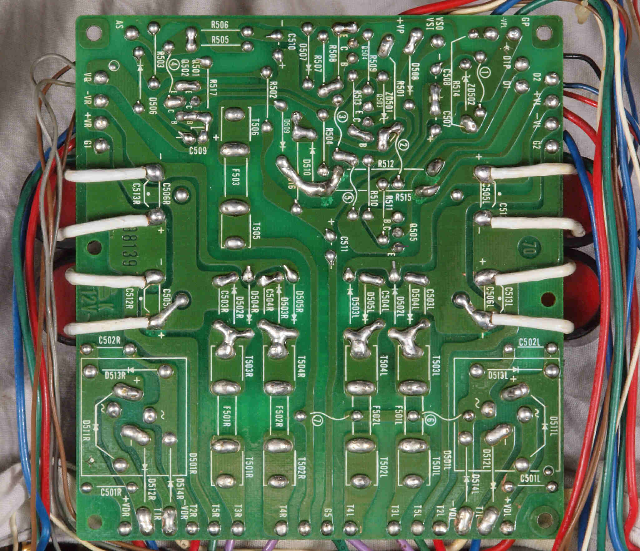 | C15. 修理(半田補正)後 R側ドライブ基板裏 半田を全部やり直す。 普通はこれで完成。 |