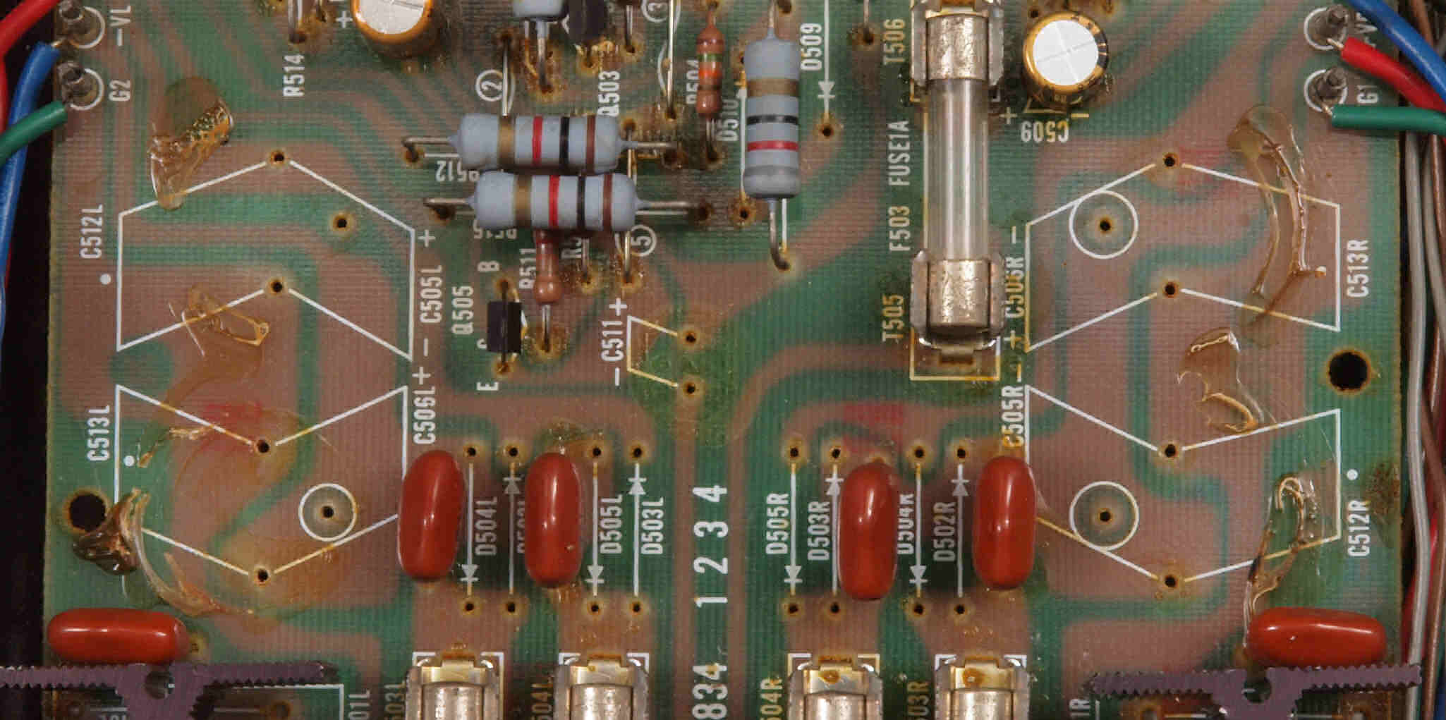 | C67. 修理前 入力RCA端子基板裏 |