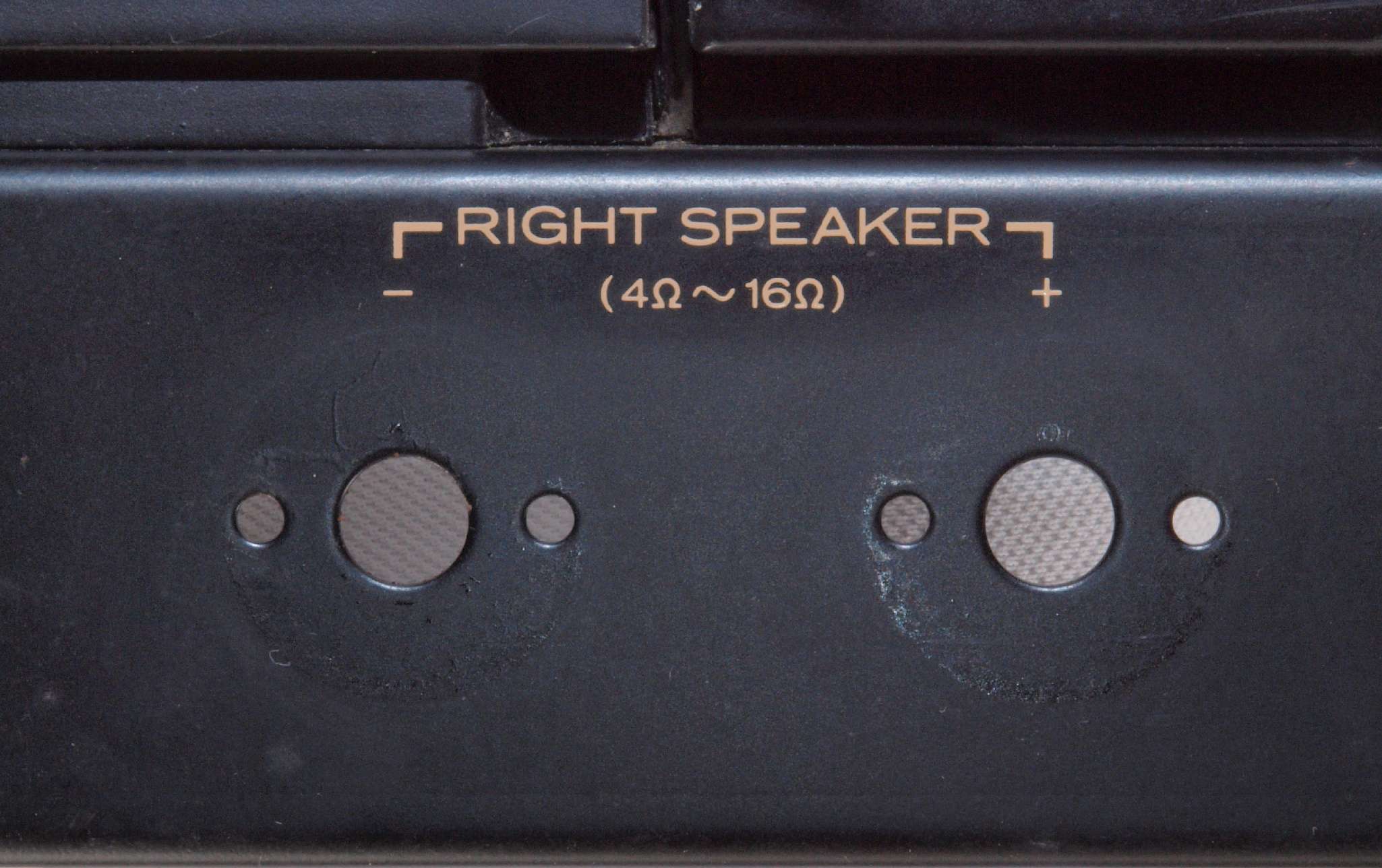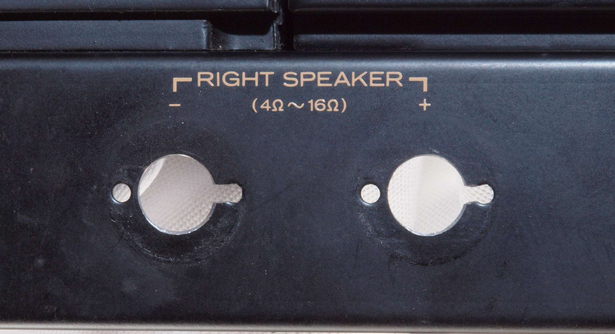 | C76. 修理後 R−SP端子裏配線。 WBTのネジ止めを生かし、ネジ止め接続+半田接続のW配線にした。理由はこちら |