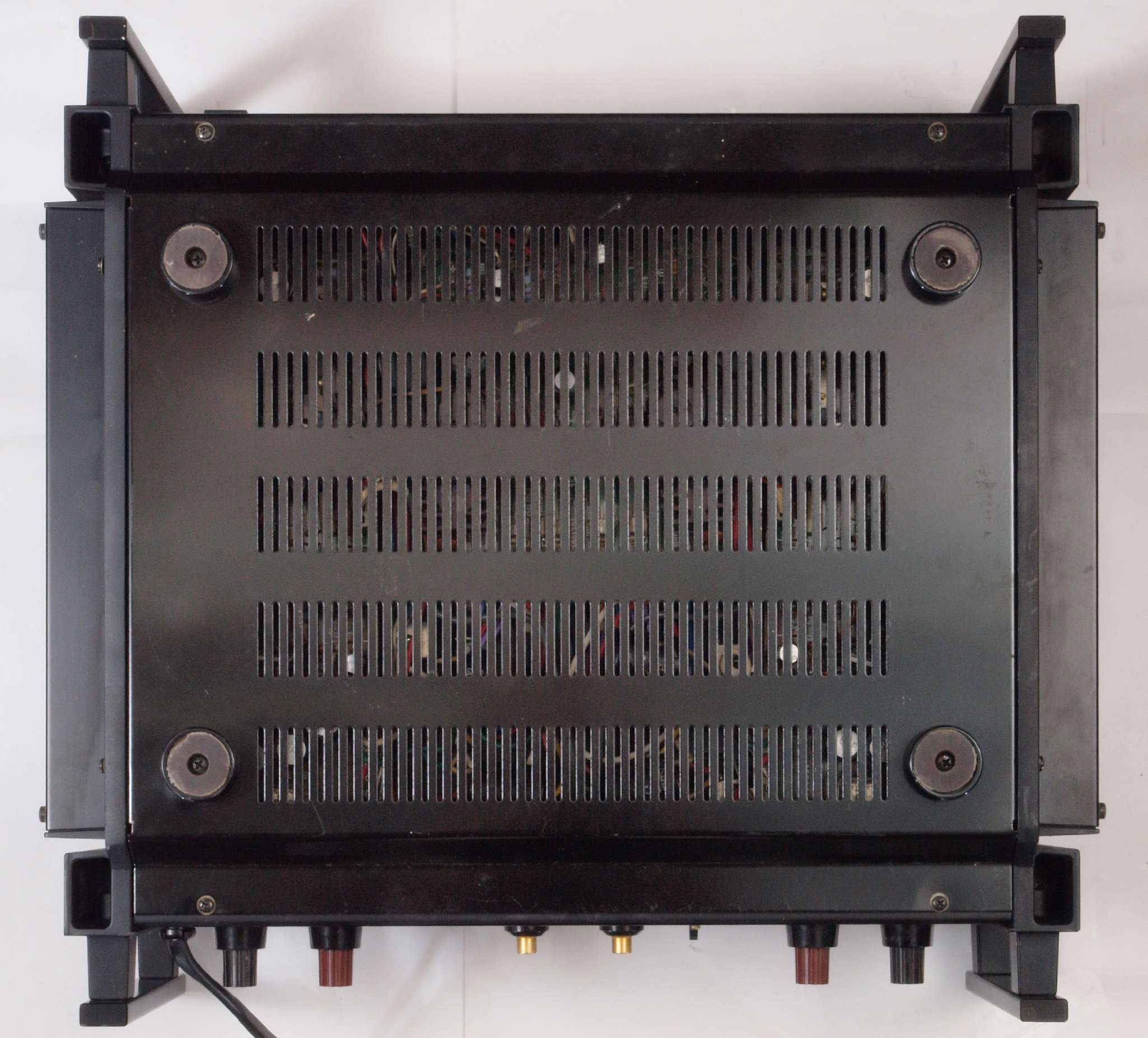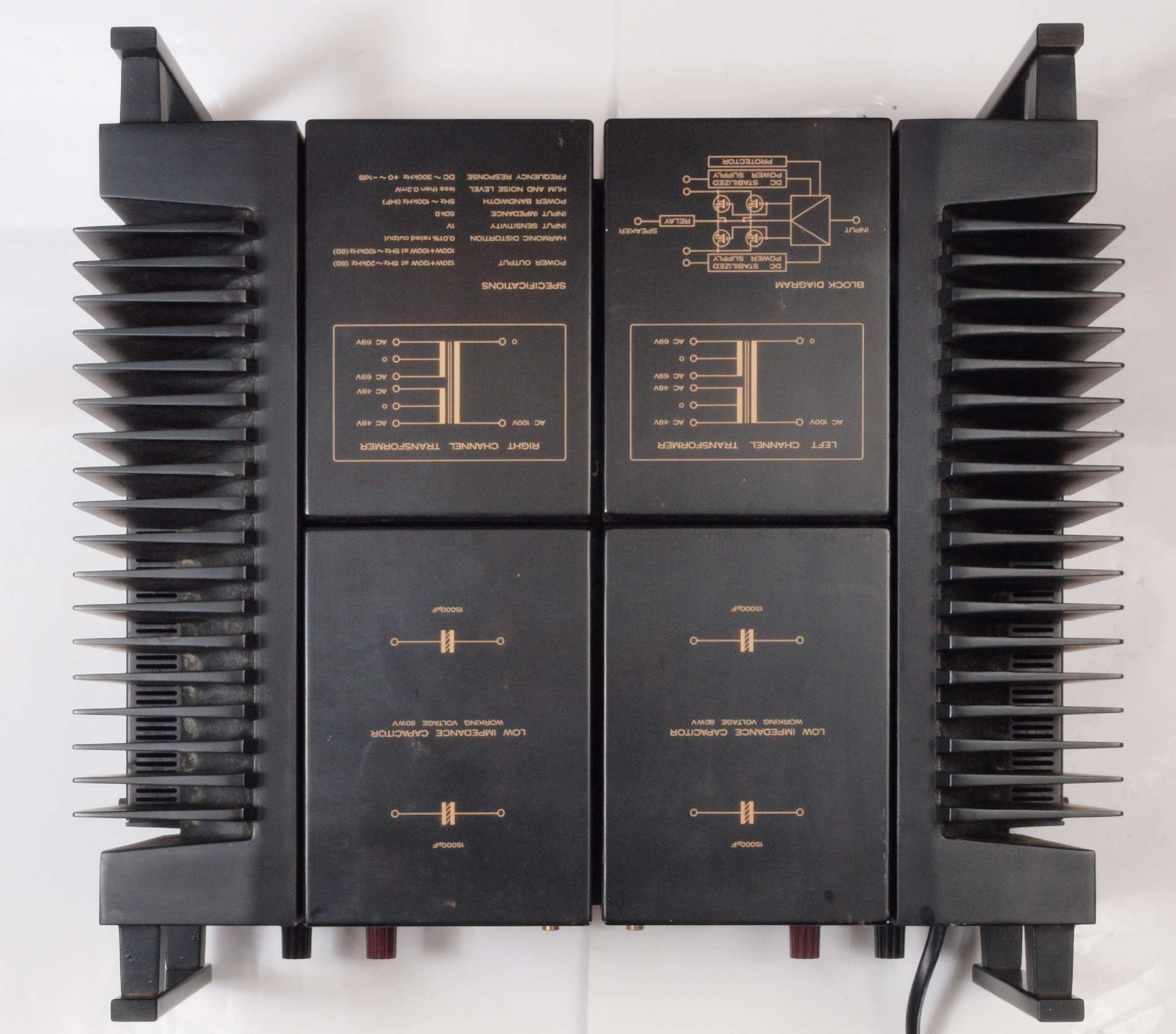 | 注意 このAMPはアースラインが浮いています。 AMPのシャーシにSPの線(アース側)やプリAMPのアースもも接続してはいけません。 RL−SPのアース線も接続(共通)してもいけません、+−の撚りのあるのも使用出来ません。 又、DC(directconnection)入力が可能ですが、絶対に使用しないこと=ここ参照 |