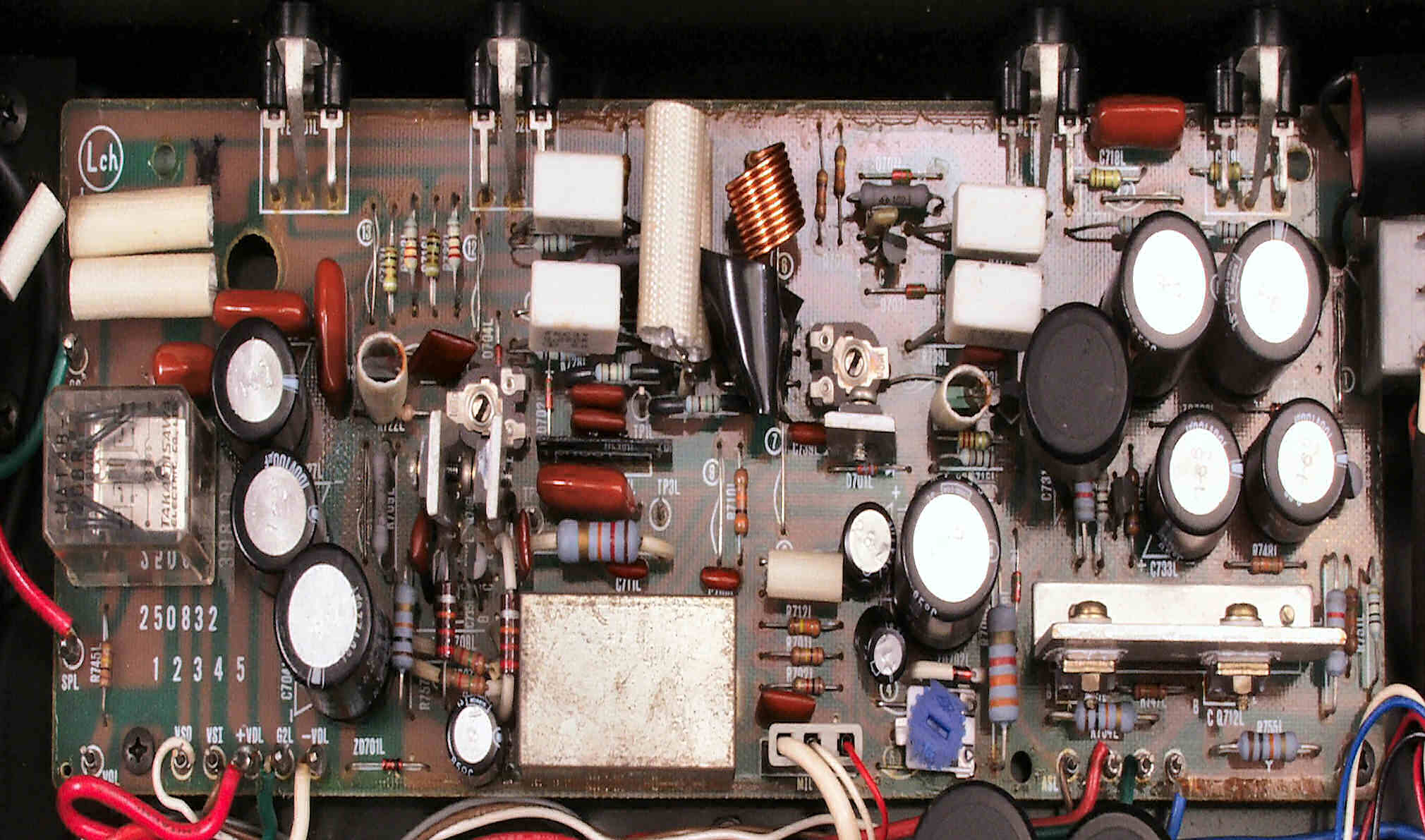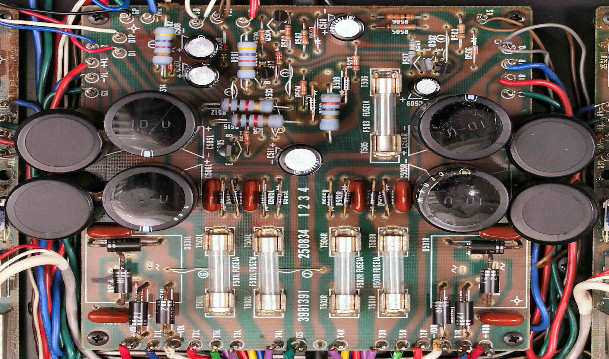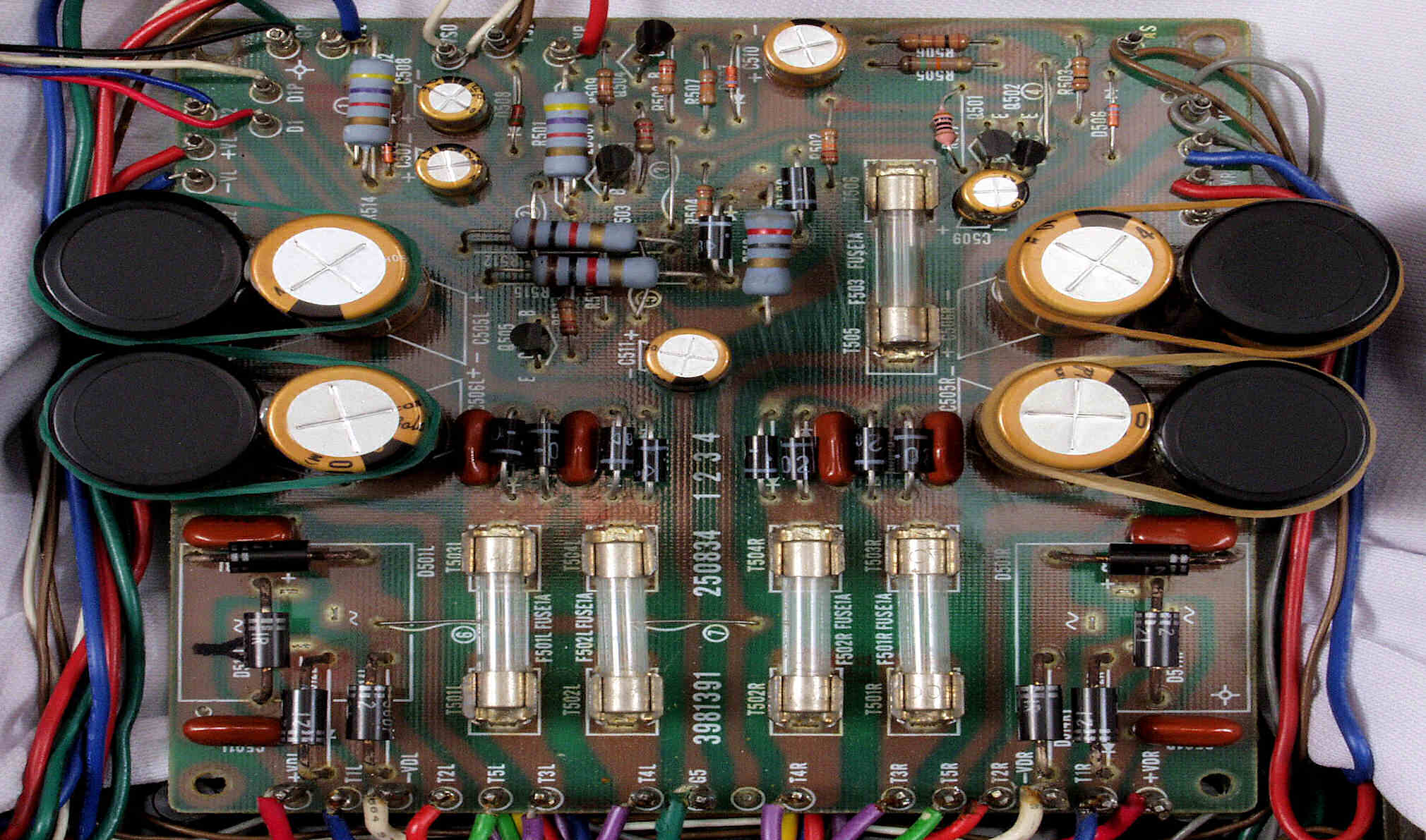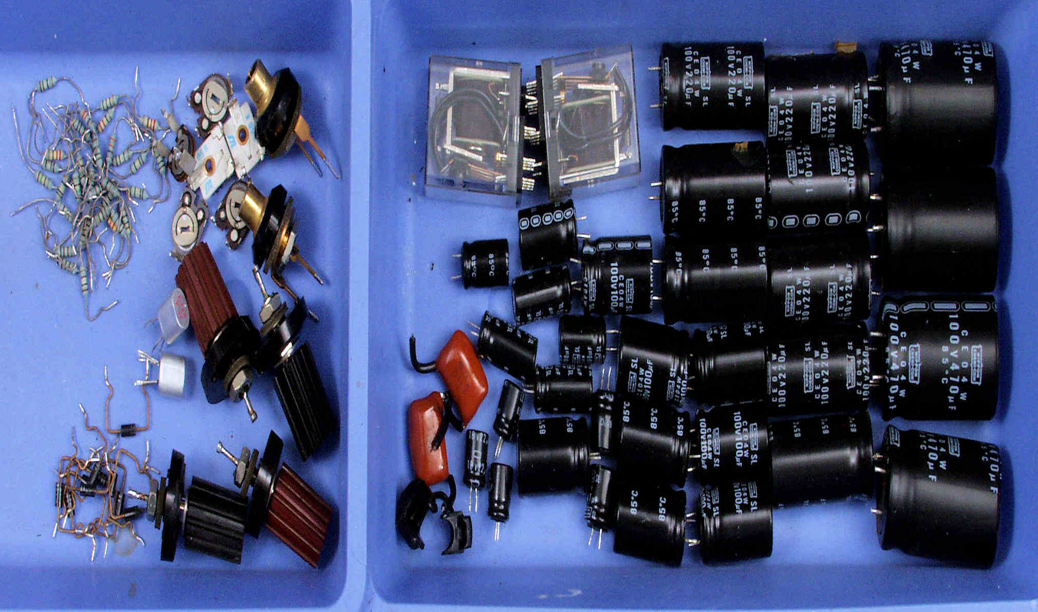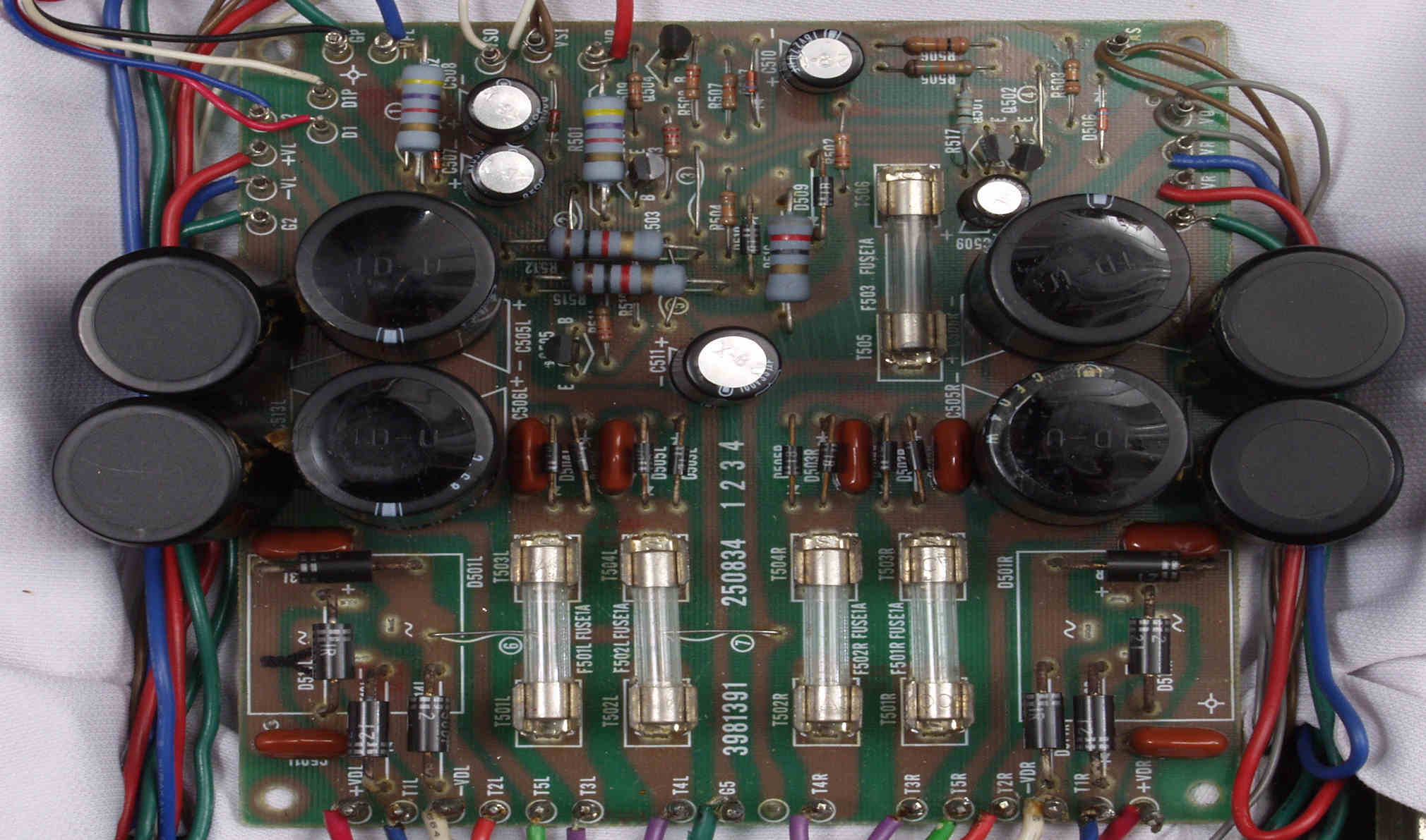 フューズ入り抵抗全部、電解コンデンサー11個交換