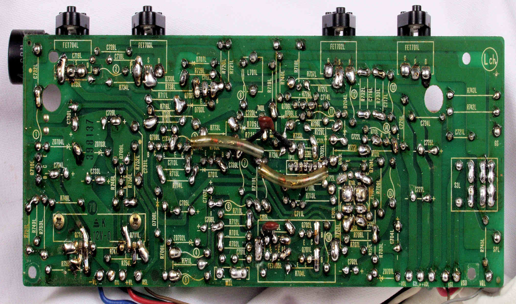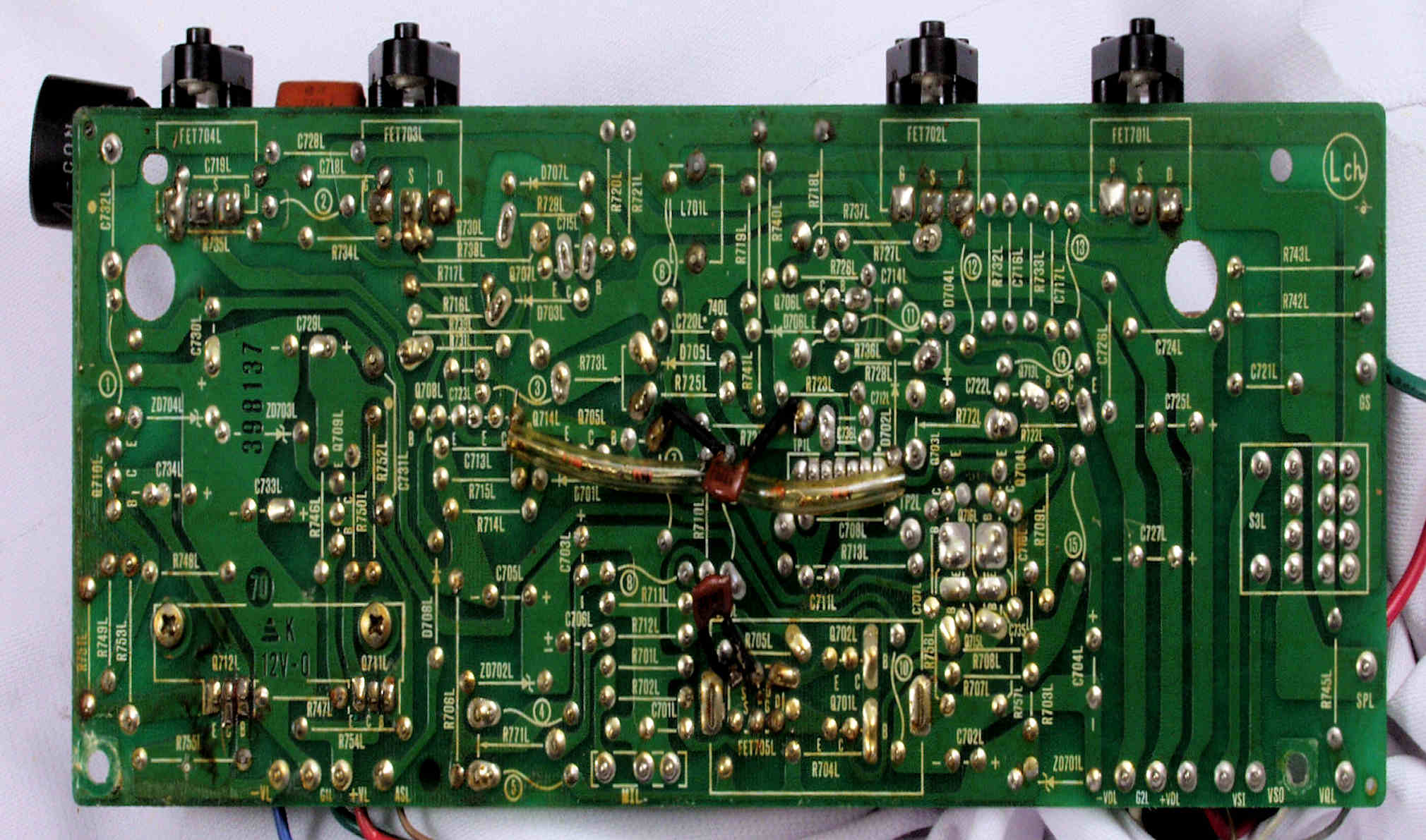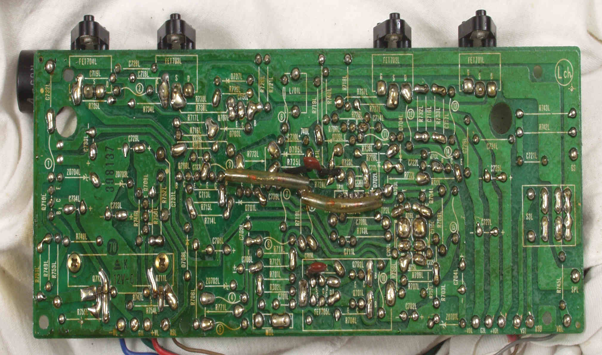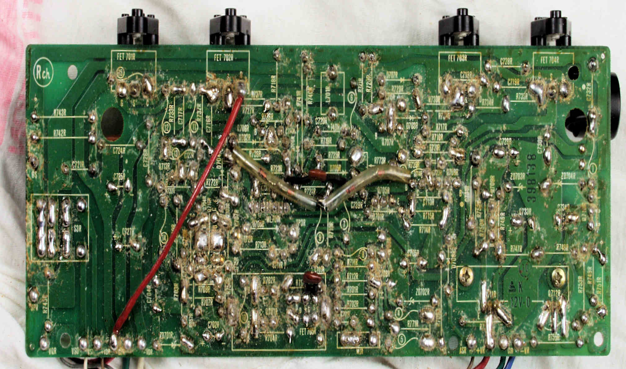 C14. 修理(半田補正)後 R側ドライブ基板裏 半田を全部やり直す 普通はこれで完成