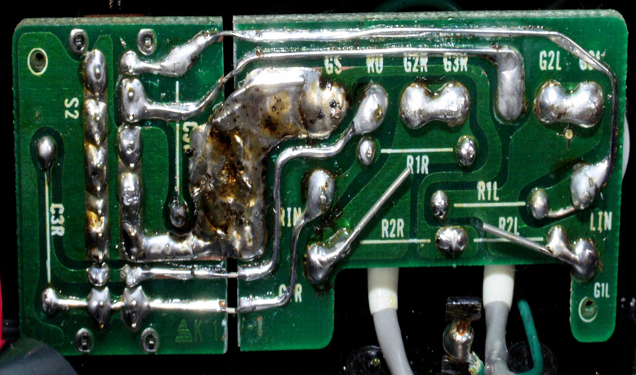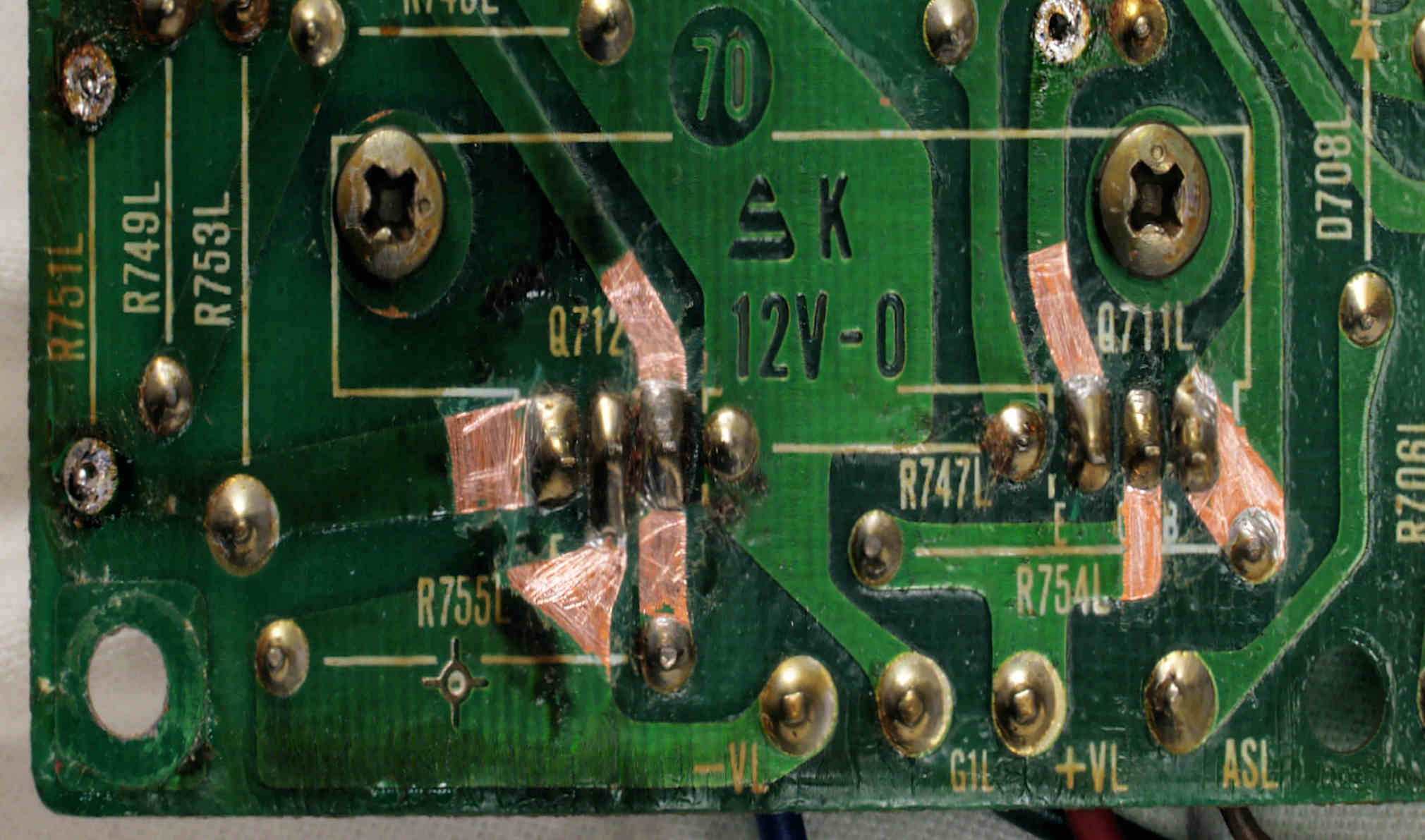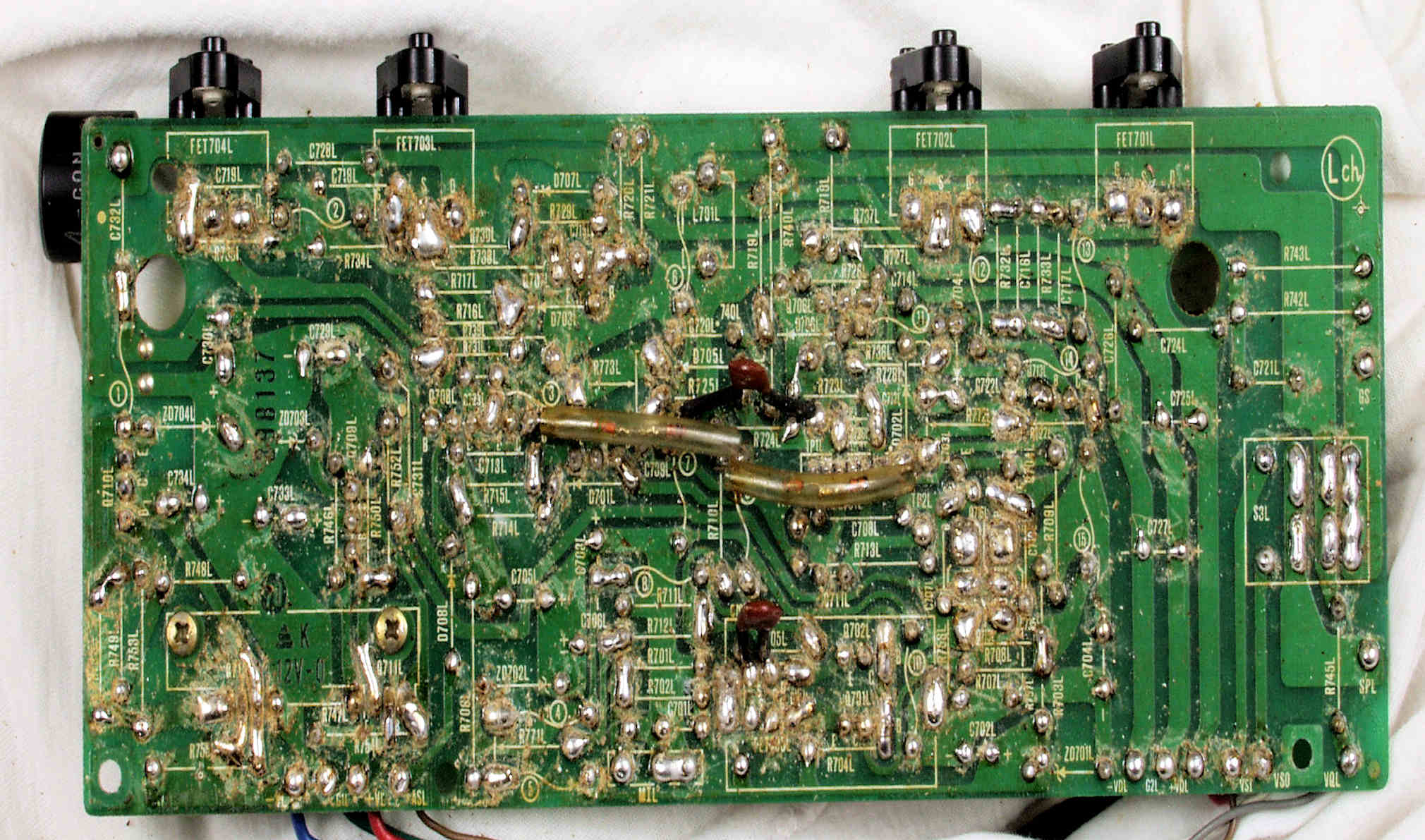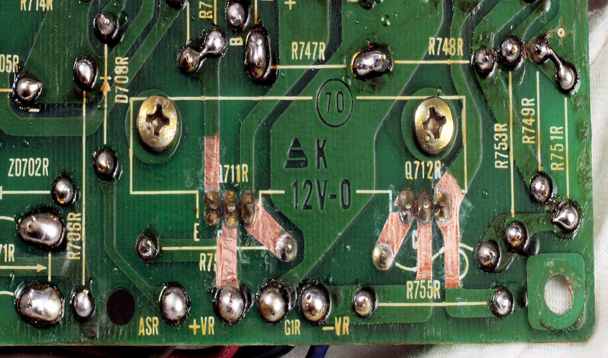C14. 修理(半田補正)後 R側ドライブ基板裏 半田を全部やり直す 普通はこれで完成