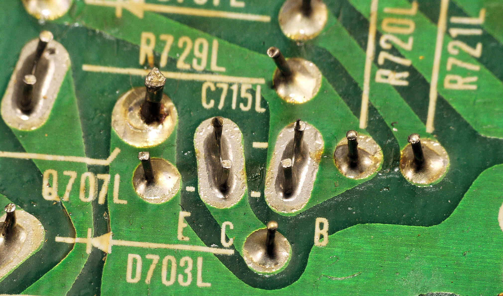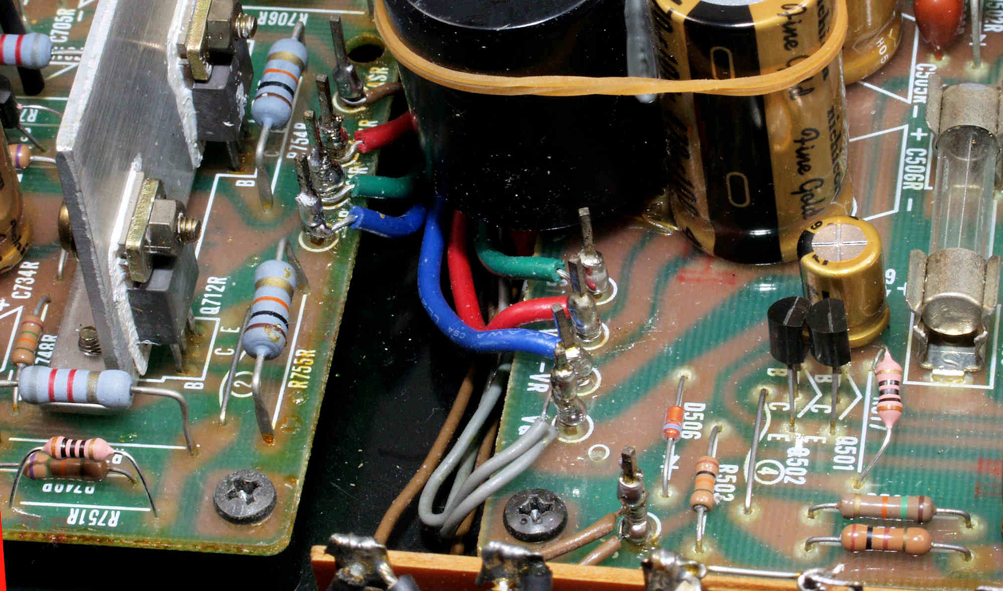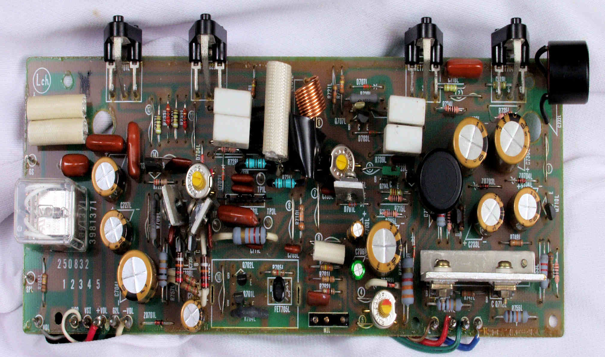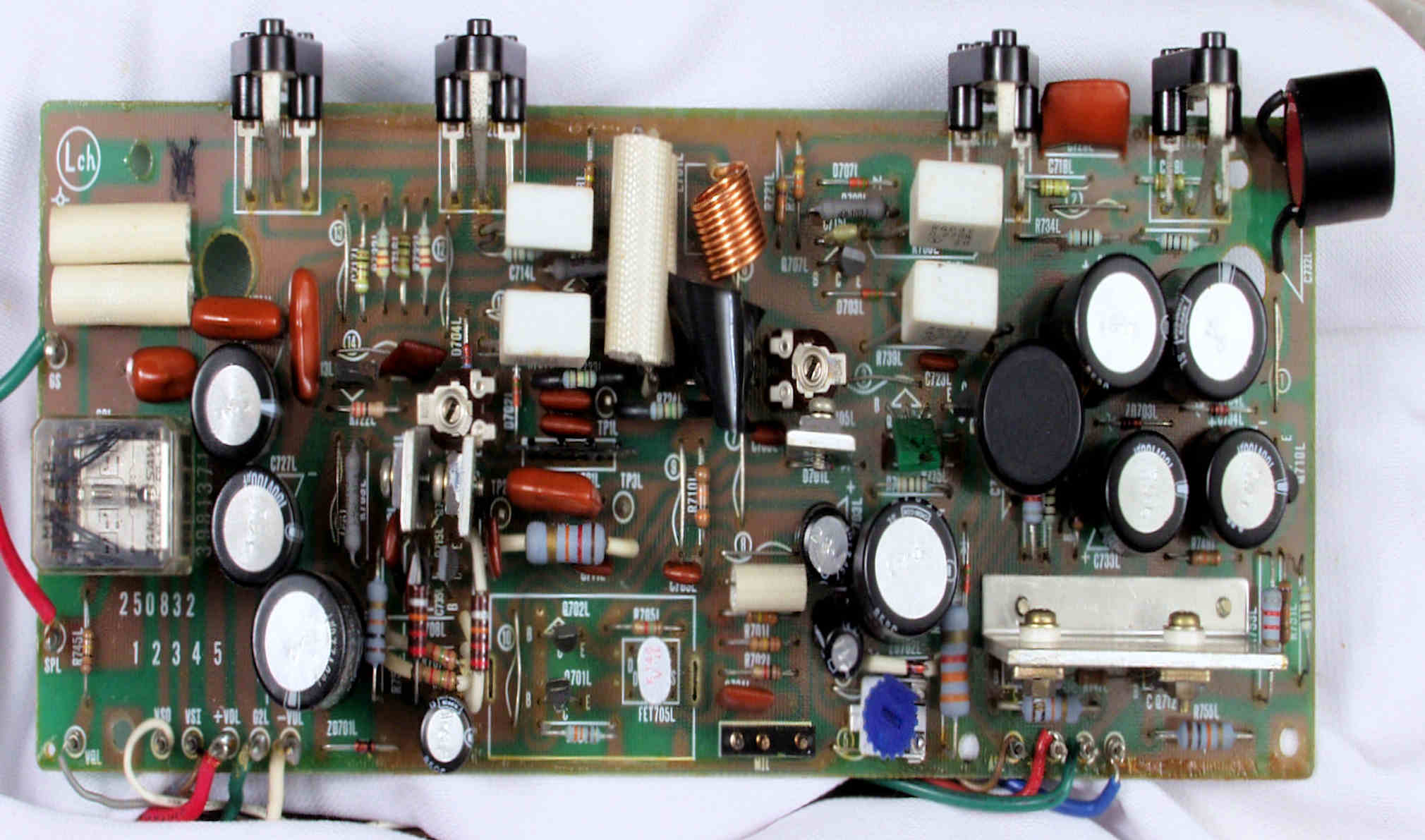 FET(電界効果トランジスター)の足の穴が小さいので修理歴無と思われる。