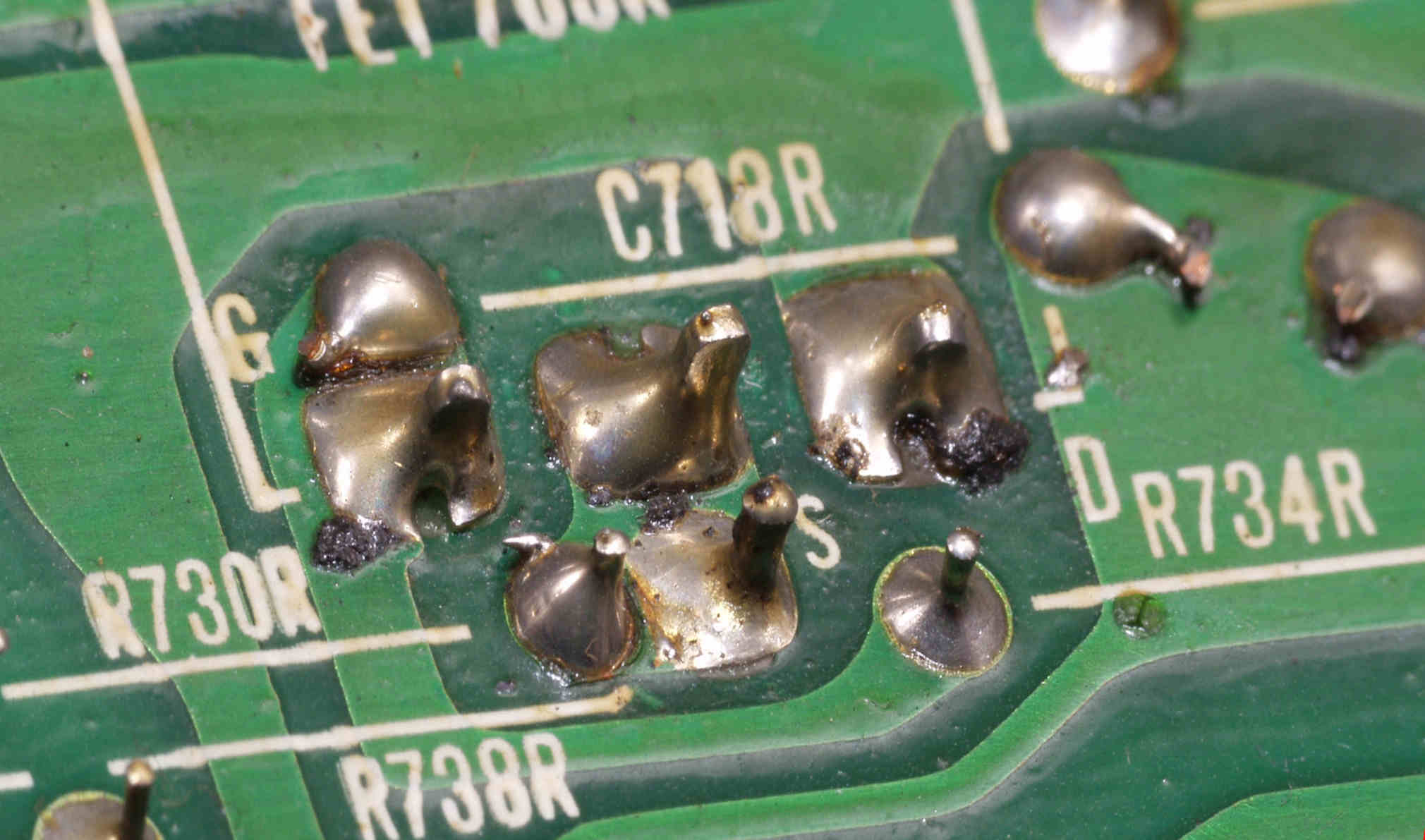 C133. 修理中 R側ドライブ基板裏、半田玉。