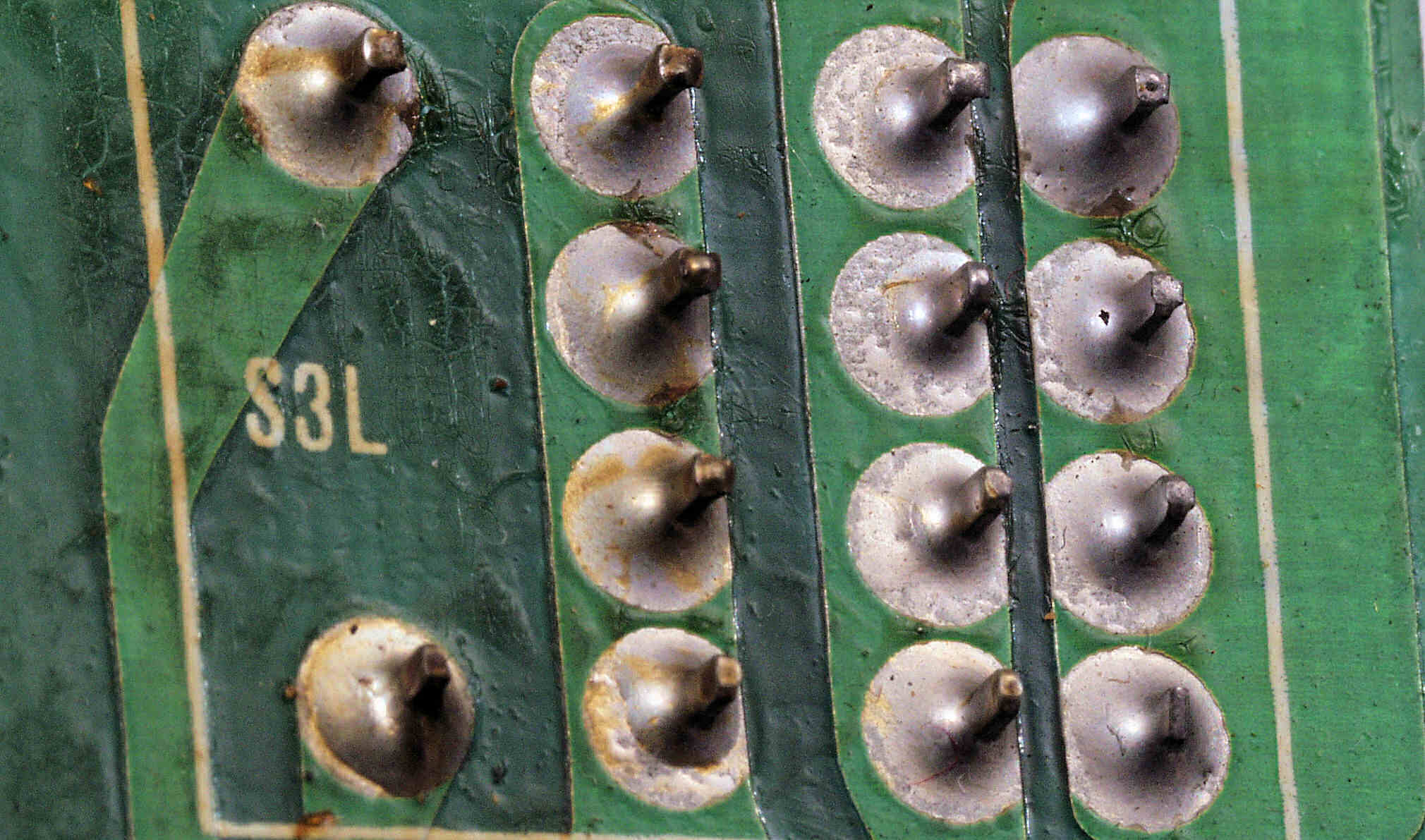 | CAH. 修理後 L側ドライブ基板−電源基板へのラッピング線に半田を浸み込ませる |