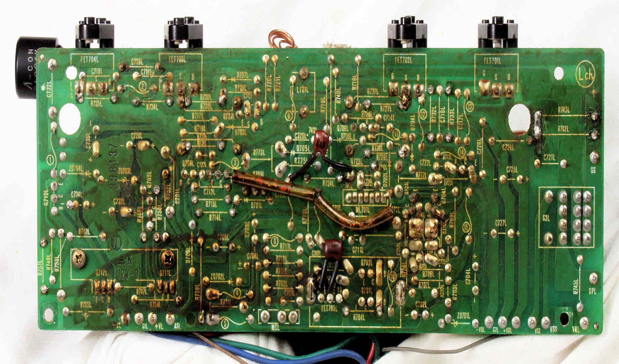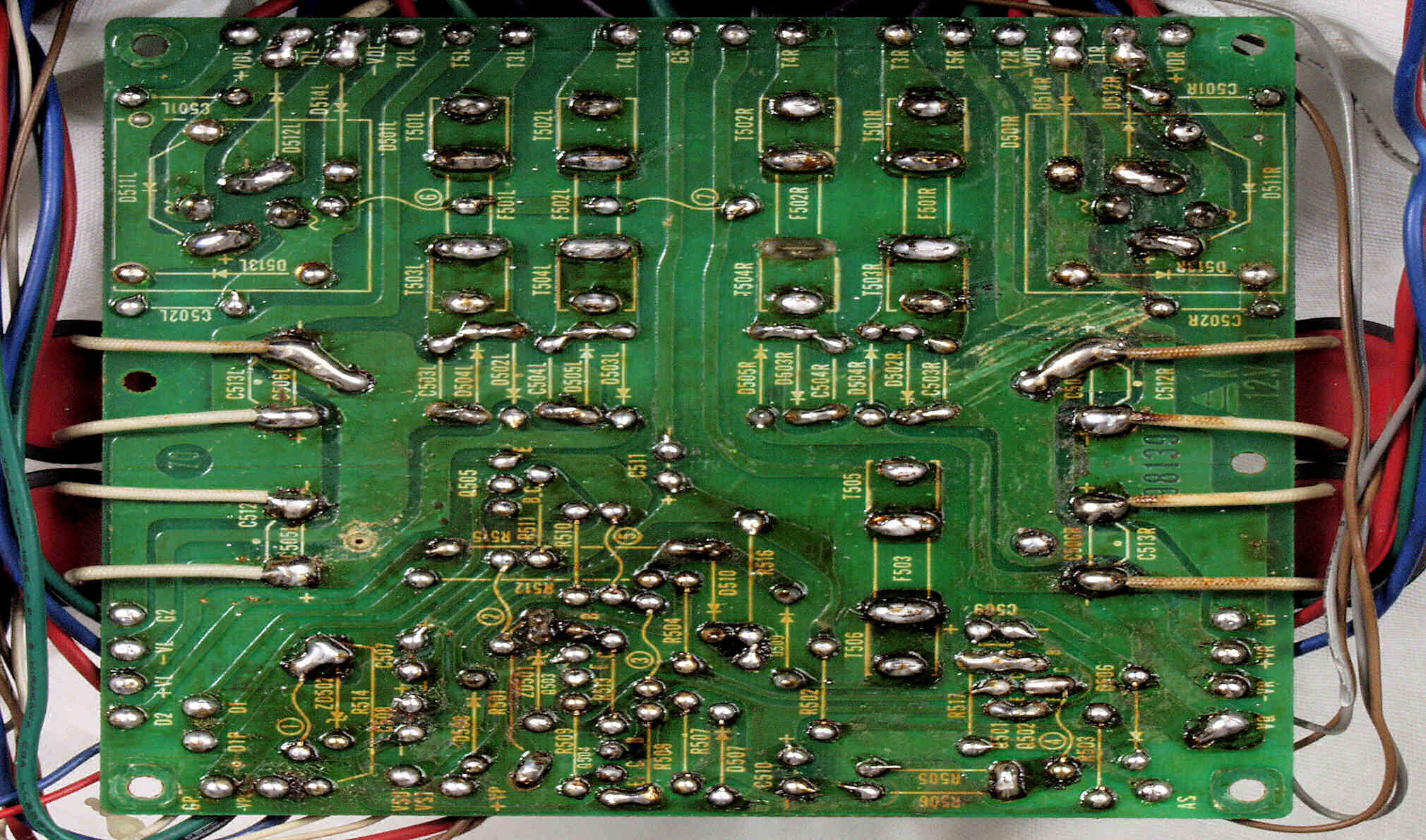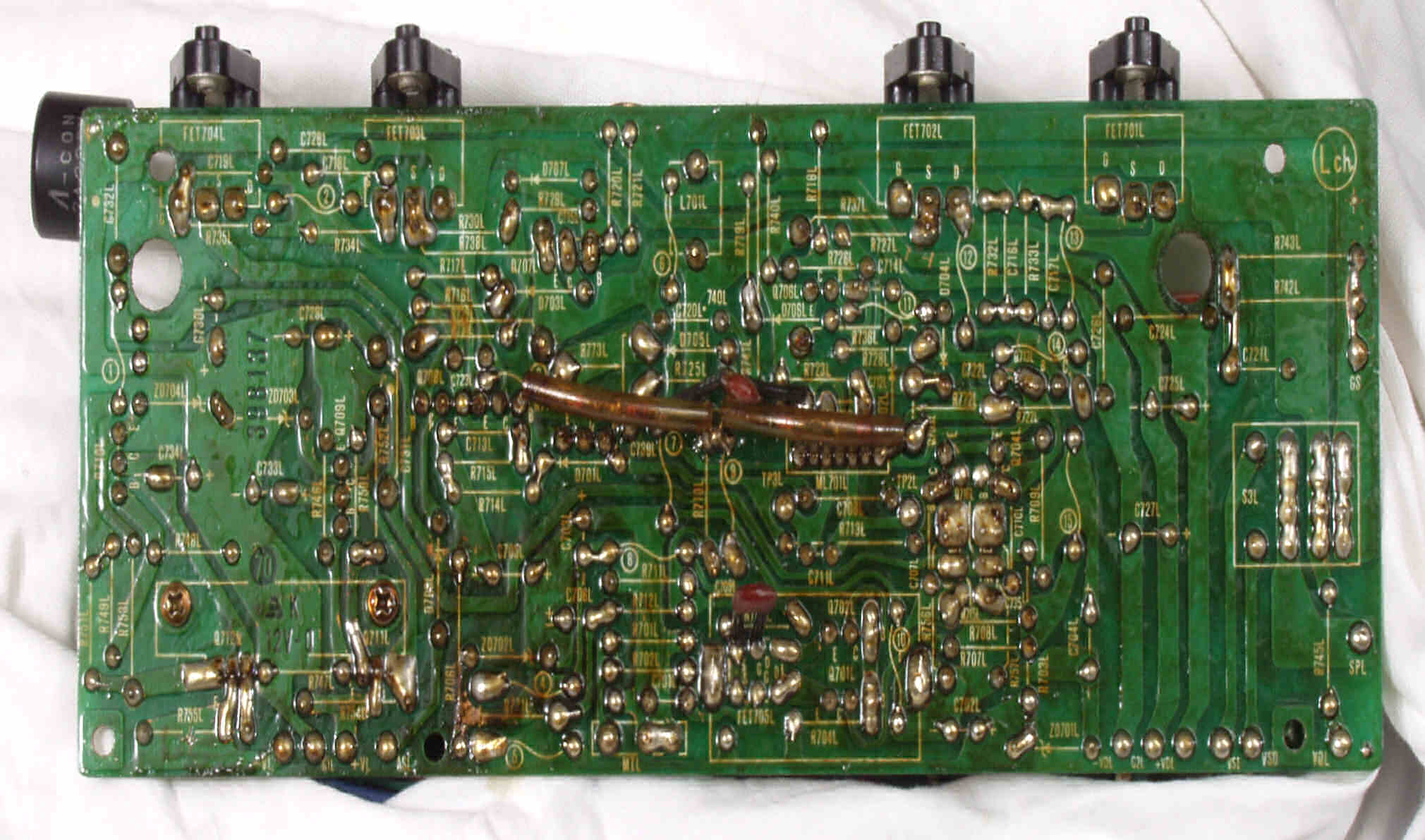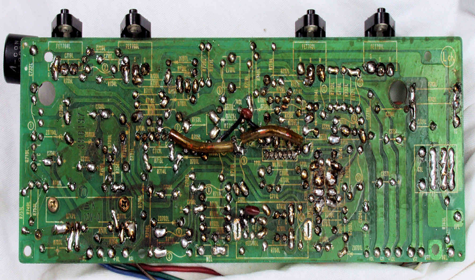 | C2D. 修理(半田補正)後 L側ドライブ基板裏 半田を全部やり直す 普通はこれで完成 |