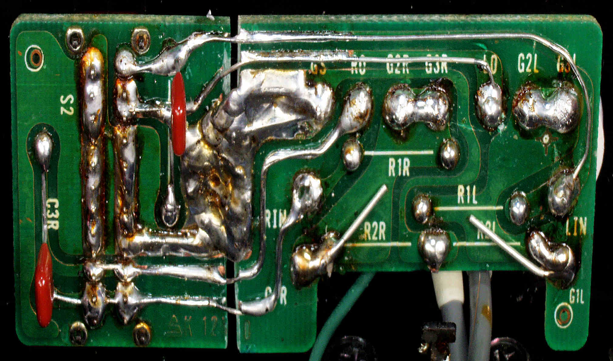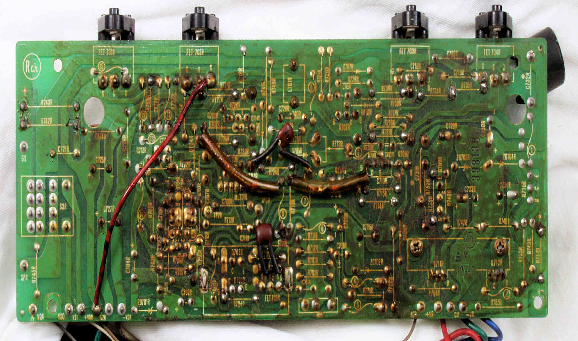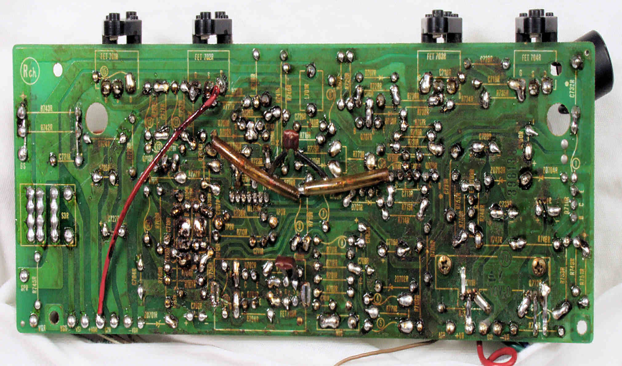 | C1D. 修理(半田補正)後 R側ドライブ基板裏 半田を全部やり直す 普通はこれで完成 |